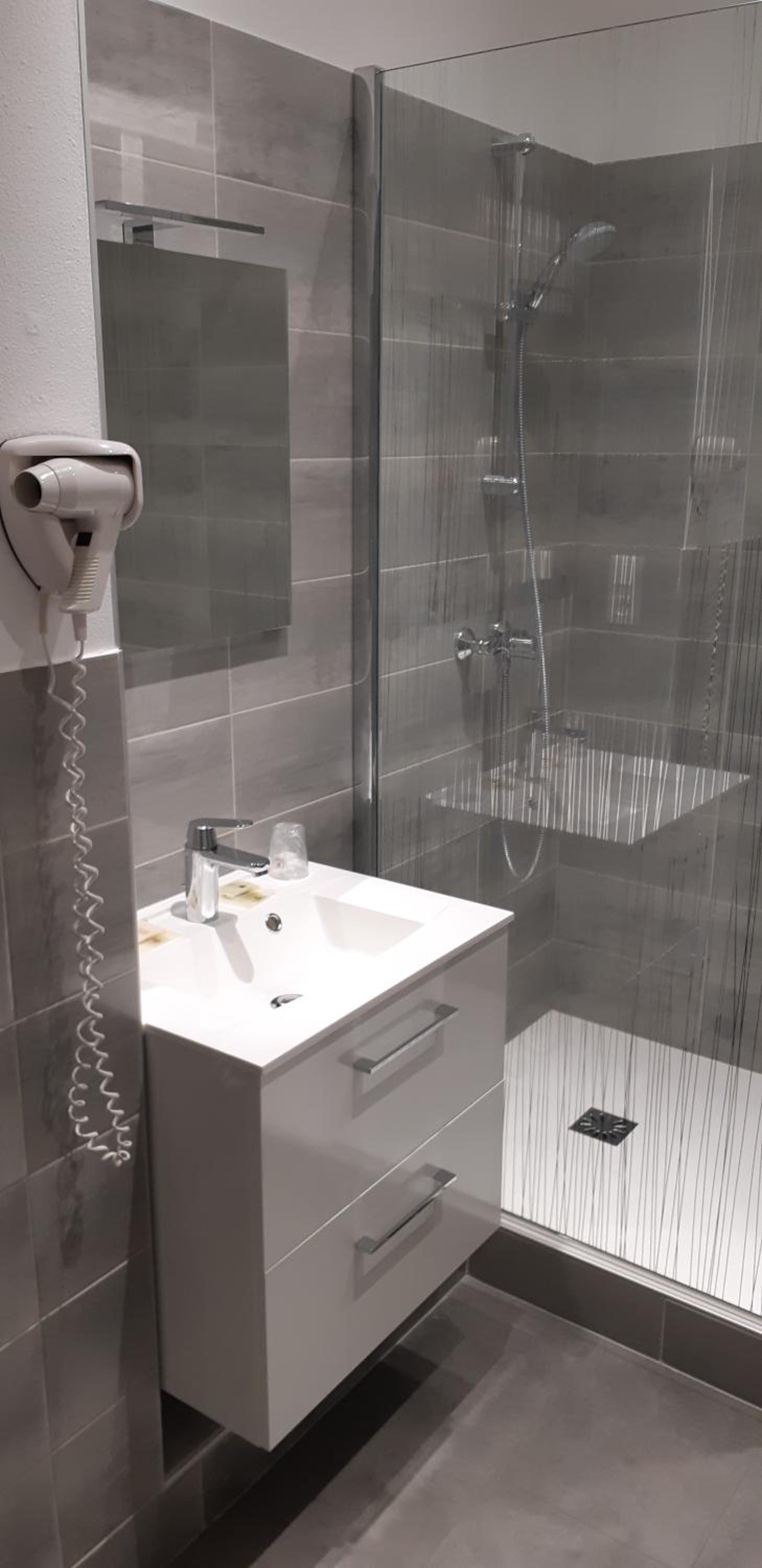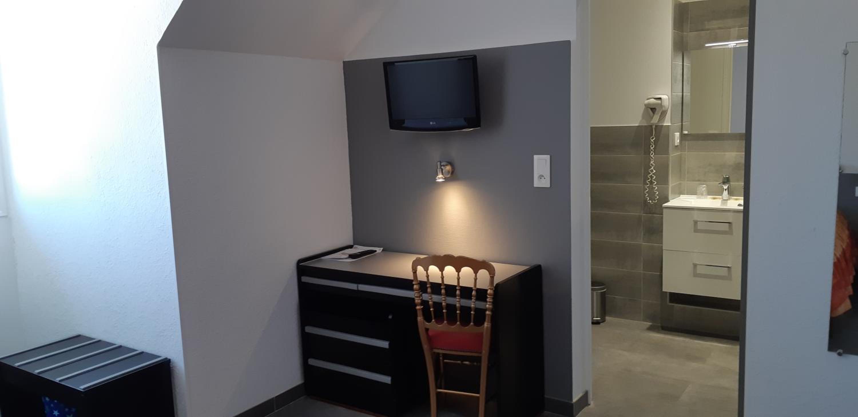 Ça a dû être un bel hôtel dans le temps mais dans son jus. Déco vieillotte, fenêtre et persienne à remettre au propre et en bon état, la grande trappe dans la salle de bain est inutile moche et s ouvre tout le temps de ce fait l air froid entrait dans la chambre, c était désagréable.