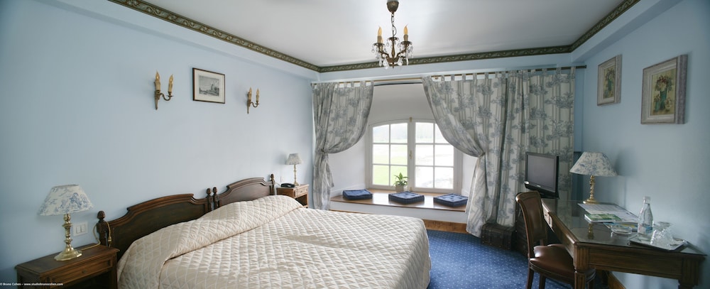 Impressive building and grounds but rooms are small and dated. No TV as stated in the info. Only Bistro operates on Tuesdays and has predominantly cold food. Breakfast OK but not worth 25 Euros.