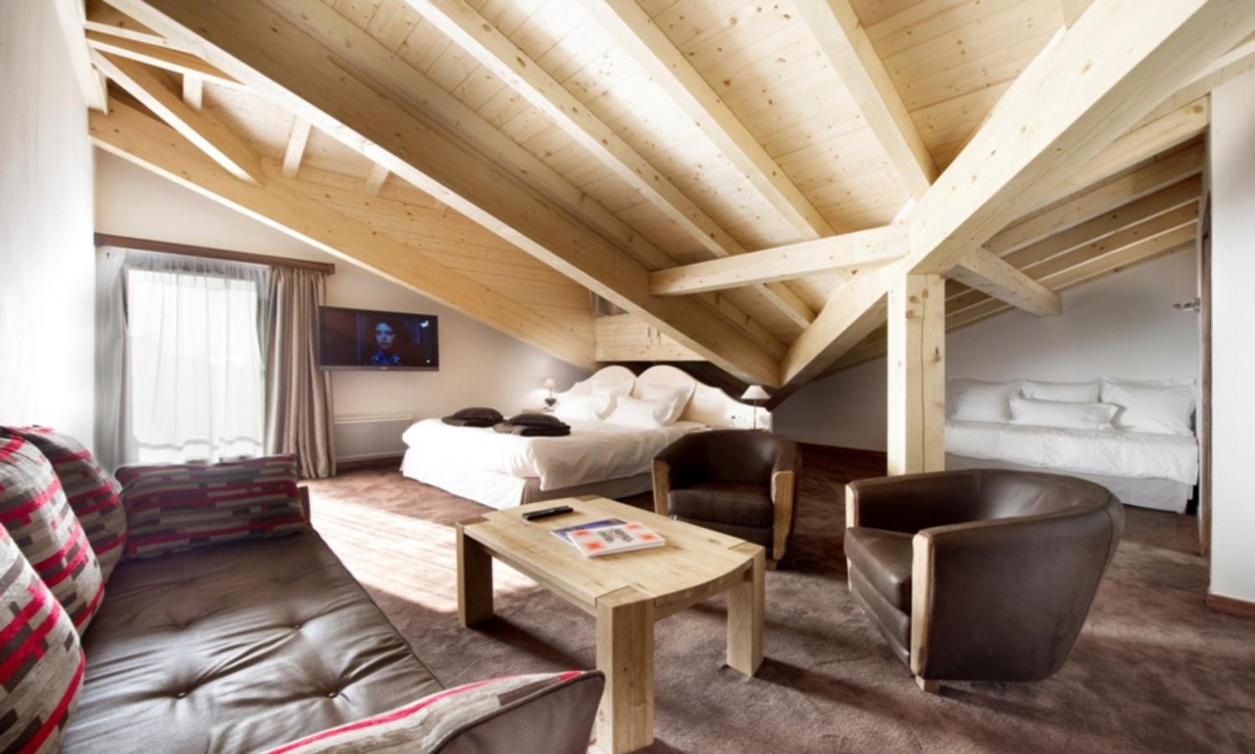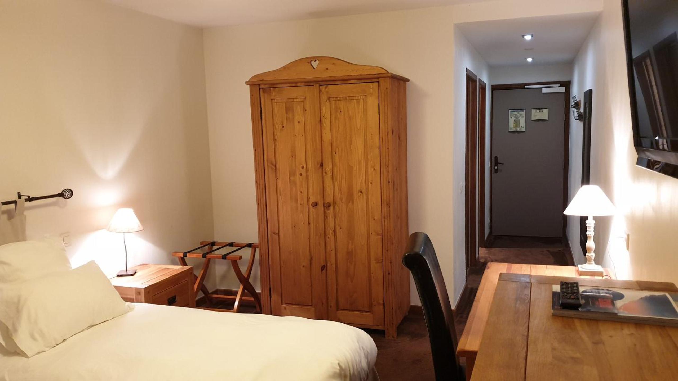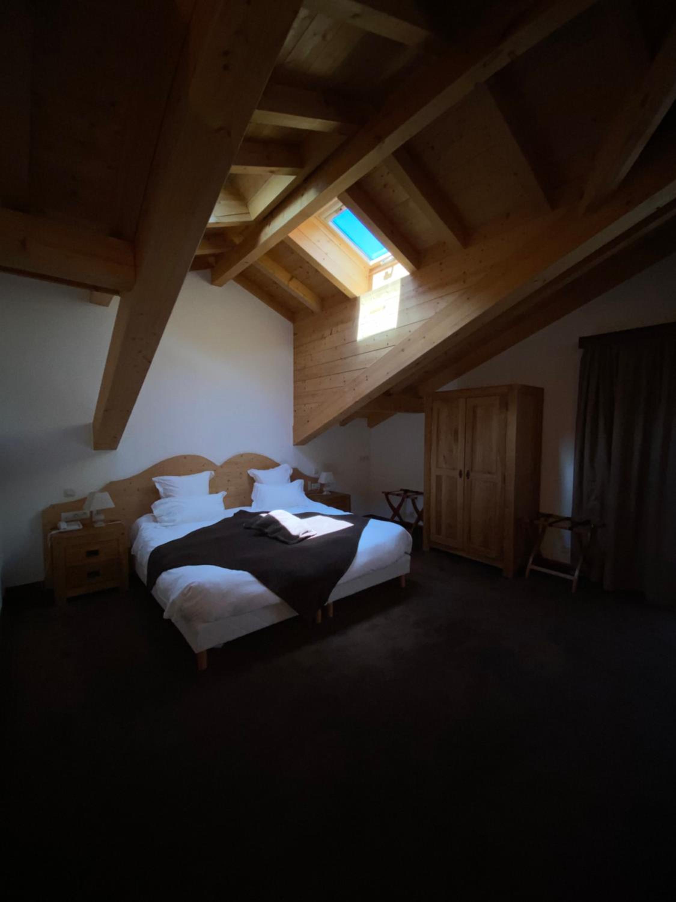 Experience the charm of our cozy rooms adorned with traditional chalet-style décor and modern amenities like private bathrooms for your comfort.