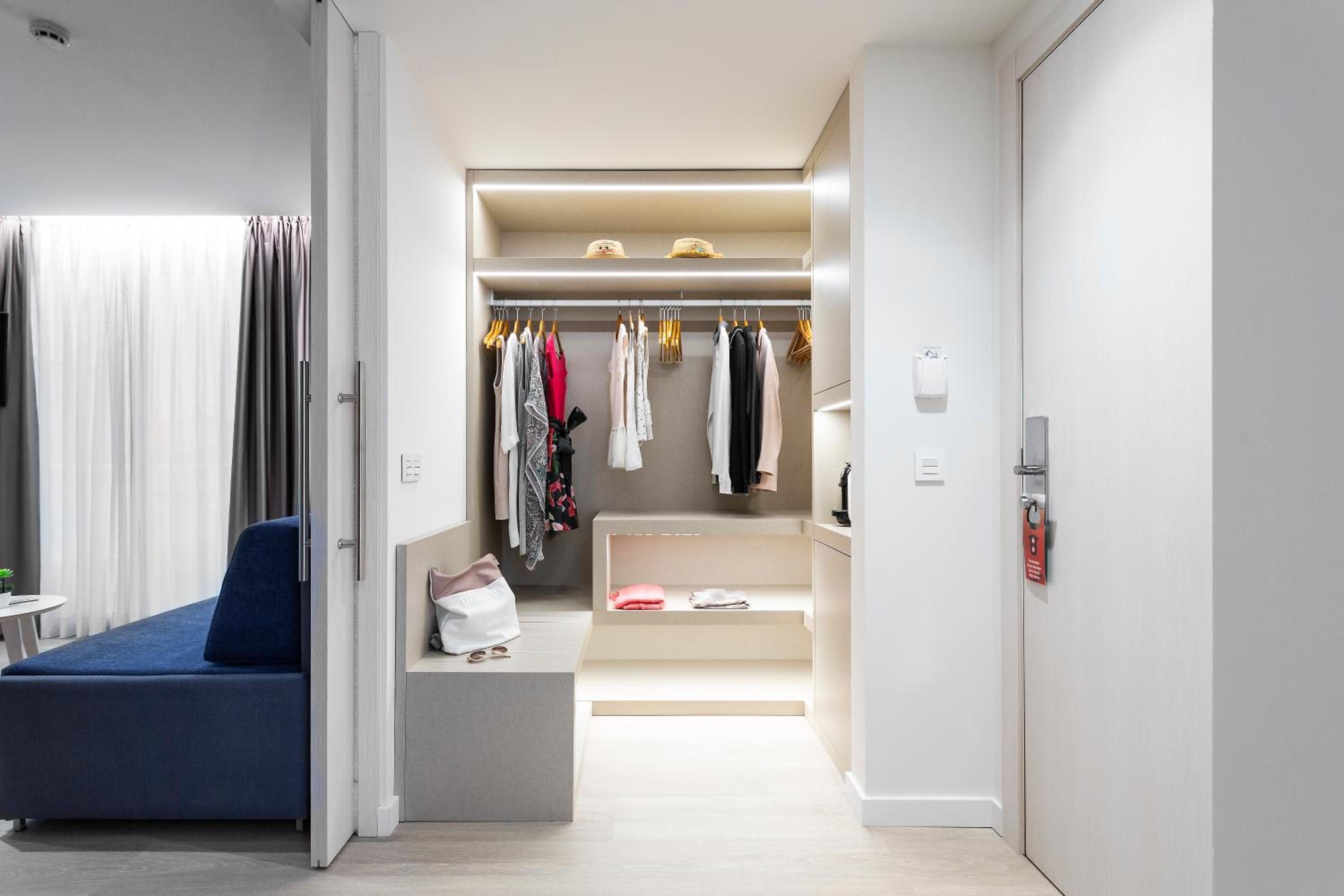 La habitación, amplia, soleada con vistas al mar. Los balcones con césped artificial y hamacas. Espacios amplios con sala de lectura. Ascensores panorámicos.