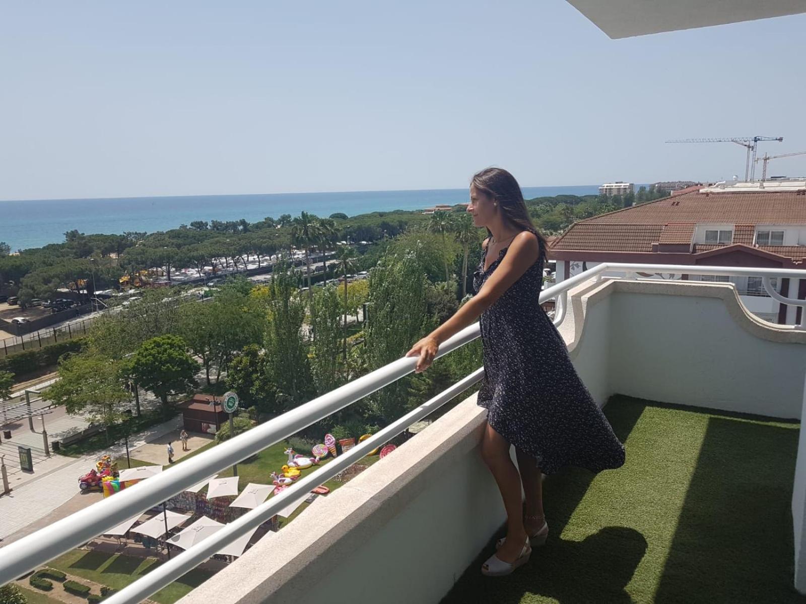 Знаходиться на другій лінії від моря, але маршрут займає всього 5хв, пляж дуже чистий, є шезлонги та зонтики (платно) відпочиваючих звичайно багато, (менше з самого ранку ми були у високий сезон), до найближчої станції потягу пішки хвилин 10-12, до Барселони потяг їде кожні 30хв