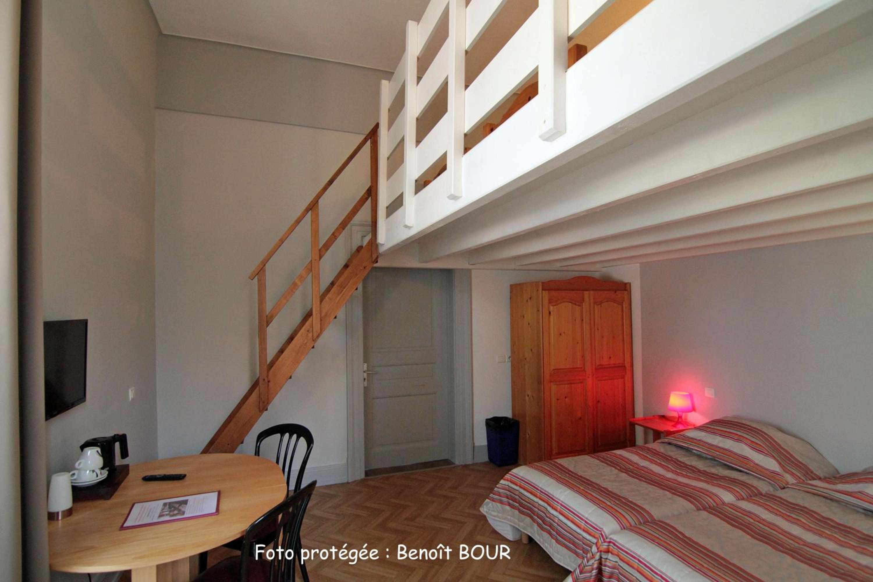 Grande chambre avec un petit frigo. Très confortable et très bien situé pour rayonner sur la région.