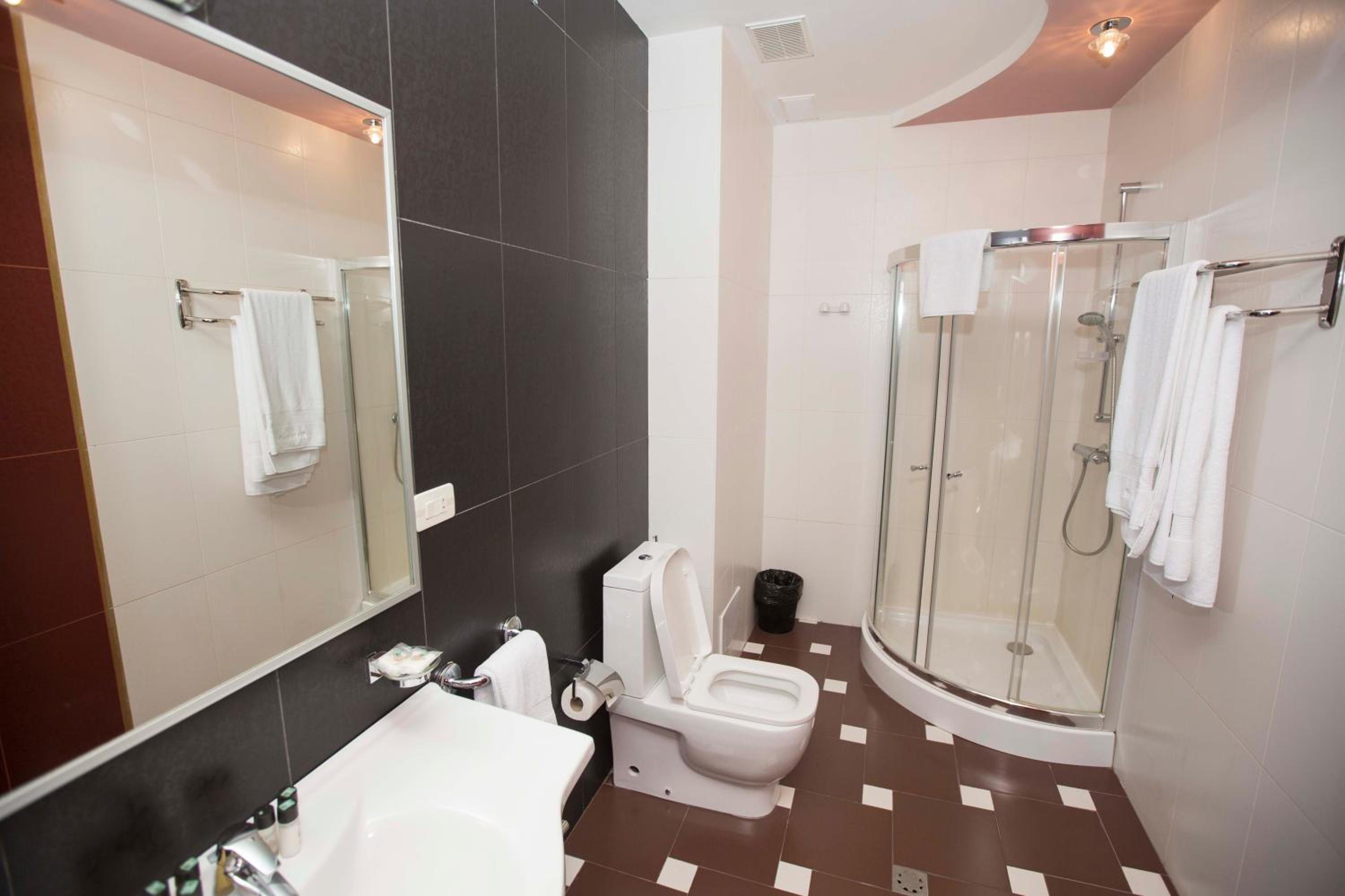 Our rooms are equipped with modern amenities including a fridge and a flat-screen TV with satellite channels. Upgrade to a room with a spa bath for a truly luxurious experience.