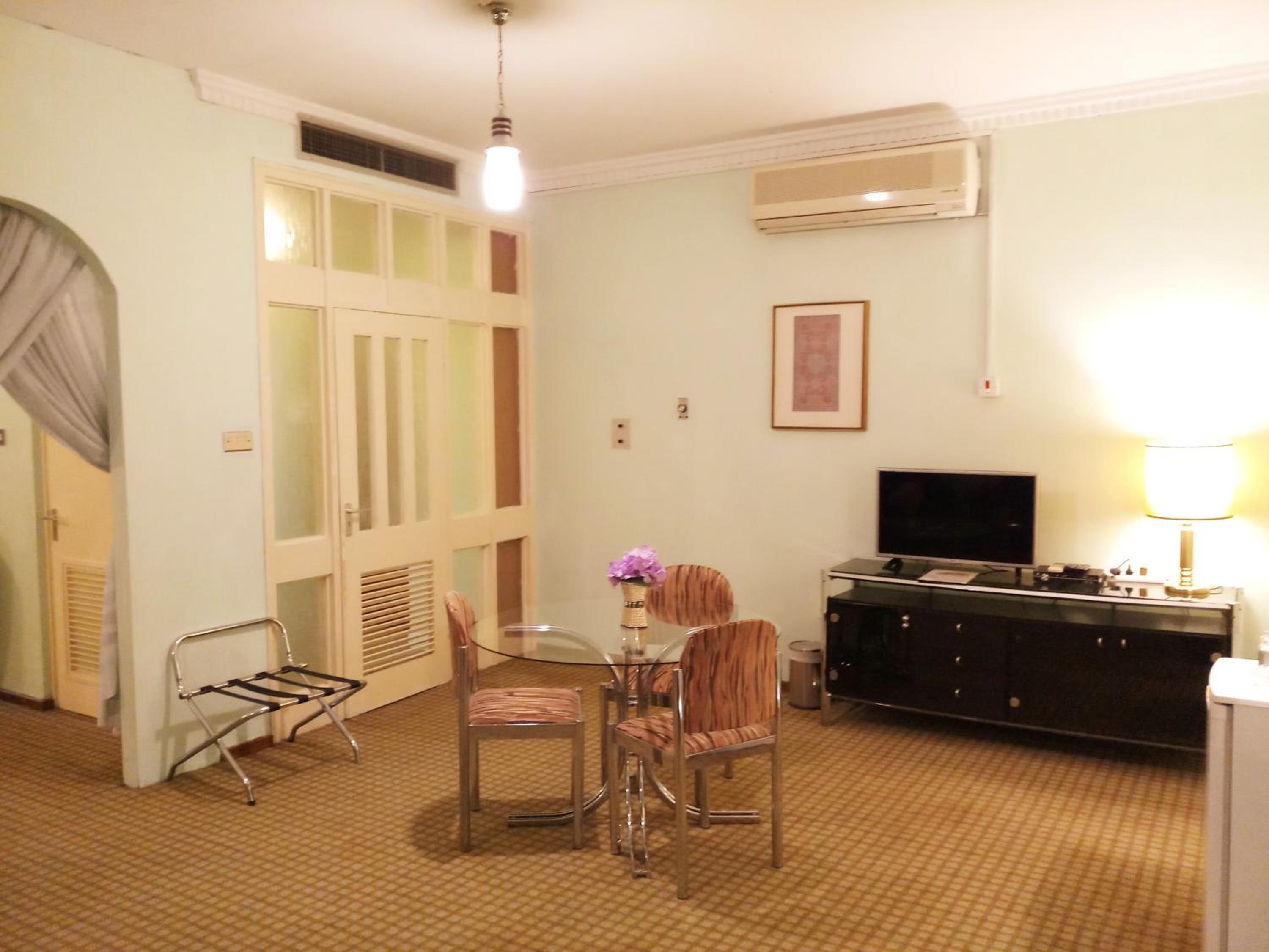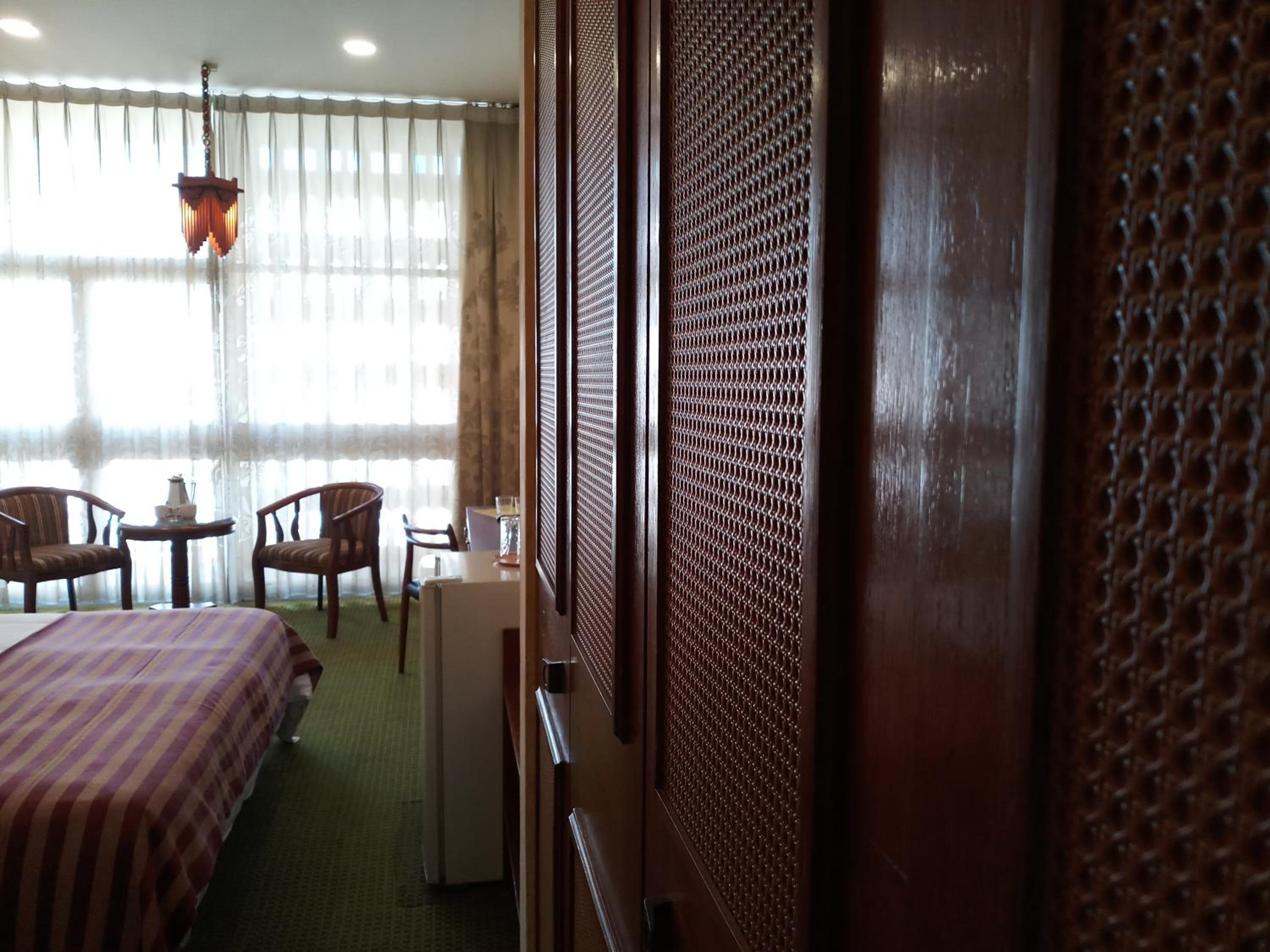 المكان سي من الطرق الضيقه و المواقف الصغيره و بعد المسافه بينها و بين الفندق من ناحية الدخول بالسياره او الدخول للفندق رائحه سيئه فالفندق كامل يشمل الغرف و الاروقه الداخليه للفندق لم يتم تجديد اي شيء فيه لم يكن هناك عربه لنقل الامتعه و لكن تكفل المساعد بحمل الاغراض رغم ان ذلك شيء فيه مخاطره على المساعد و على الامتعه كما ان العماله لا تهتم بنظافتها الشخصيه الاطباق بالصور لمتشجعني اطلاقا ً ولم استفد من الفطور المقدم لا يوجد مرونه بالخروج يجب ان يكون في تمام الساعه 12 الاطلاله سيئه و متسخه و يوجد سجائر لم يتم تنظيف الغرقه بشكل صحيح و السرير كان يحاله سيئه حيث انه غير مريح اطلاقا ً و توجد رائحه خفيفه فيه وغير متوازن تصميم الغرفه ليس متناسق مع الاثاث و يقدمون علبة مياه واحده فقط لليله رغم ان الغرفه لشخصين و توجد غلايه ولكن لا يوجد قهوه او شاي او سكر دولاب سيئ ادرج متهالكه دورة مياه غير مناسبه و تم وضع منشفه واحده فقط ولم اطلب اضافيه لانني لم اشعر بالارتياح منها