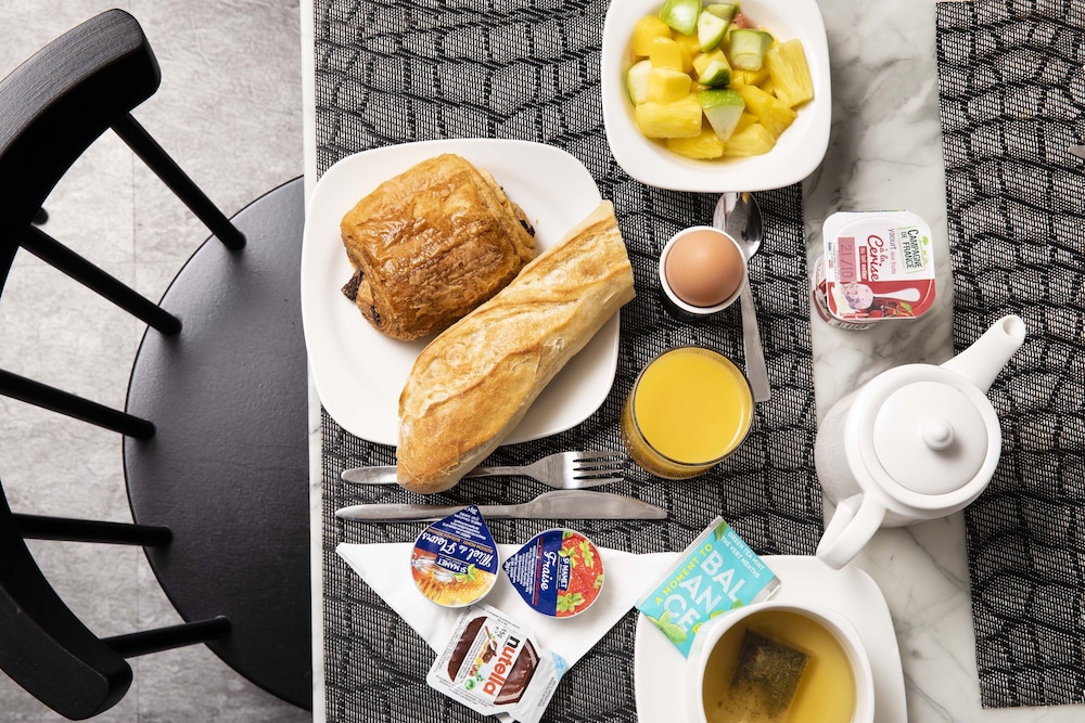 This is a really great option for your stay in Paris, especially if you want to be close to a central transportation hub. It’s situated on a very cute and quiet side street, secluded from the hustle and bustle but, at the same time, just steps away from the train station and metro. The area is also nice with a lot of stores and restaurants, plenty of food options and things to do. We were traveling with a toddler and booked through Expedia which allowed us to reserve a room not suitable for a crib. No fault of the hotel. They were very accommodating and upgraded us to a larger room so we could fit the crib. Rooms overall are on a smaller side but so are most in central Paris. The rooms are quite well stacked with everything you may need and are clean and updated.