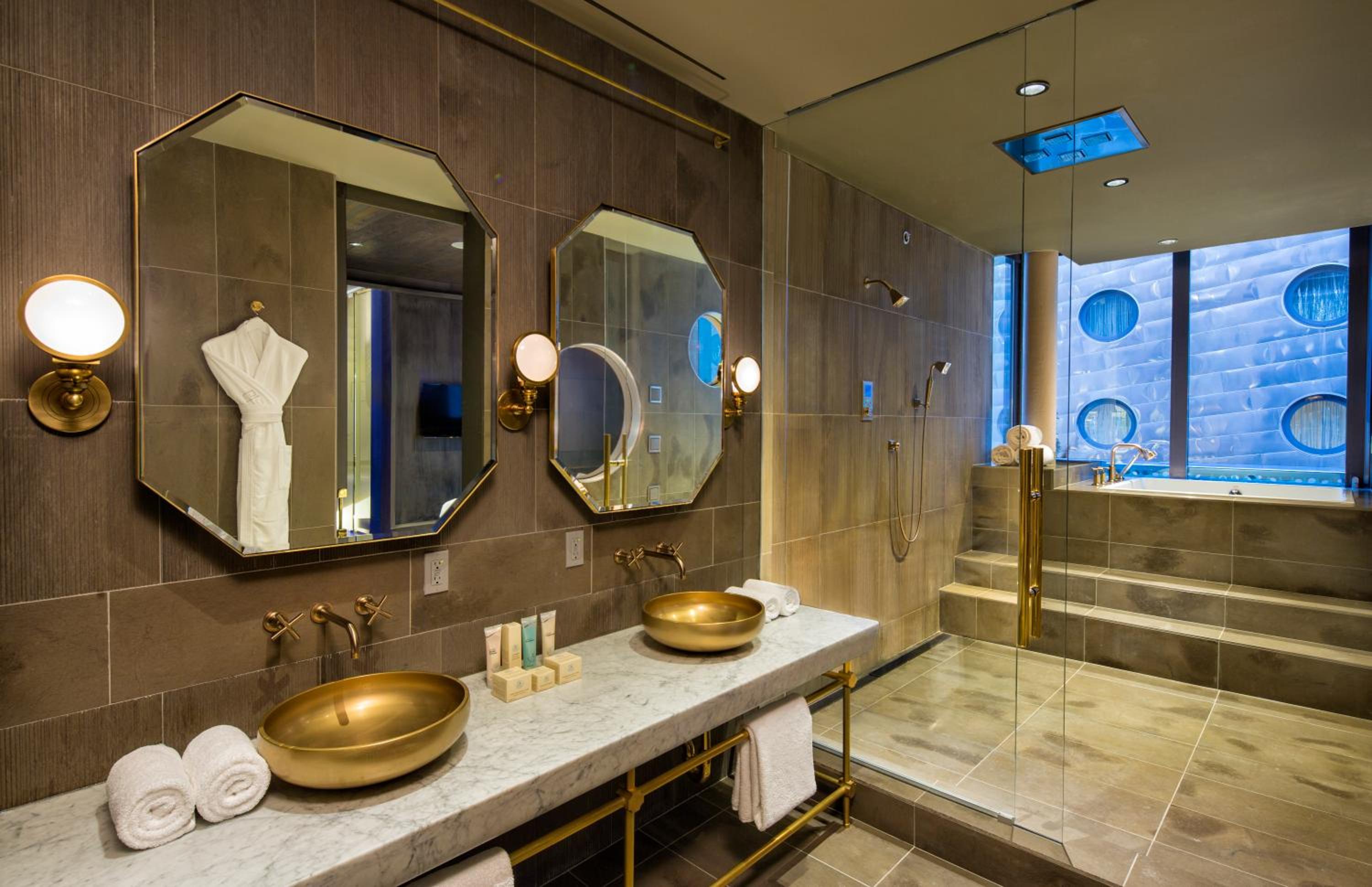Relaxation and Comfort: Unwind in rooms adorned with designer furnishings, porthole windows, Egyptian cotton bedding, and plush bathrobes for the ultimate relaxation.