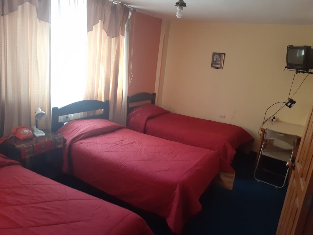 Ubicación muy conveniente, cerca de los principales puntos de la ciudad. Desayuno incluido rutinario y básico. No limpian el cuarto a menos que lo solicites. Al c/ in no nos explicaron que si no lo solicitabas no te limpiaban nada. Cuarto comodo para descansar lo suficiente. Tv antigua sin buena señal. Agua caliente solo cuando ellos quieren. Cuando indique que no salía agua caliente me dieron como respuesta que el chico que ve eso no estaba. Ese día toco bañarse con agua fría considerando el clima frío de puno. Personal amable en líneas generales, no supieron darme razón Cúando solicite algunas indicaciones e información turística pero por lo menos no te contestan mal!
