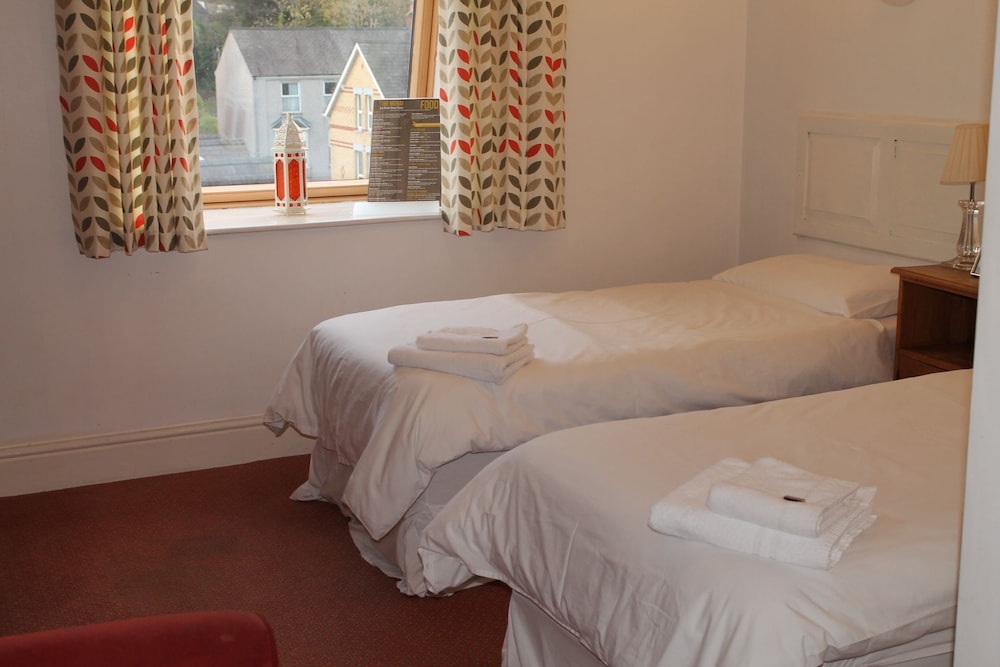 Wasn't expecting 5* at the price I paid, much less that Tr@veI-b0dge for the same weekend. Pleasantly surprised. The room was large, ours had a double and 2 singles, en-suite bathroom, kettle and tea/coffee, hairdryer. Its an old building and is a little tired but that gives it character. No food service other than breakfast which is included, even had an option of cooked breakfast at no extra cost. Located in a mostly student area, 2 other local pubs nearby and a handful of fast food places too. 20 mins walk into Bangor centre. For a nice eve meal, drive over the Menai Bridge, its literally 10 mins, to a pub named after a big city on the river mersey ;-)