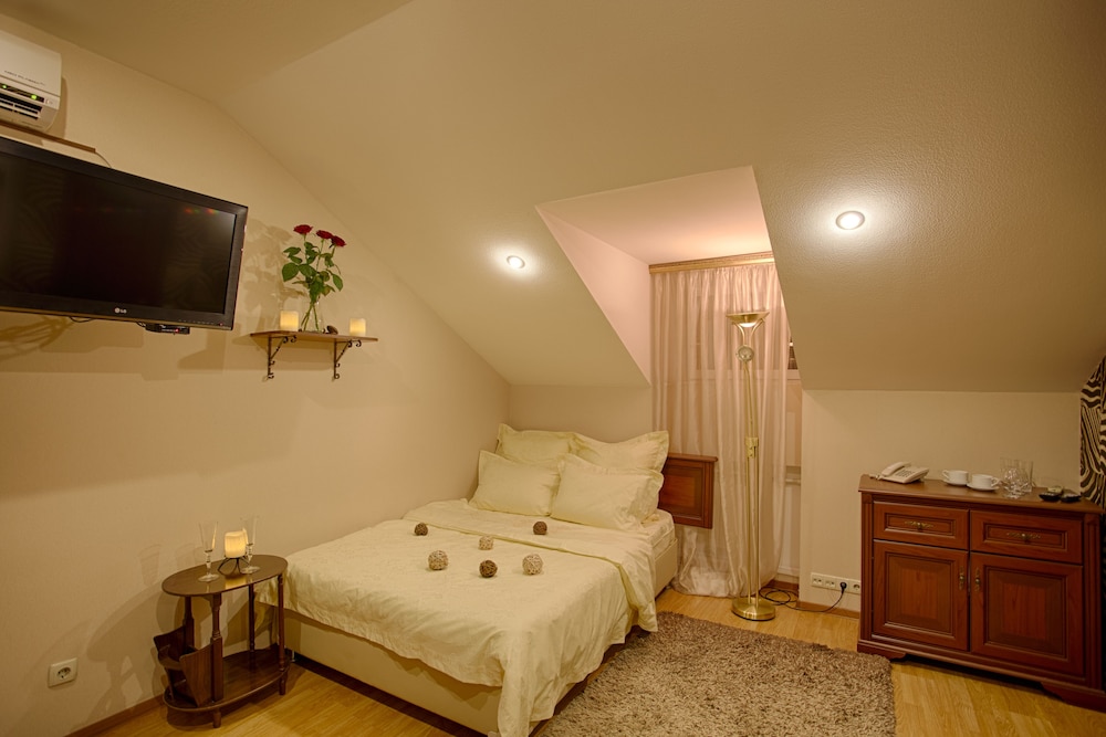 Чисто, просто, хорошее место, мансардные номера, хороший завтрак, комнаты средние по удобству