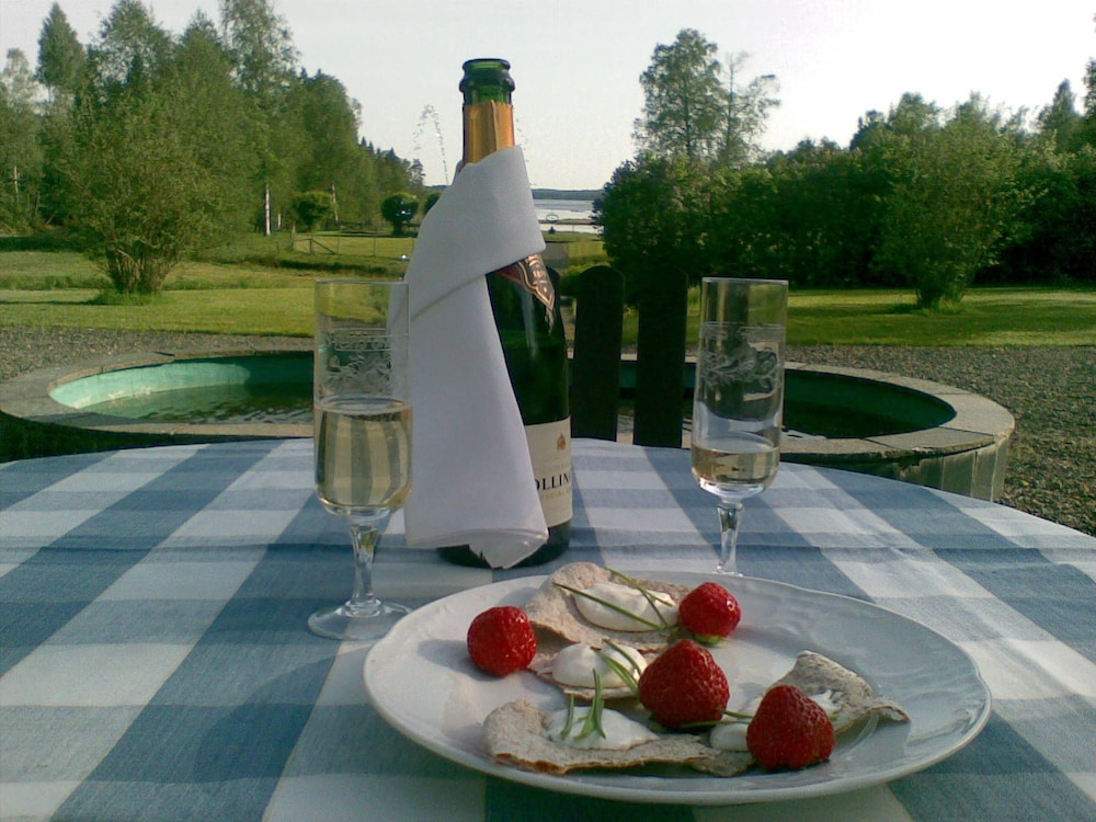 Vackert läge i lugn miljö. Väldigt fina rum och fantastiskt god mat. Lite synd att bastun inte var uppeldad.