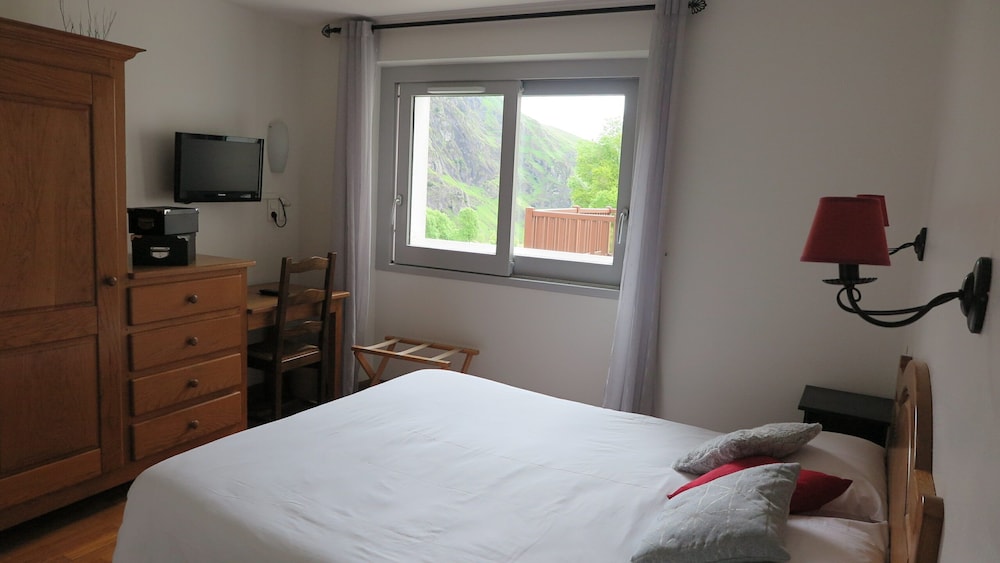 This place has spectacular valley views from their dining room. Great place to stay. There is an on site restaurant which offers great local food. The room was very clean and the bed was extremely comfortable. This was a great find in the middle of the Pyrenees.