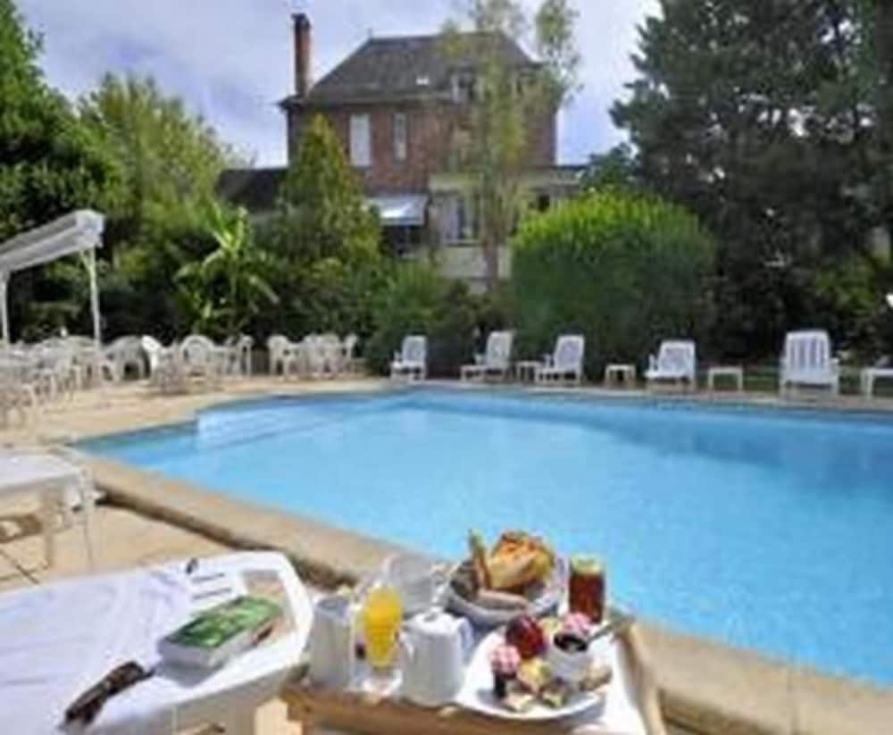 A very pleasant traditional French hotel. Our spacious room on the top floor had a fantastic view over the surrounding countryside. There was a good, free private car park behind the hotel, among the chickens. The restaurant was so good that we ate dinner there all four nights of our stay - excellent regional dishes mainly of duck, beef and pork. The duck was particularly good.