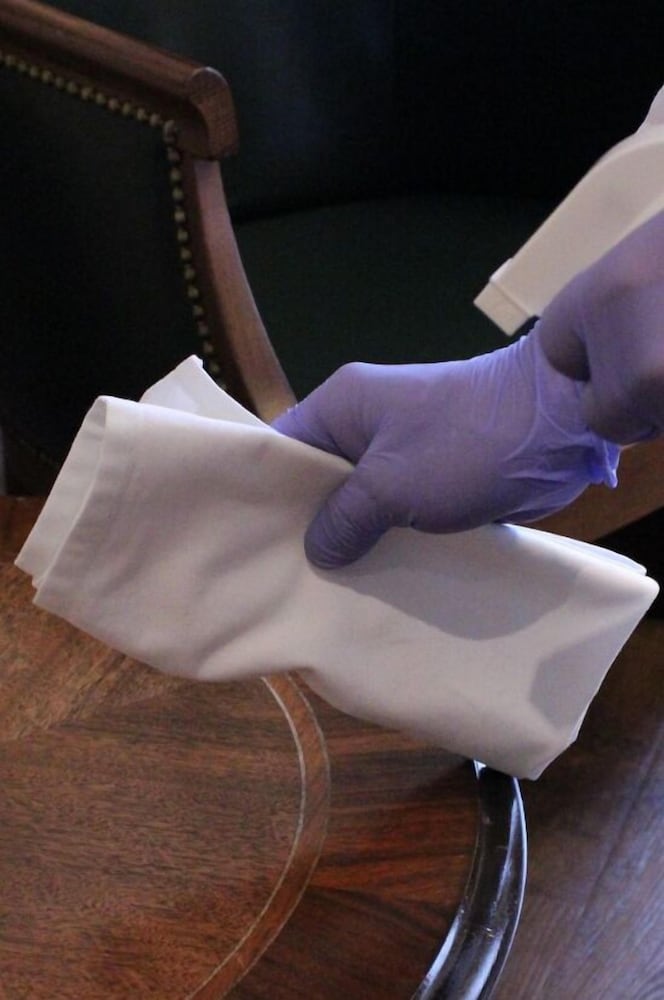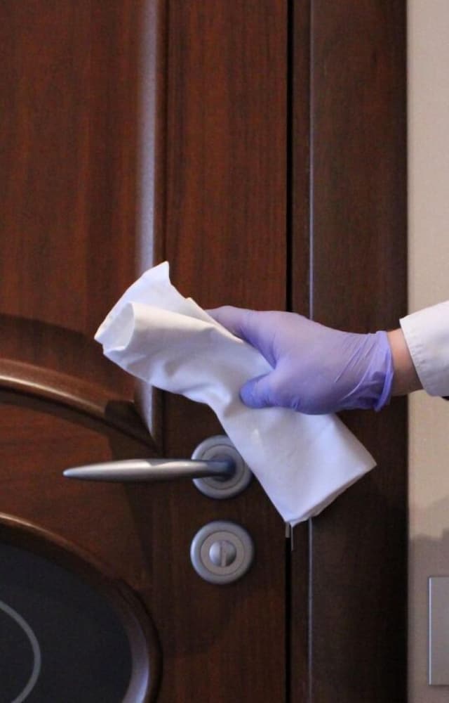 Commonly-touched surfaces are cleaned with disinfectant