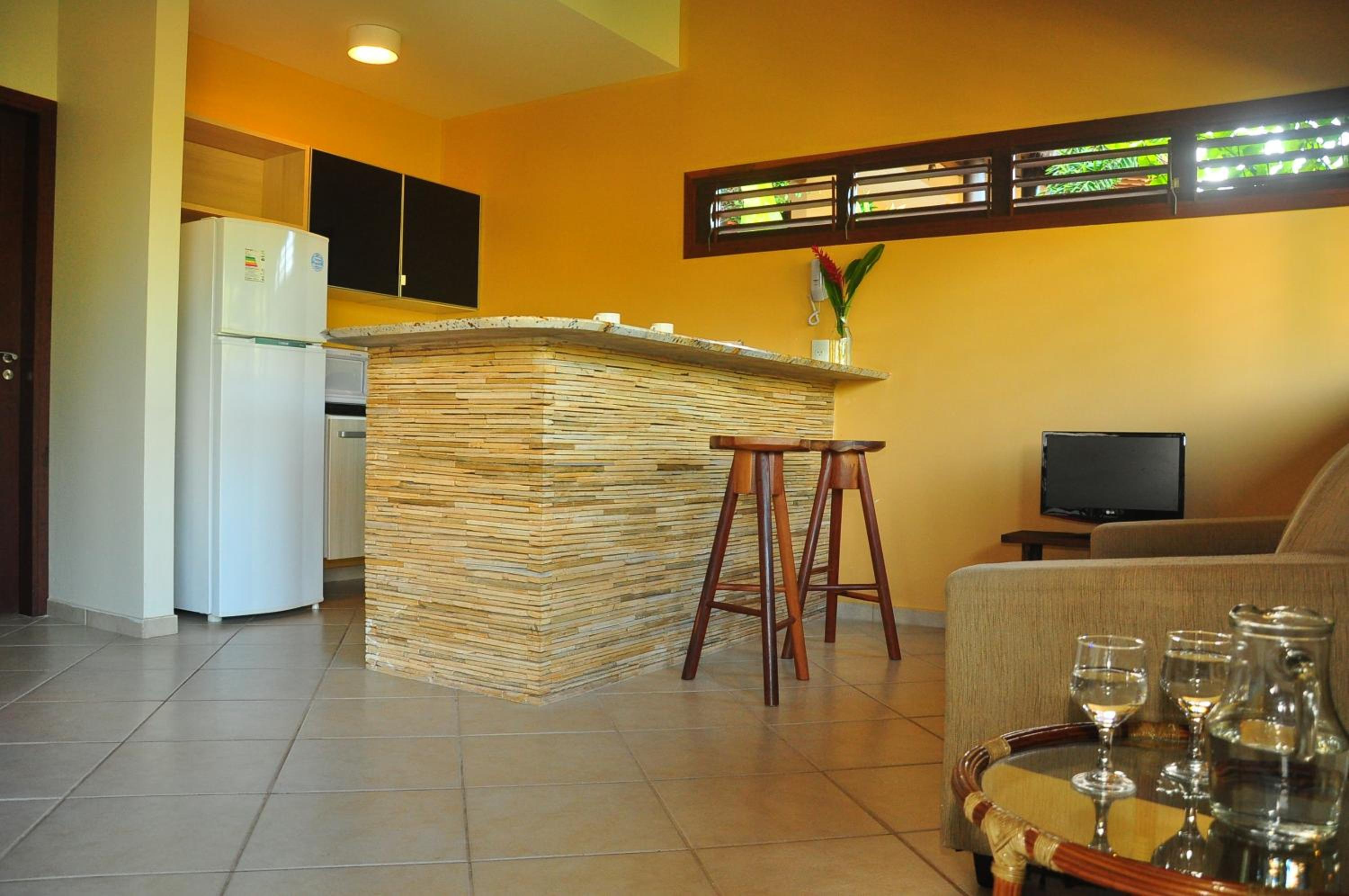 Indulge in our elegantly decorated apartments with tropical-themed accents, complete with a balcony and spacious seating area for your comfort. Enjoy the modern bathroom and the convenience of a fully equipped kitchen to prepare your meals.