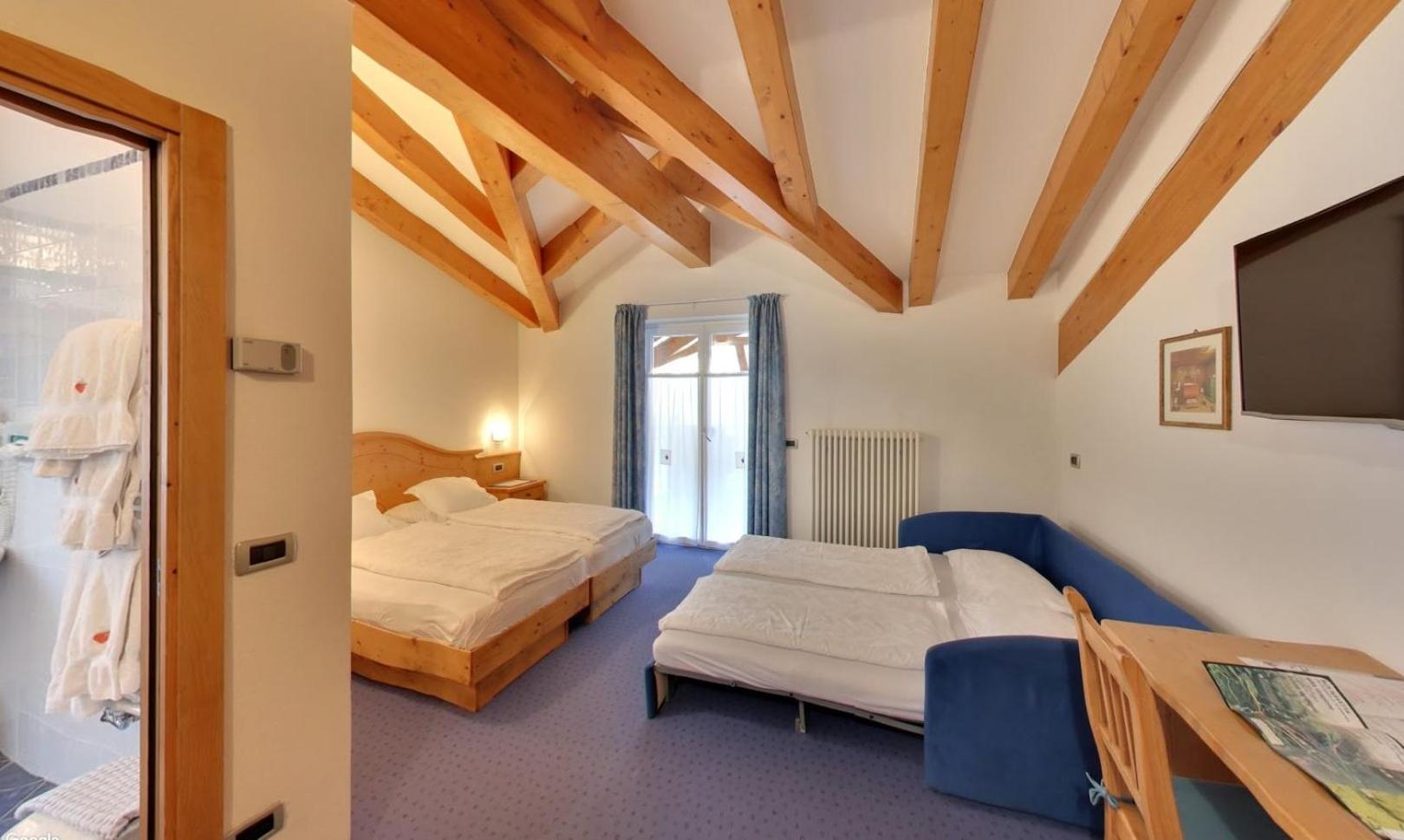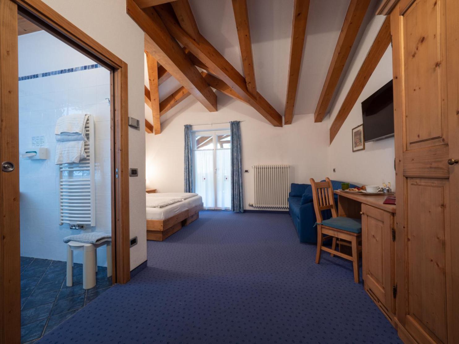 Indulge in the charm of Trentino style with our finely furnished rooms featuring balconies, satellite TV, and cozy carpeted or parquet floors. The private bathrooms come stocked with complimentary toiletries for your convenience.