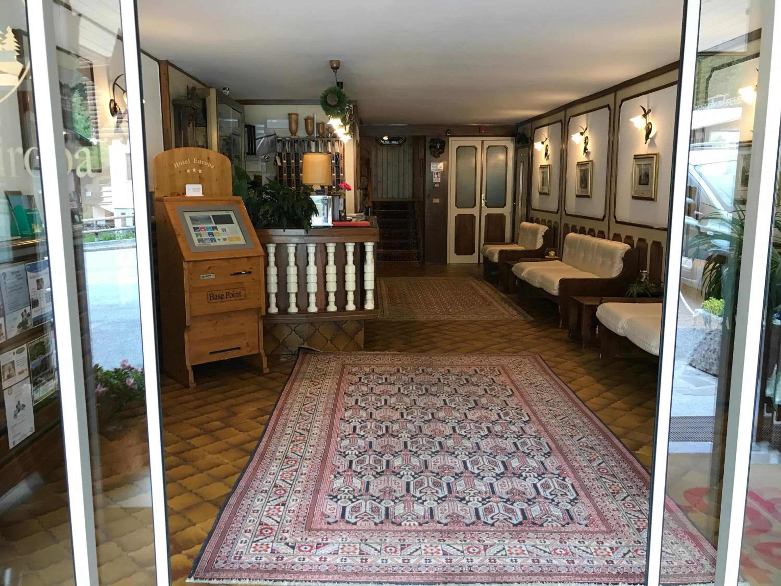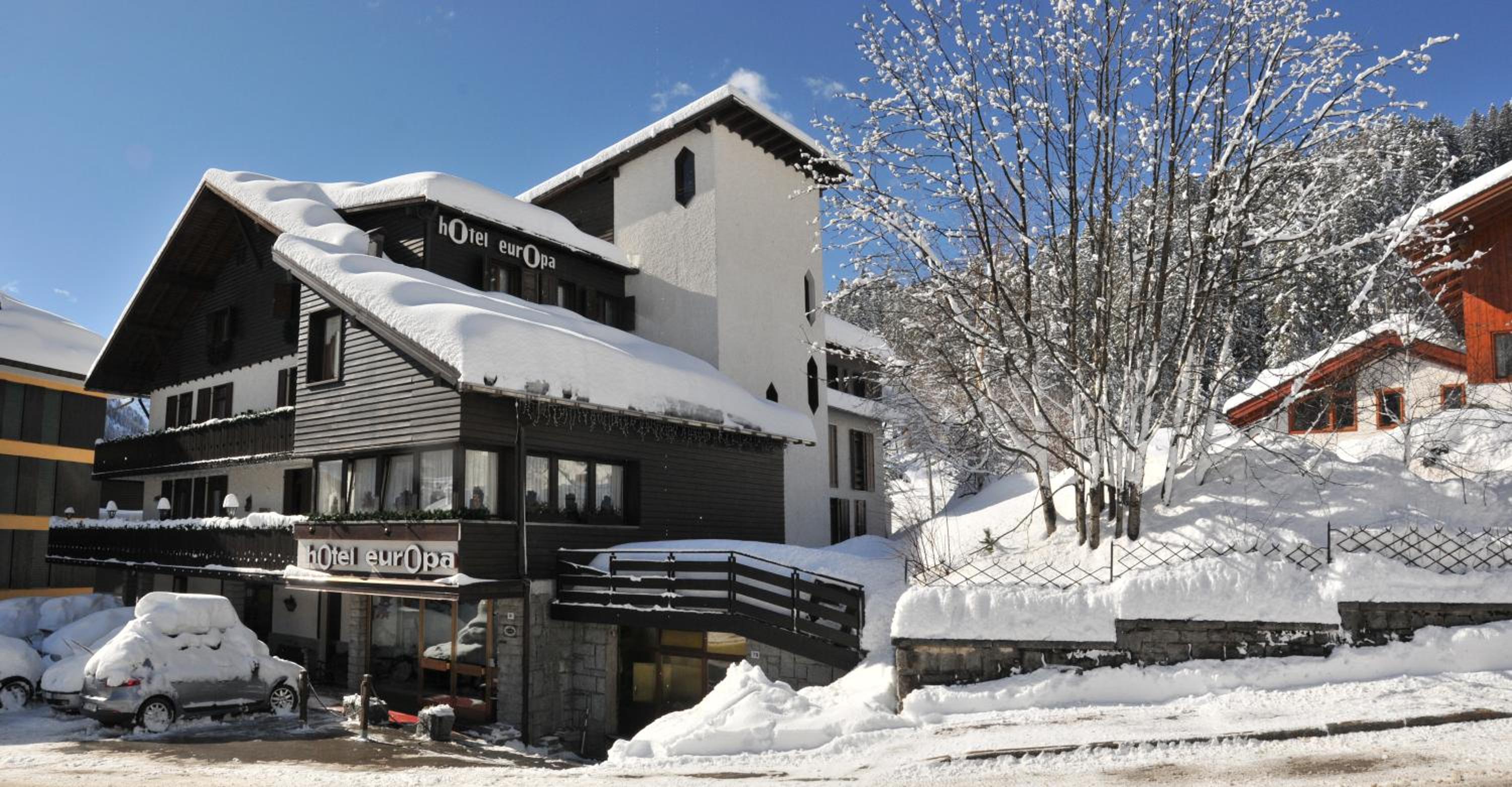 hotel Europa is a fab little hotel in M. di Campiglio. a short walk up the hill and you can access the end of a ski run to ski down to one of the gondola stations (and you can ski to the same place at end of day and then short walk down to the hotel). in the evenings it’s just a short walk down to town. The whole hotel is lovely and warm with very nice clean bedrooms (cleaned daily with clean towels) with lovely bathroom with great shower). There is a great ski storage room (with heated boot rods) and although no individual lockers we were a party of 4 who had no difficulty with getting space every day (there is cctv in the room and it is locked over night). We were B&B and the breakfast was really good - plenty of choice and good quality too. Between 3-5pm tea and cake is served in the bar area. We used the bar in the evenings after being down in the town itself and always had a great welcome and service from the young lady who works at the hotel. There is a games room and small TV Room at the hotel too. Plus free parking on site. The lady (who we assumed was the manager/proprietor) was always very helpful and also arranged smooth check out and a take away breakfast as we needed to leave at 5am for our flight. If we ever return to Madonna we would not hesitate to return to Hotel Europa.