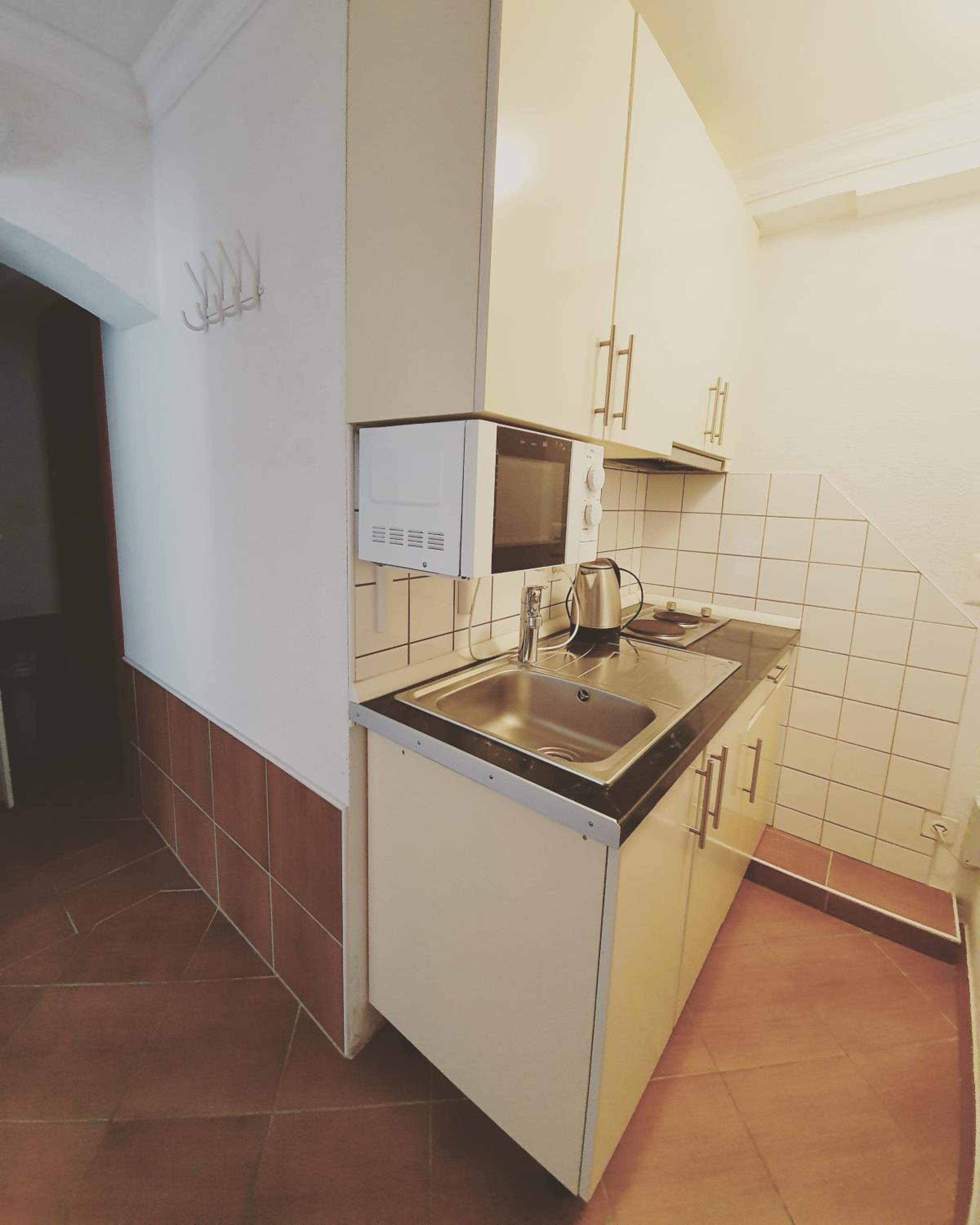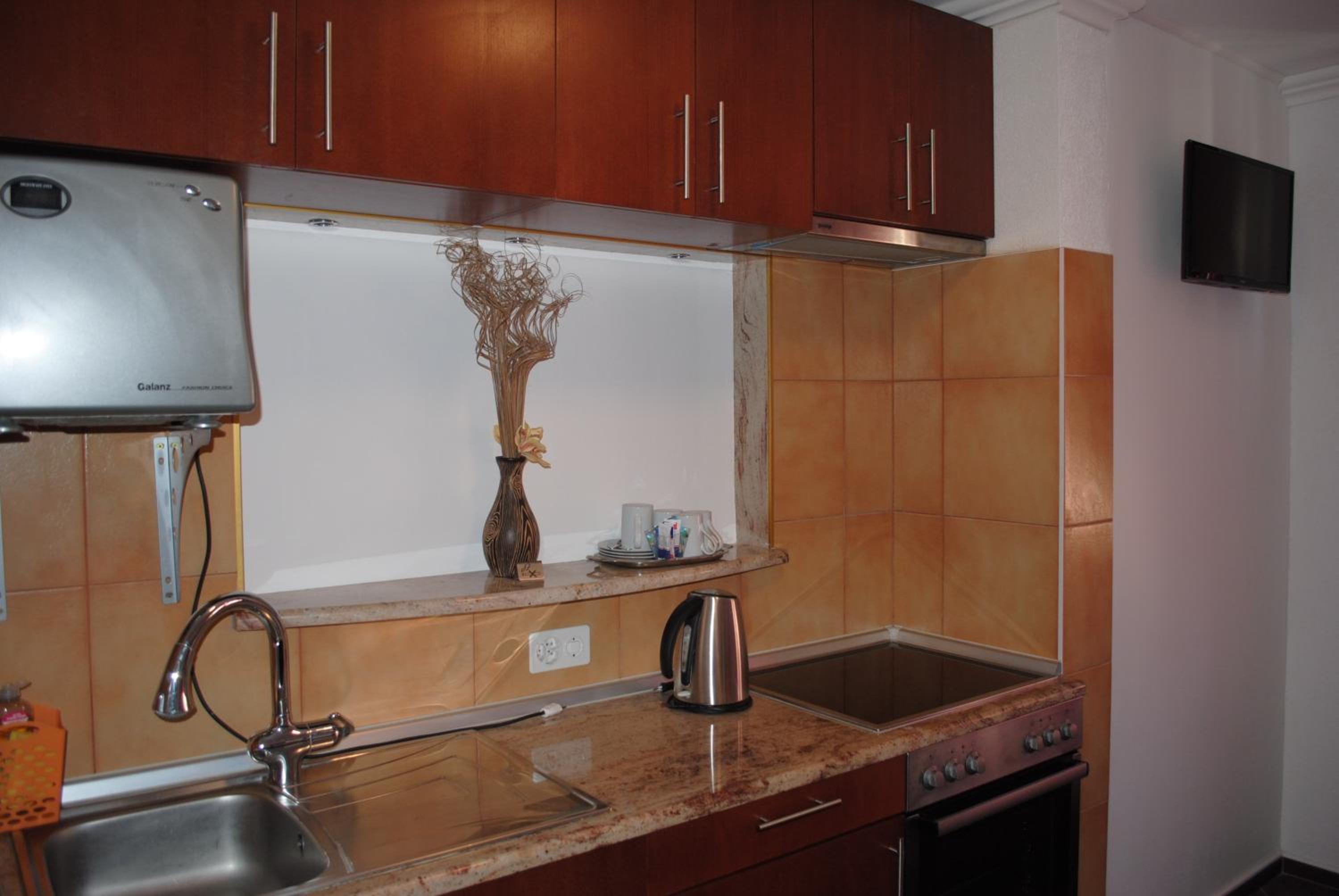 In der Küche hatte es leider weder Kochutensilien noch Besteck oder dergleichen, aber sonst alle Gerätschaften vorhanden (Herd, Kühlschrank…).