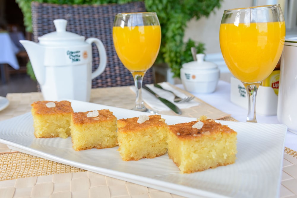 Savor delicious cuisine at Pirgos Restaurant, located poolside, or enjoy a drink at our vibrant bar/lounge. Room service is also available for those cozy nights in.