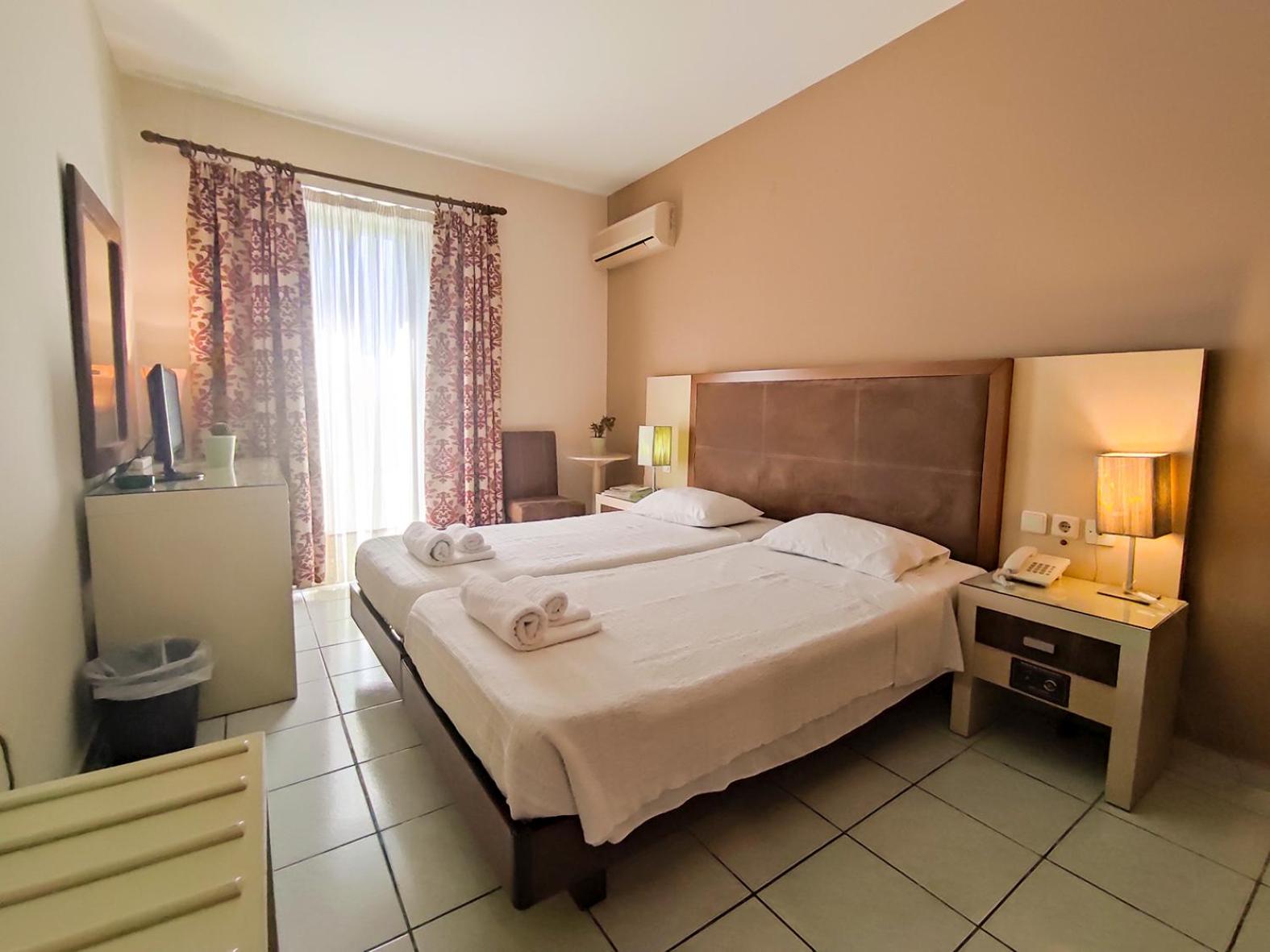 Enjoy the seasonal outdoor pool, sun-lounger terrace, and garden at our 3-star hotel located just 150 meters from Kontari Beach. Keyless access safe and Continental breakfast add to the convenience.