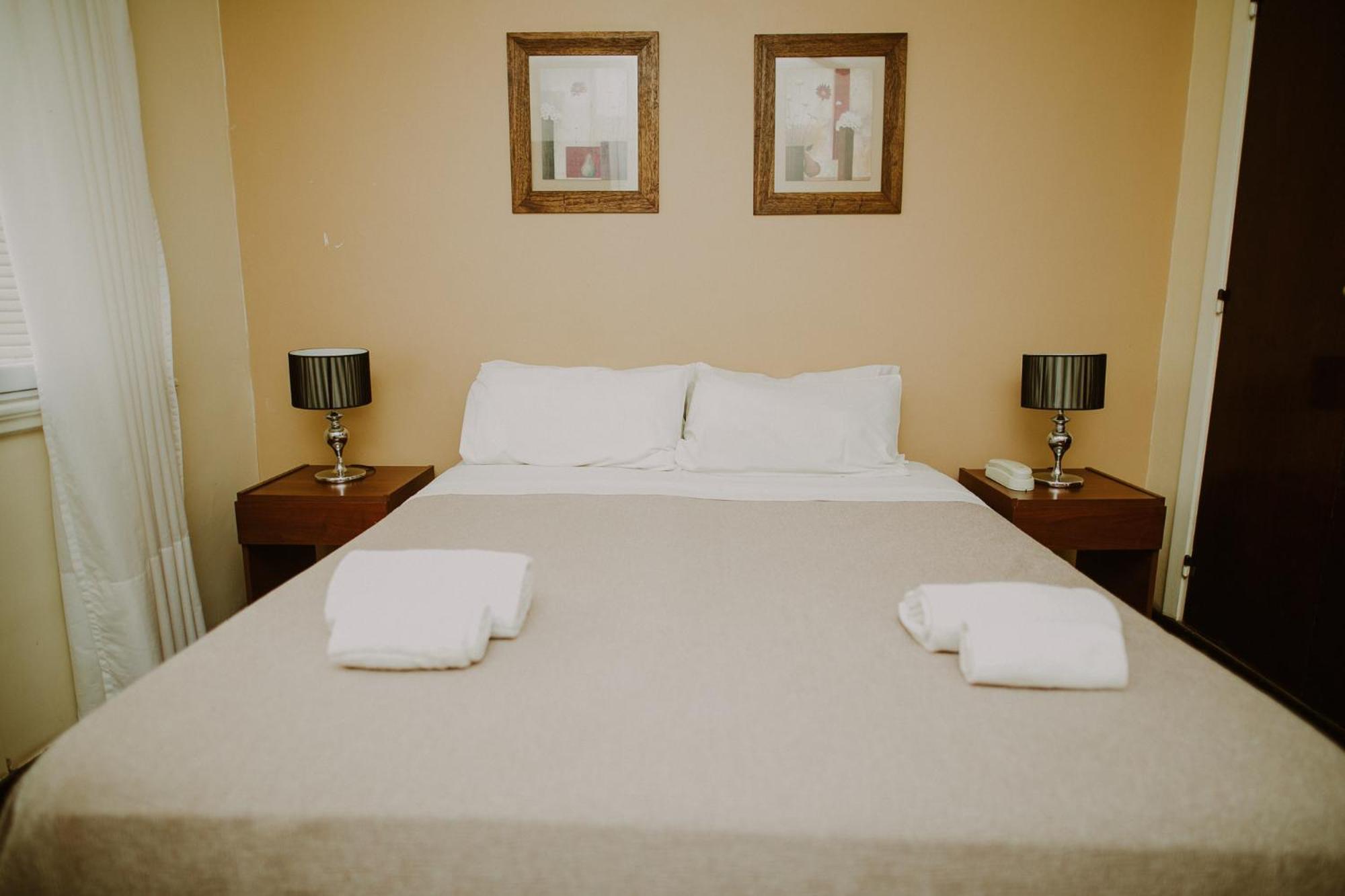 La cama matrimonial en realidad eran dos camas de plaza y media unidas.