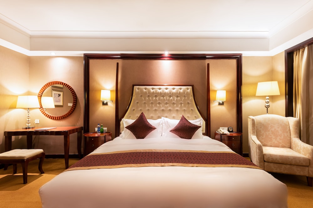2階が広いフロントで朝食ビッフェは2階正面の左側で味は80点、チェックイン後廊下が長くて中々自分の部屋が見つからずに引き返して確認しました。エレベーターが1か所に付き2台ですが階数が少ないのですぐに到着します。私が2日滞在したのは4階でこちらのホテルは全体的に低いので夜景は楽しめないです。部屋もまずまず広く(中国は殆どの場合広い)です。設備の細かい所も見ましたが仕上がりも上出来でしたが私の泊まった部屋はバルコニーへ出られないレバーをどうしても動かせない、全体的に綺麗で豪華で中華的な感じは全く有りません。
