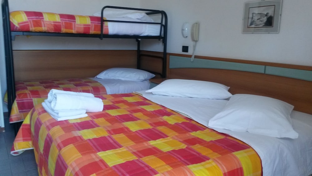 Abbiamo pernottato solo una notte per andare a Mirabilandia. La camera che ci hanno dato (piano terra) era per 5 persone ma per fortuna eravamo solo in 3 perchè era molto piccola e con dotazioni scarse (armadio piccolo, una sola sedia, bagno spartano). Comunque rispetto a quanto abbiamo pagato (bassa stagione) non ci aspettavamo di più.