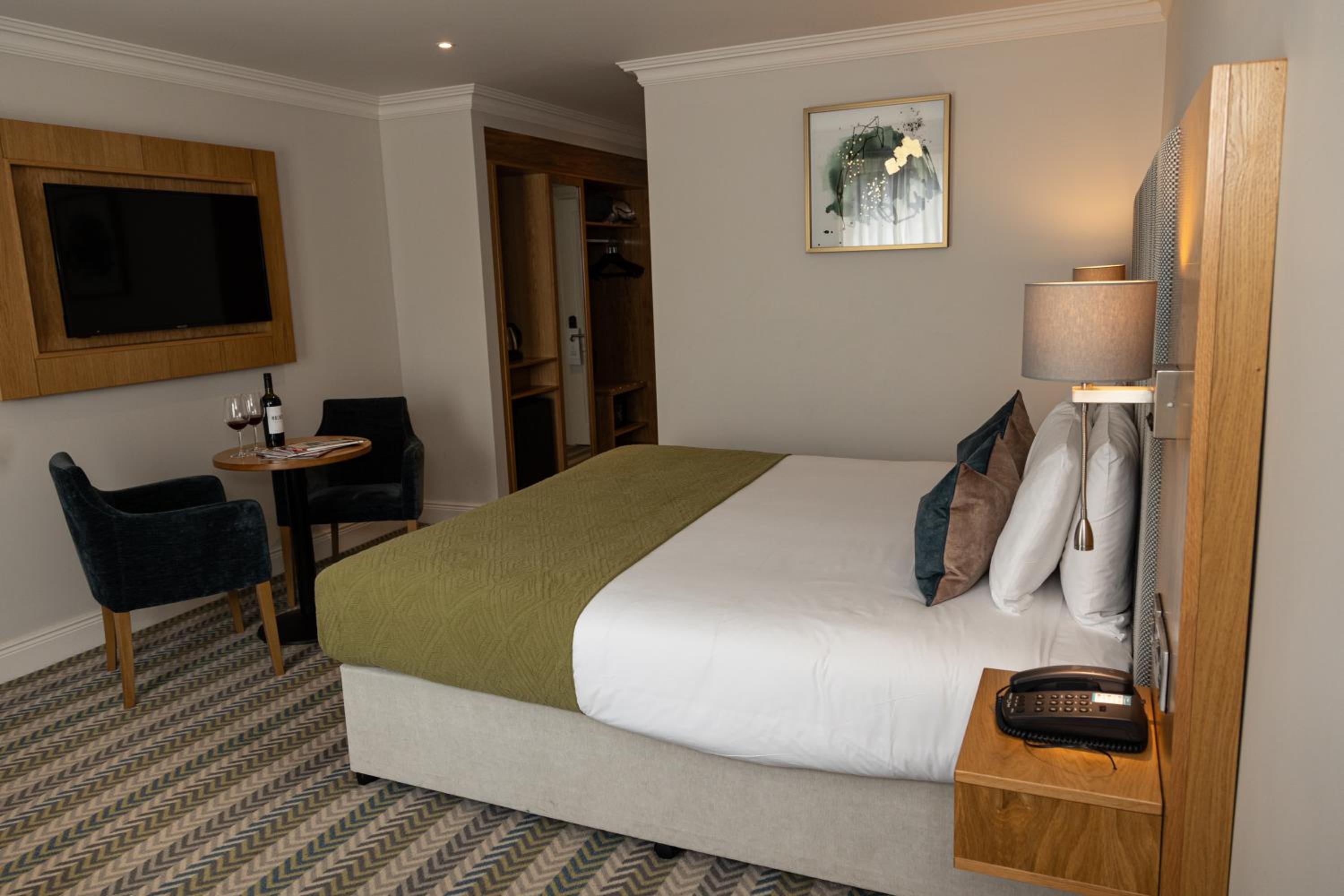 Experience a stay like no other at The Heights Hotel Killarney, where luxury meets breathtaking countryside views of the Flesk Valley and majestic mountains. Relax in rooms equipped with modern amenities like cable TVs and enjoy the convenience of room service throughout the day.