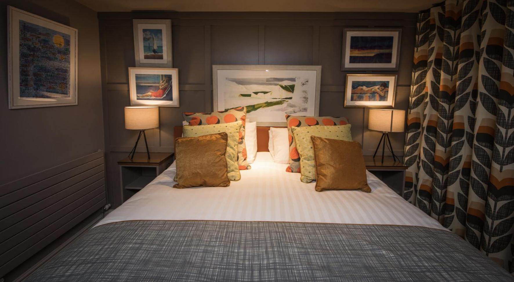 The Marquis of Granby offers chic rooms adorned with fine furnishings and beautiful fabrics, providing a blend of modern luxury and traditional English charm.