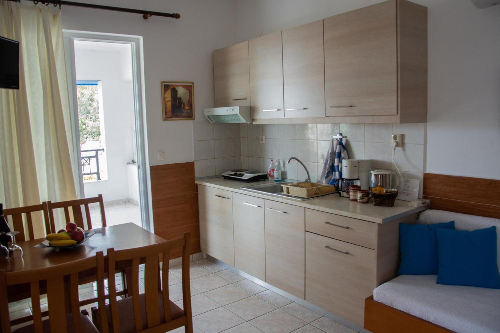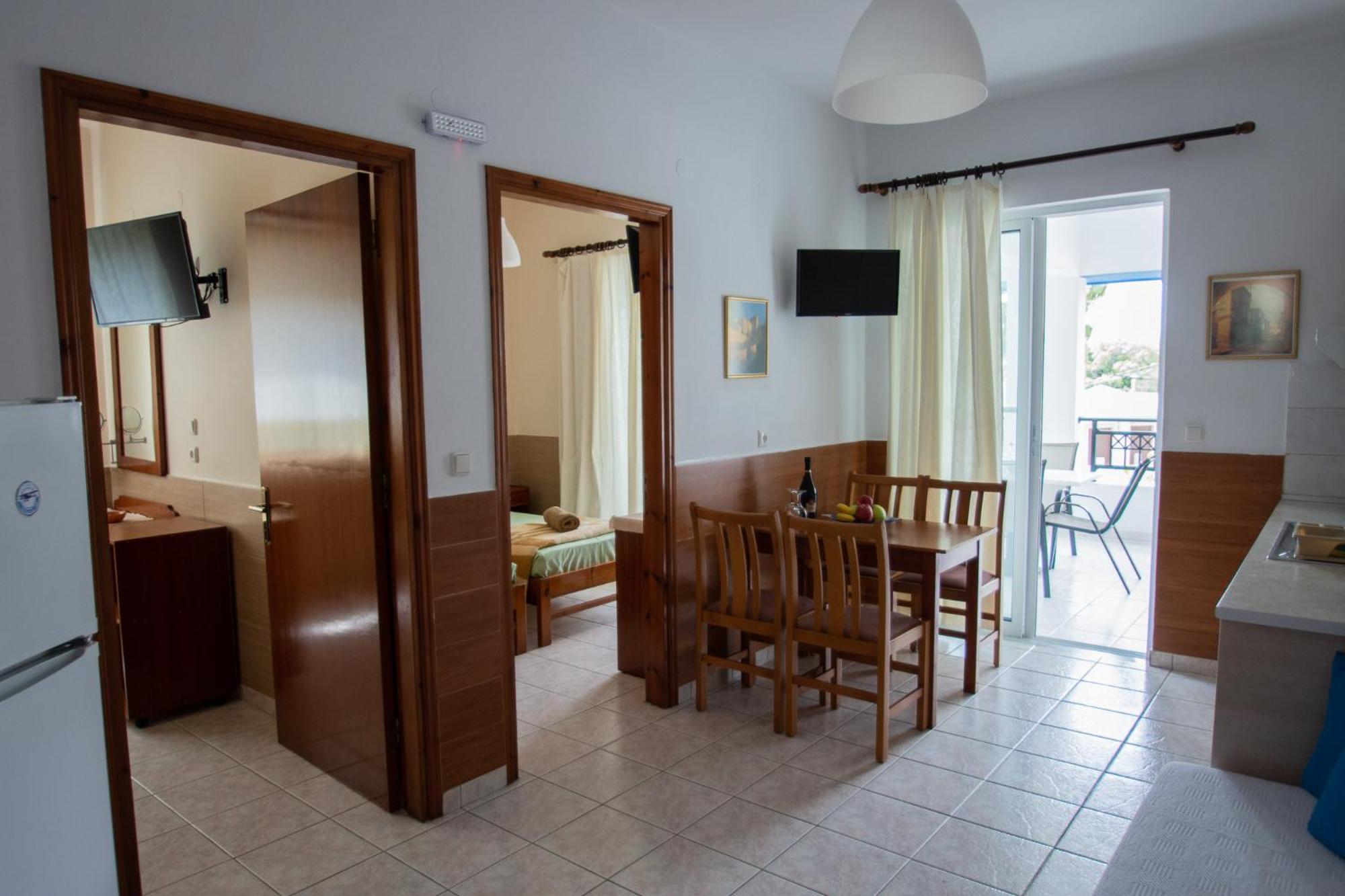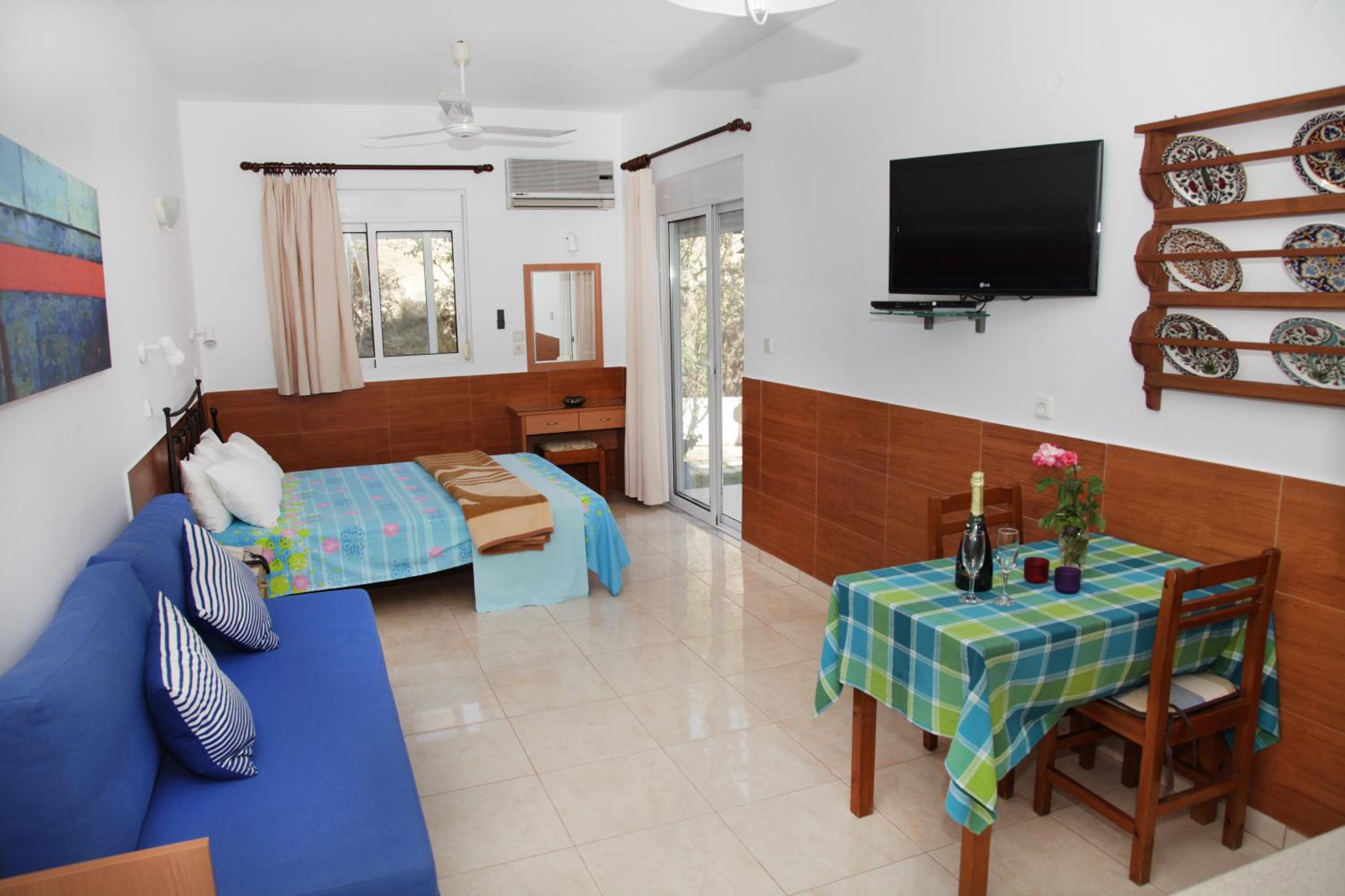 ambiente pulitissimo, gestori super accoglienti utilissimi e discreti, stanze silenziose e complete per cucinare, aria condizionata efficientissima, vista panoramica, a 3 Min a piedi dall unico paesino un po' più autentico della parte nord di rodi, a poca distanza dal mare (3 Min macchina, 20 Min a piedi), ottimo rapporto qualità prezzo.