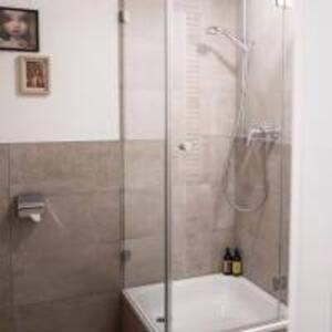 Habitación cómoda con baño bien equipado con todo lo necesario. Solo la ducha un poco pequeña.