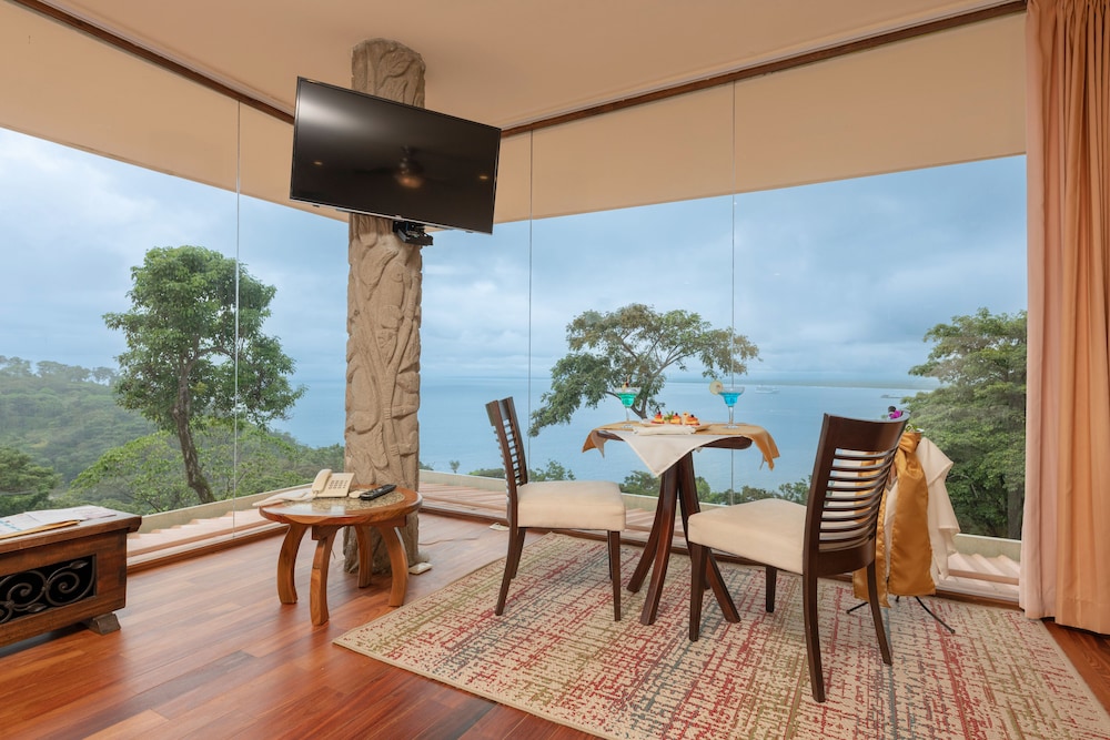 This place is absolutely incredible! The views are amazing, wildlife (3 different types of monkeys, sloths, parrots, macaws, toucans) every direction you look and a great beach just a 5 minute walk down the street with the same types of animals. At the beach there are locals you can give money to for drinks/chairs/umbrellas. Around the place, there are restaurants you can go to as well. Every single employee was incredibly friendly and helpful. They helped us book adventures with reliable companies that were awesome. Our room was great and spacious. My only thoughts are if you have people staying for several days, play a different playlist at the pool, but the service and happy hour cocktails were out of this world. There's nothing better than swimming in the pool, looking out over the ocean while monkeys are in the trees with a pina colada in your hand! Highly recommend.