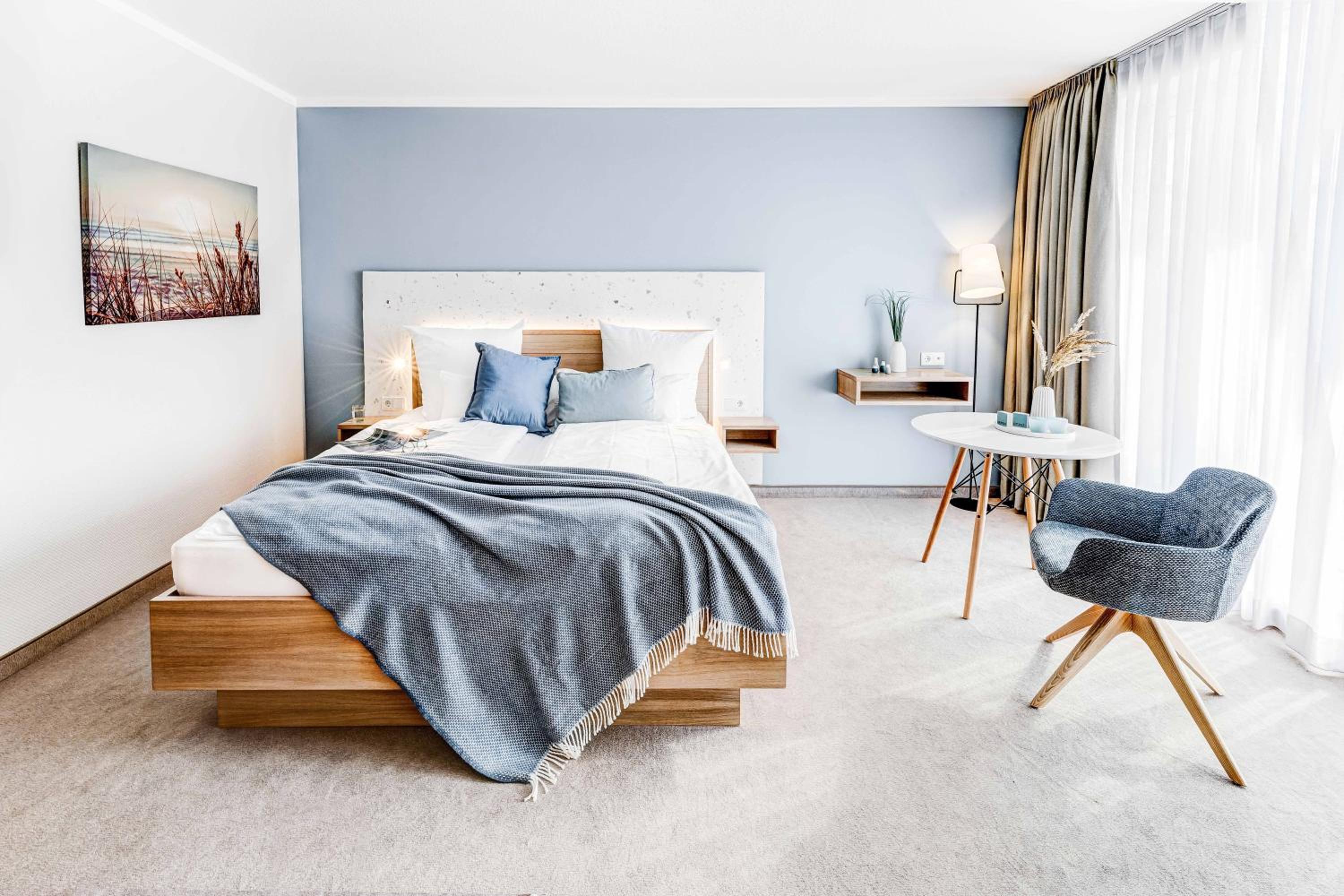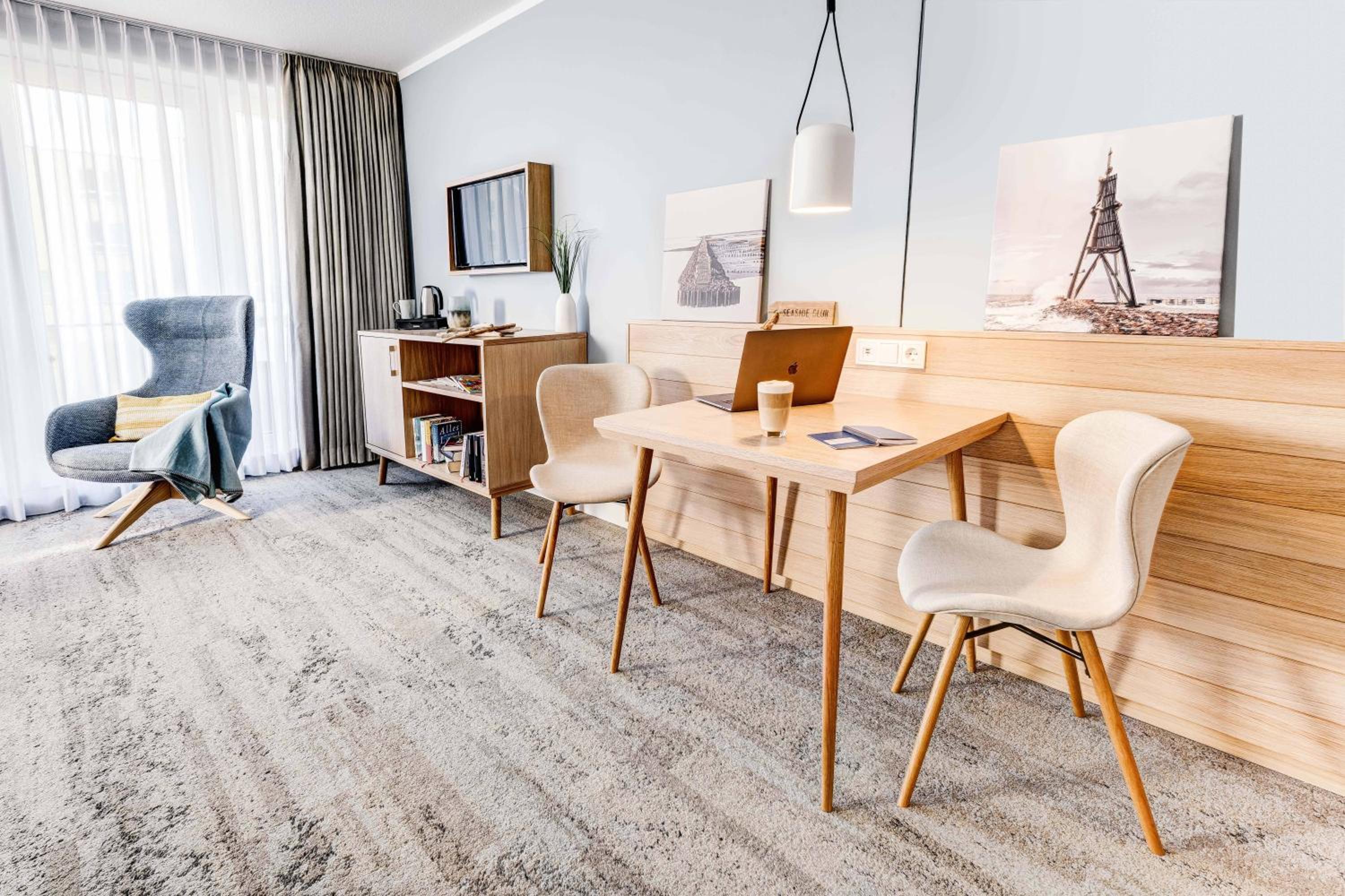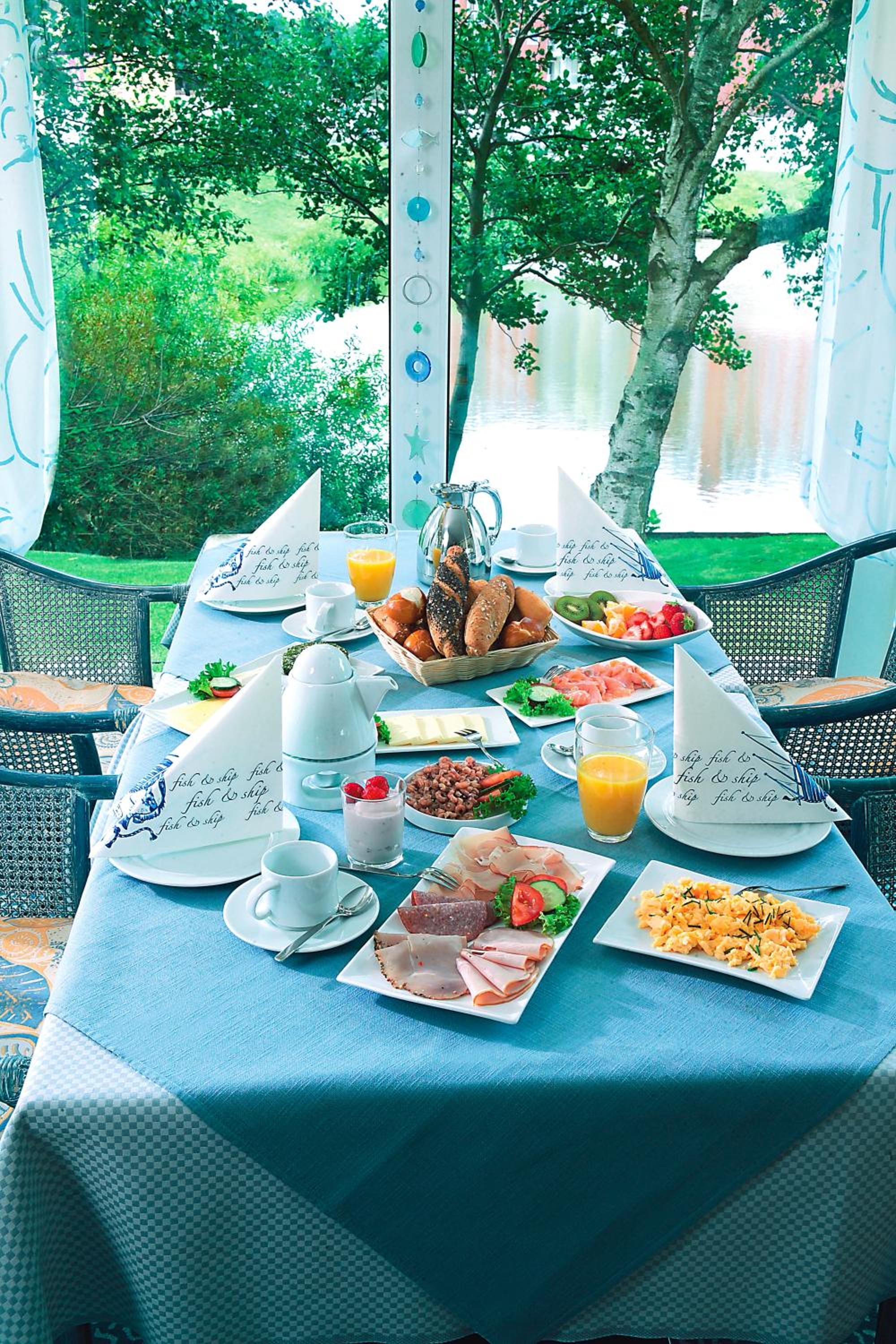 Start your day with a delicious breakfast buffet in the spacious breakfast room. In the evening, head to the Muschel Lounge to enjoy a wide selection of drinks, ranging from fine wines to German beers.