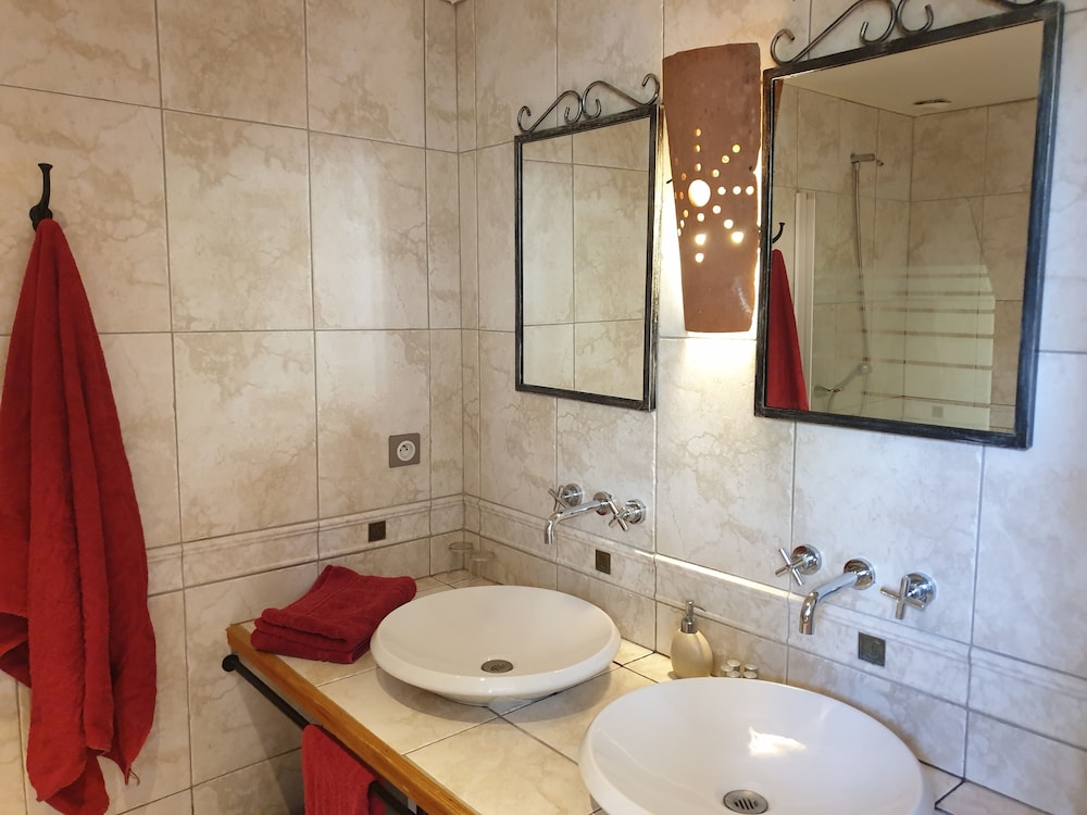 Nous sommes au cœur de la verdure et du calme, grand parc arboré, piscine, pas loin de Toulouse, lit confortable avec climatisation, facile à se garer, personnel accueillant et très sympathique. En revanche, l'ensemble manque de "soin". Ma palette abîmée qui indique l'entrée voiture, les 2 douches (utilité ?) dans la salle de bain dlc fonctionnent mal et éclaboussent de l'eau partout, le miroir est trop bas, les portes grincent, le parquet fait un bruit insupportable (surtout celui du couloir donc on entend toutes les personnes marcher), la peinture écaillée autour des portes. C'est plus un petit hôtel qu'une chambre d'hôtes.