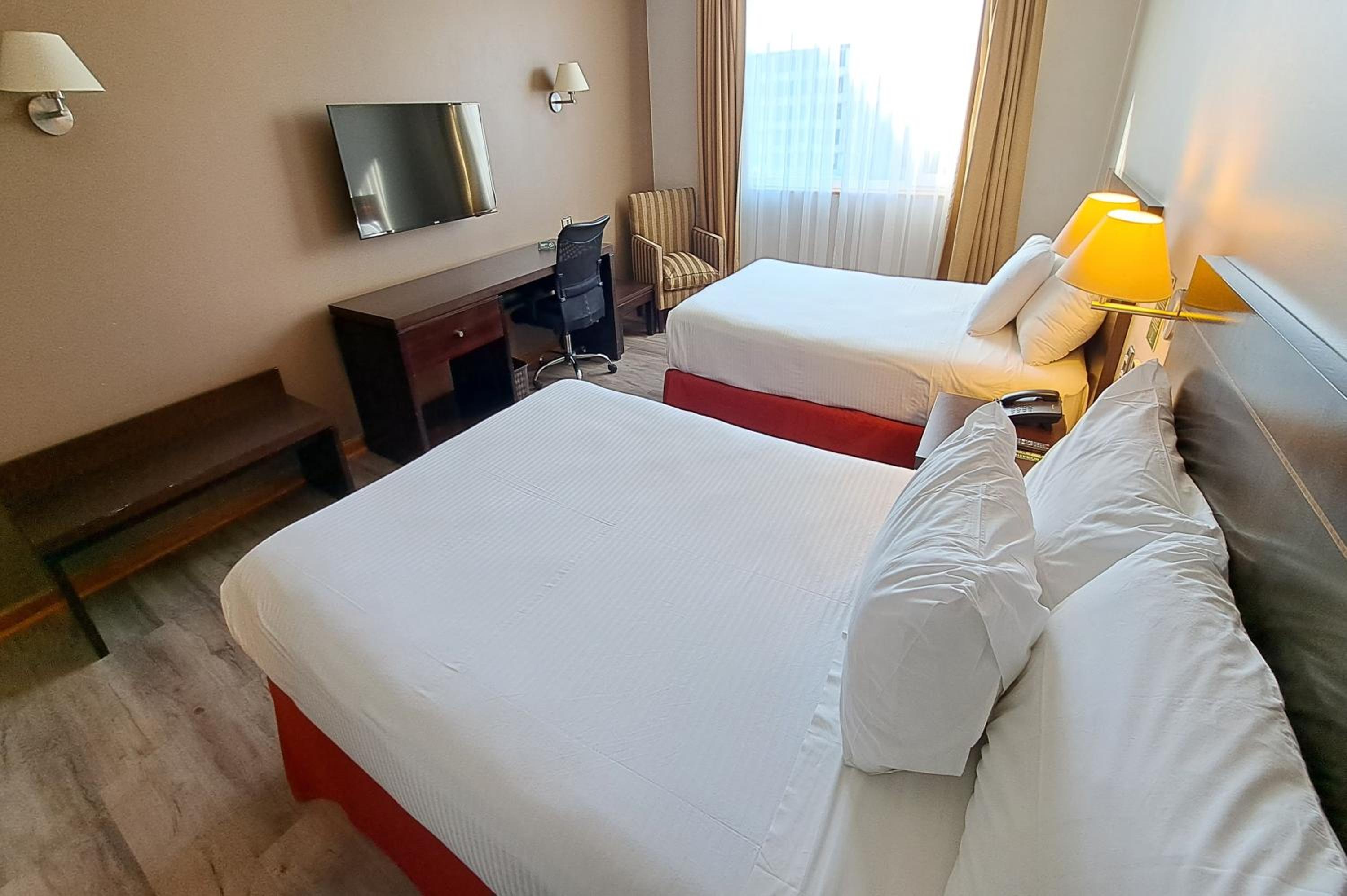 The rooms at Diego de Almagro Lomas Verdes Hotel are fully carpeted and equipped with minibars, cable TV, and free Wi-Fi. Guests can start their day with an American breakfast served daily, ensuring a comfortable and convenient stay.