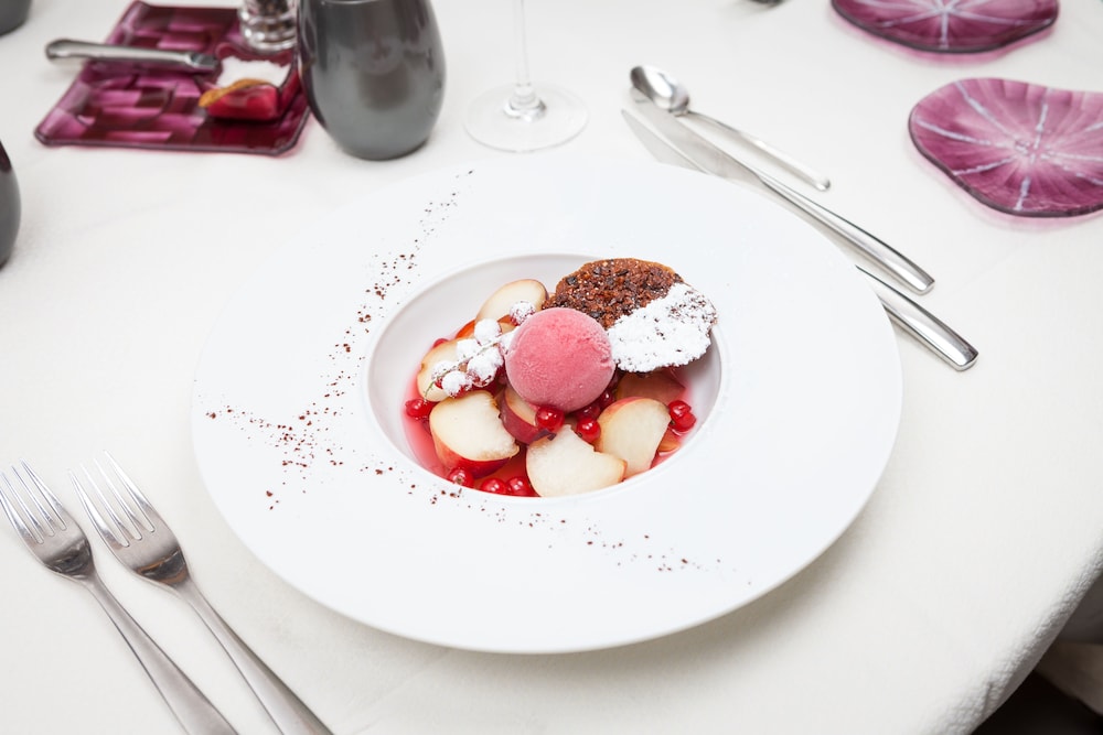 Indulge in a delightful meal at the on-site restaurant with a lovely garden view. Buffet breakfasts are served daily for a fulfilling start to your day.