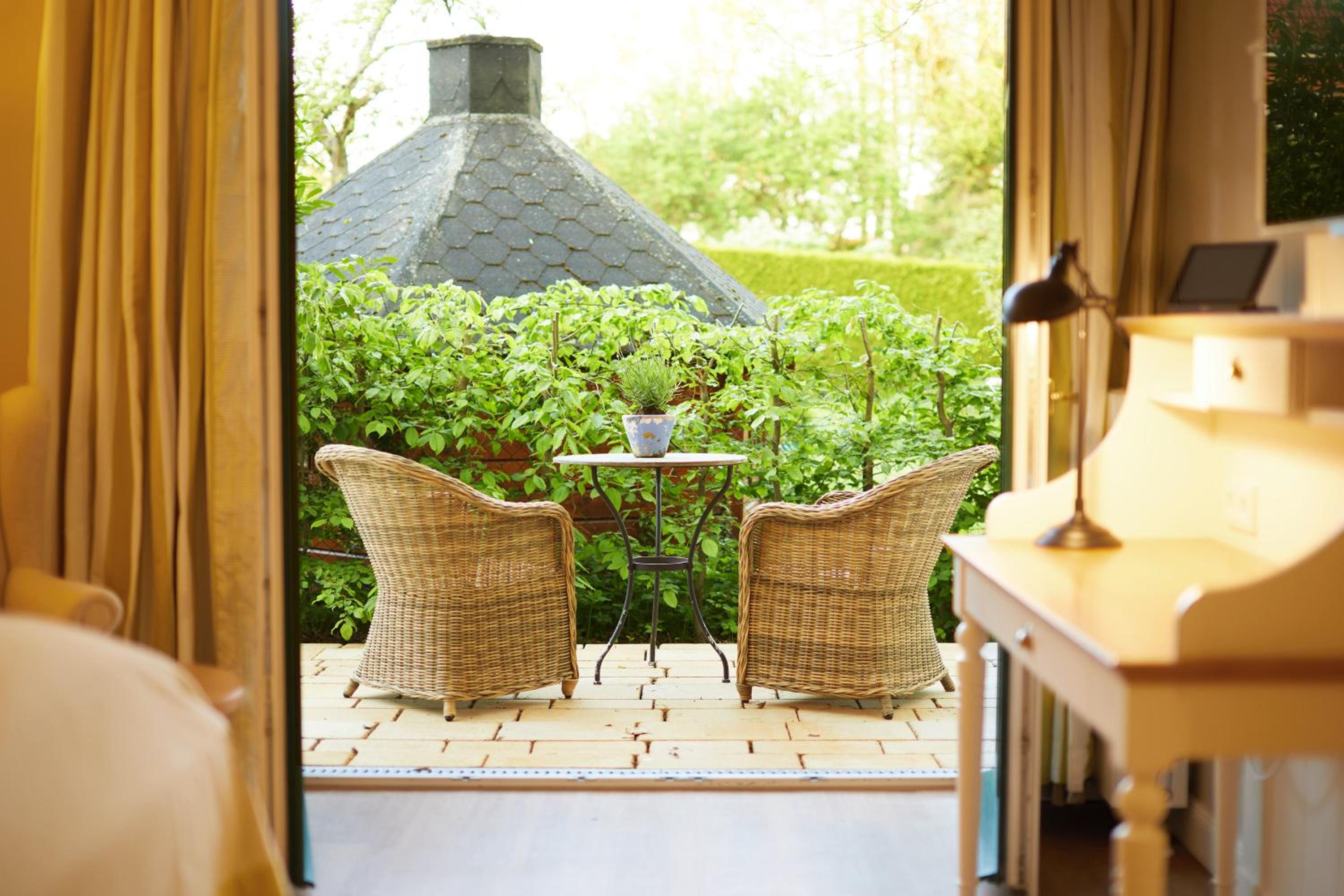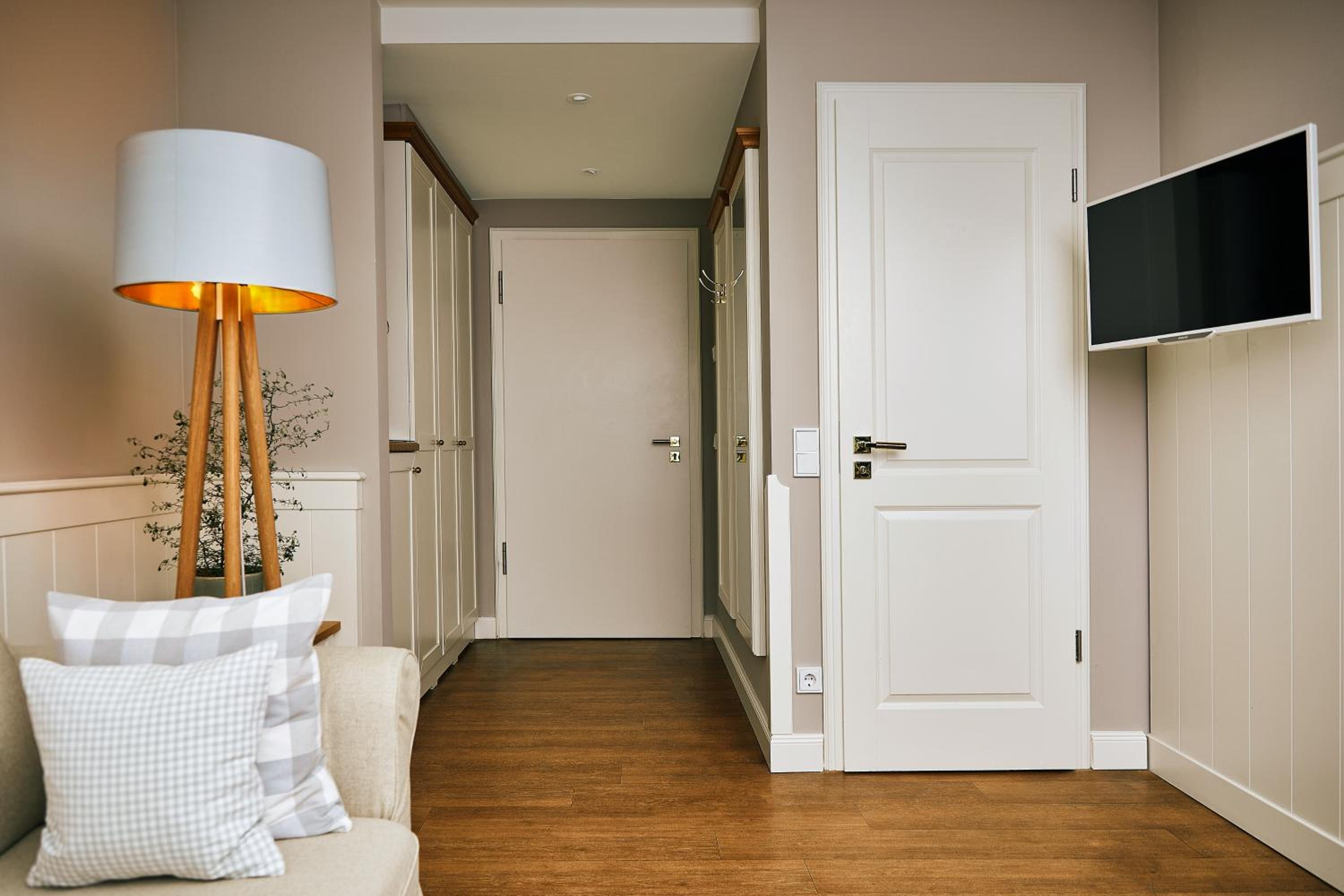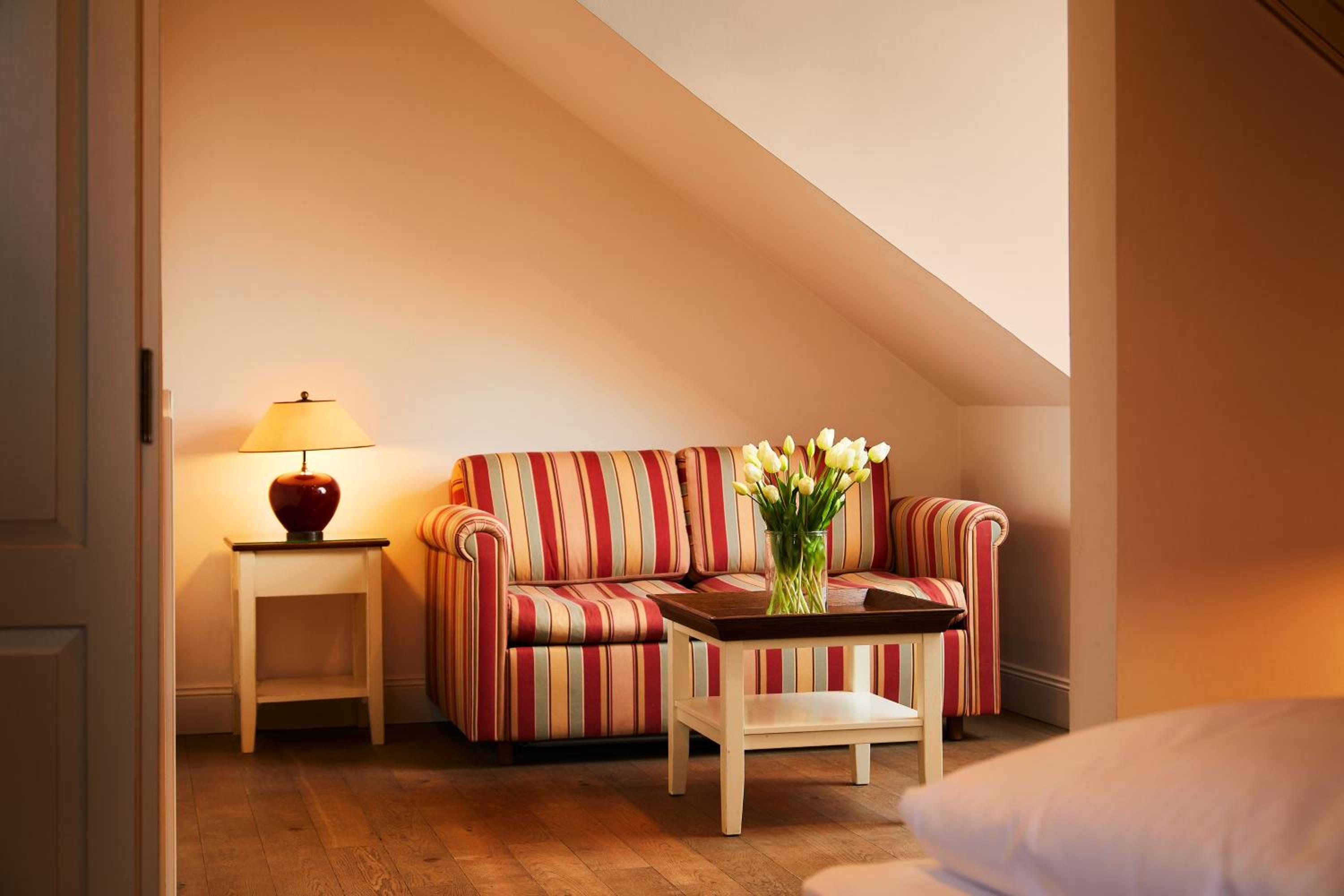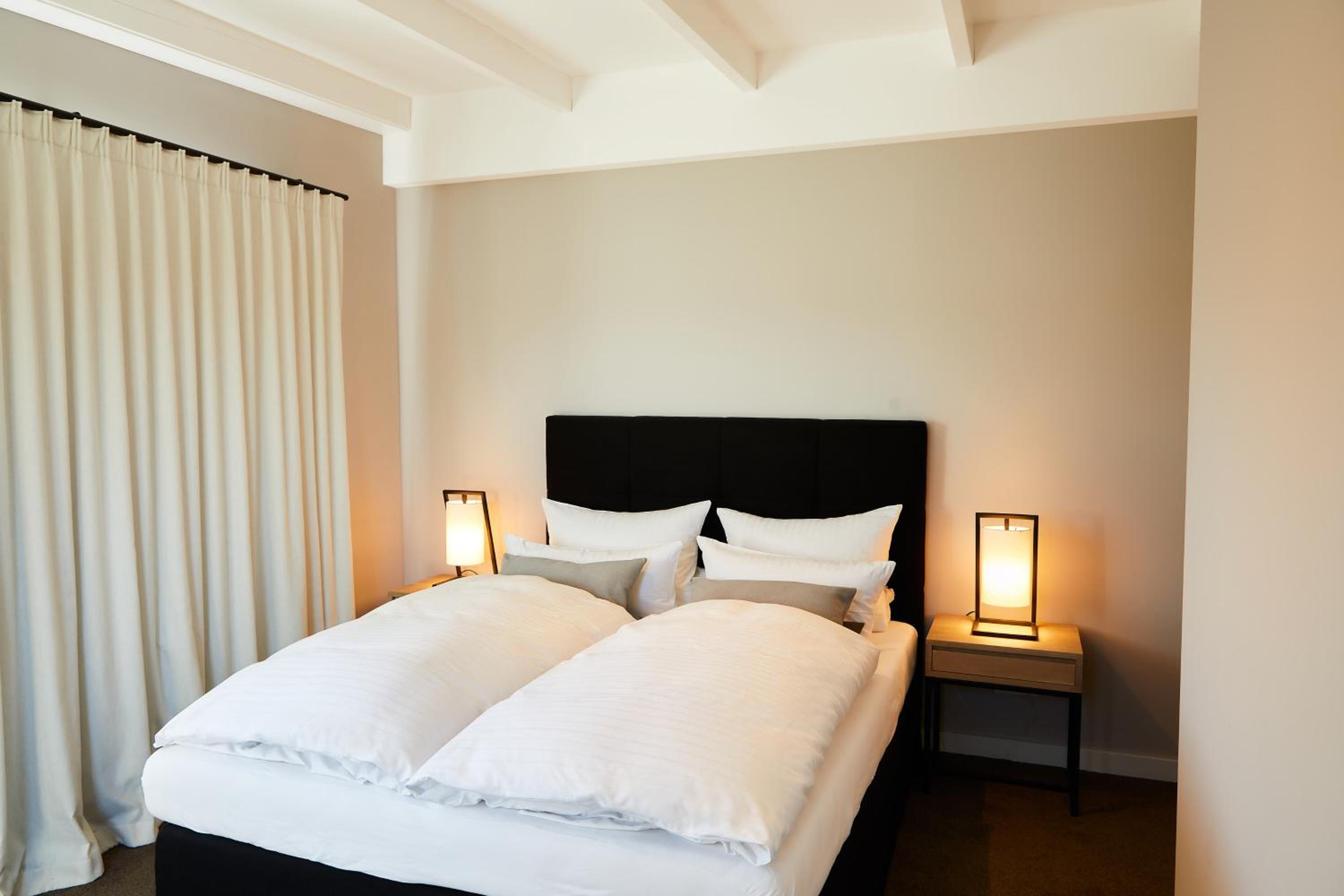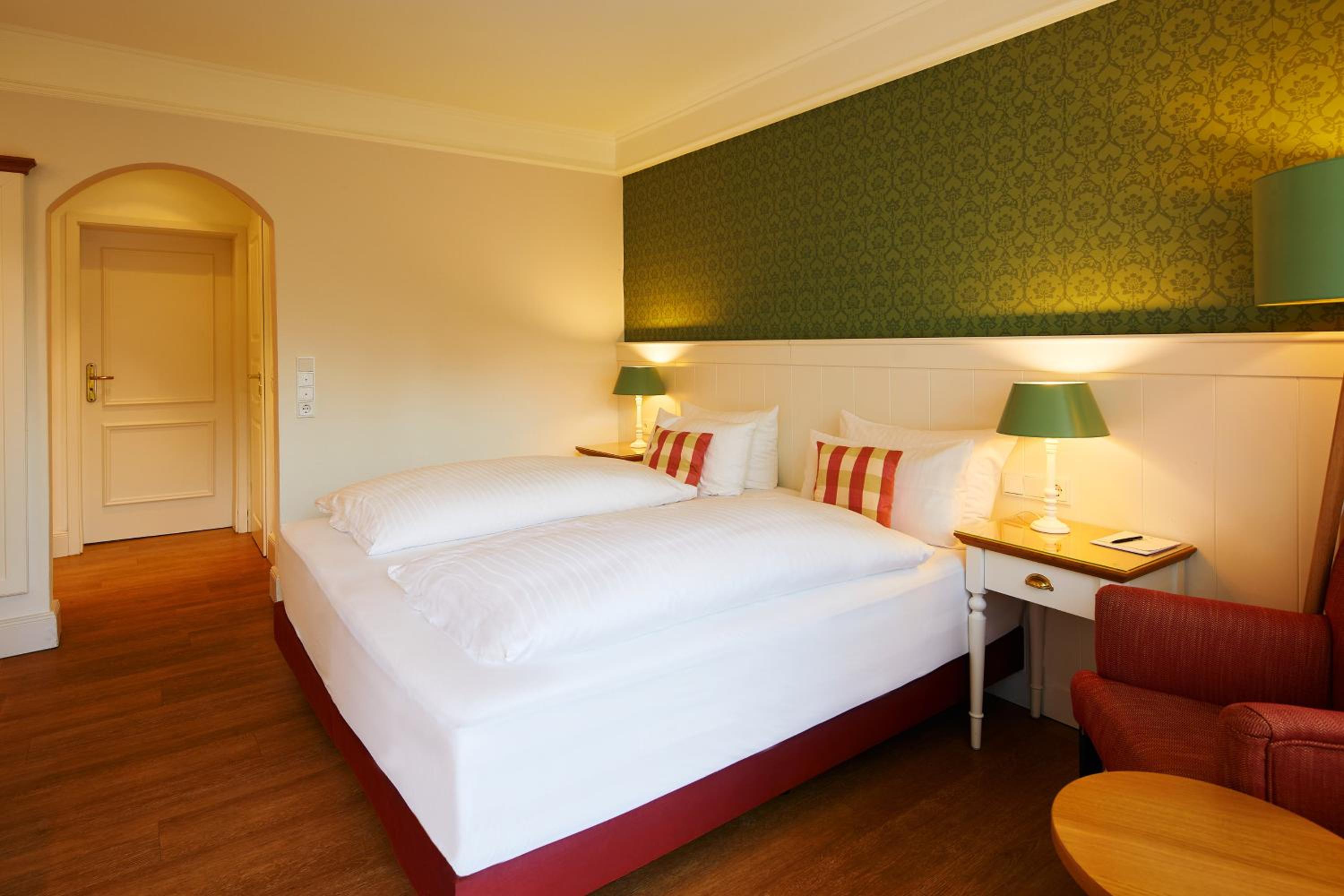 Das Hotel ist sehr gemütlich und geschmackvoll eingerichtet. Kleine Details machen alles sehr gemütlich. Wir waren im Haupthaus und hatten ein kleines Zimmer, was allerdings sehr stimmig eingerichtet war. Betten super bequem und verschiedene Kissen. Kaffeemaschine im Zimmer.