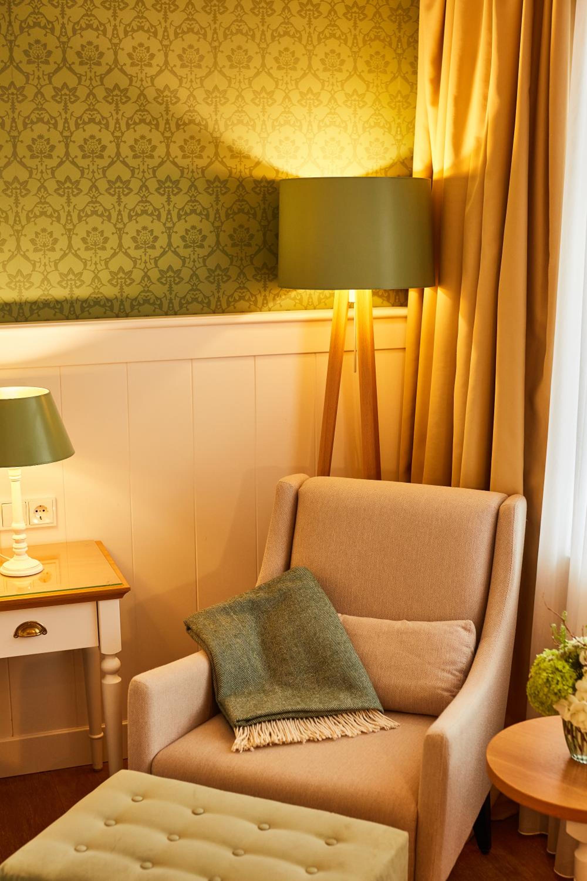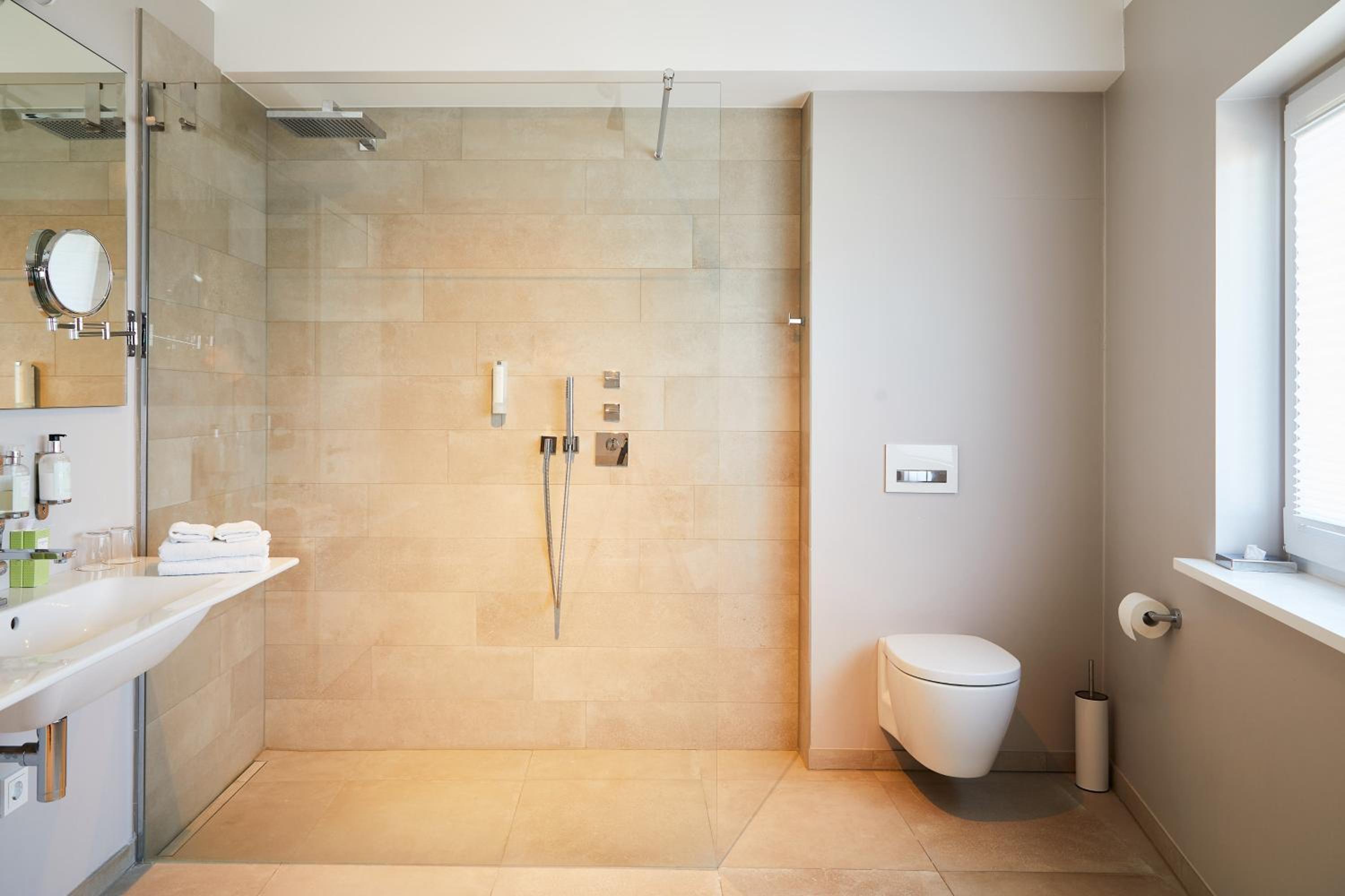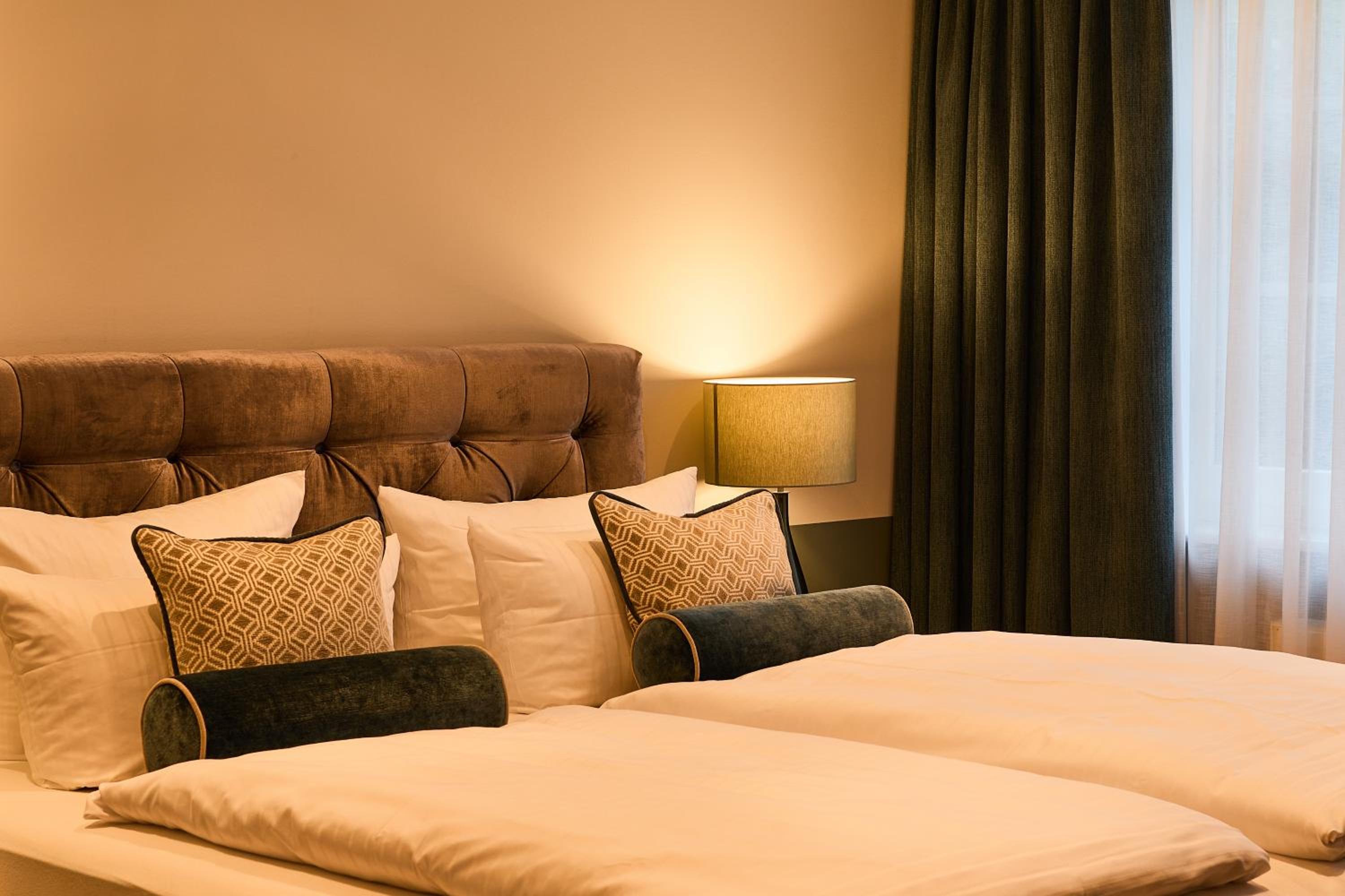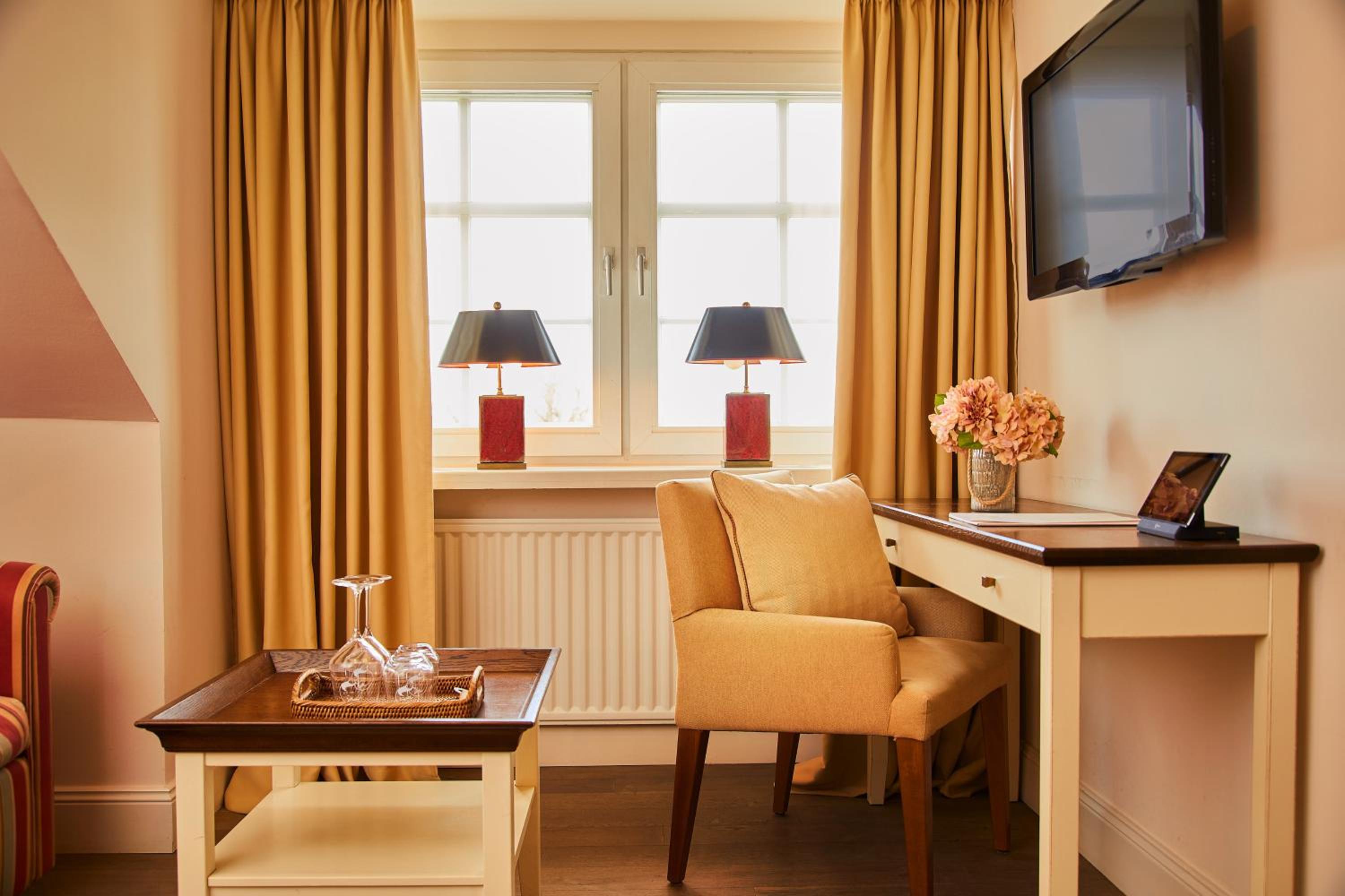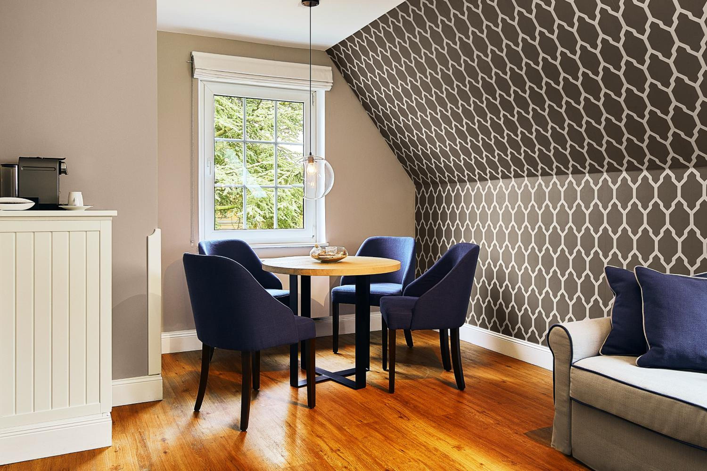 Das Hotel ist sehr gemütlich und geschmackvoll eingerichtet. Kleine Details machen alles sehr gemütlich. Wir waren im Haupthaus und hatten ein kleines Zimmer, was allerdings sehr stimmig eingerichtet war. Betten super bequem und verschiedene Kissen. Kaffeemaschine im Zimmer.