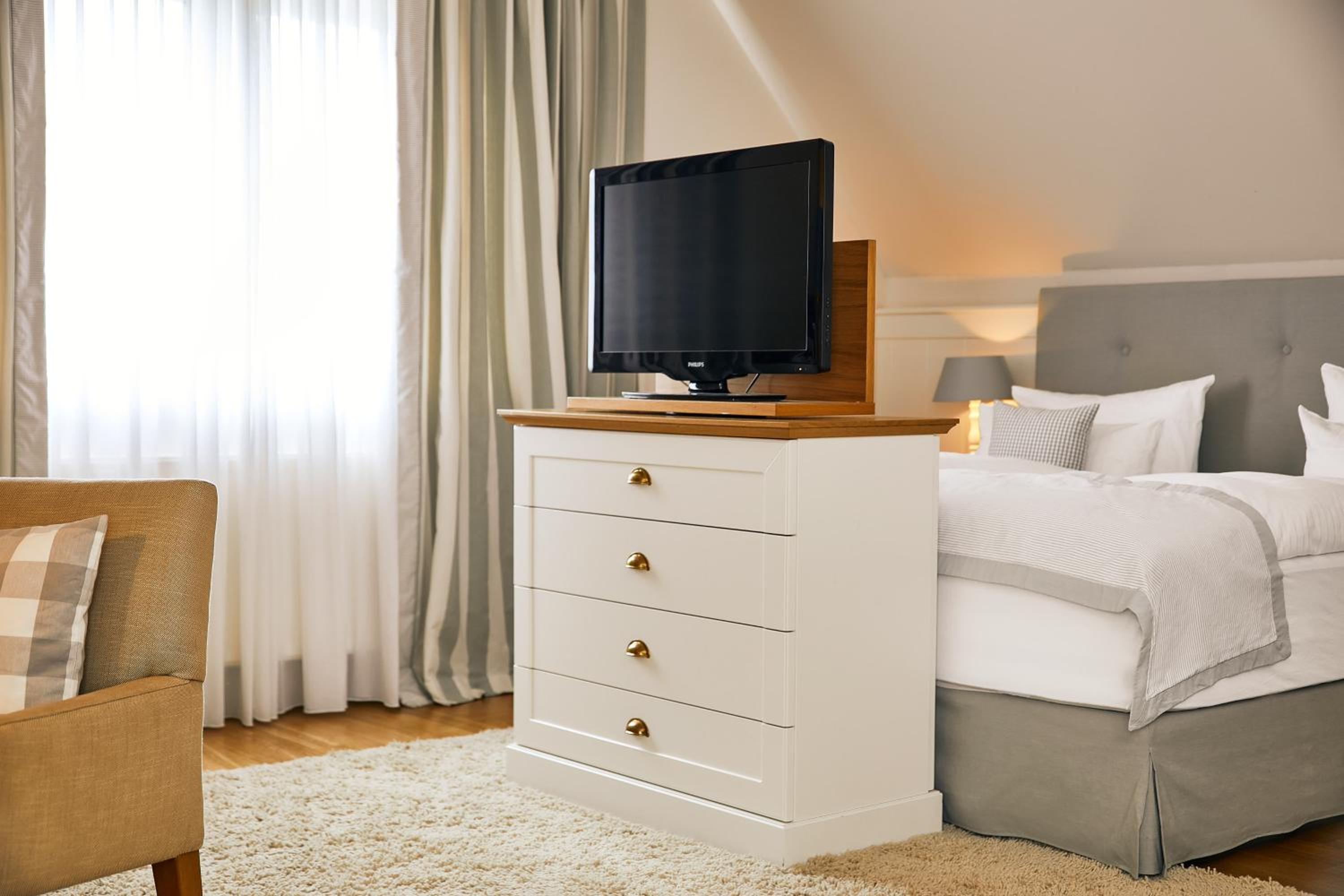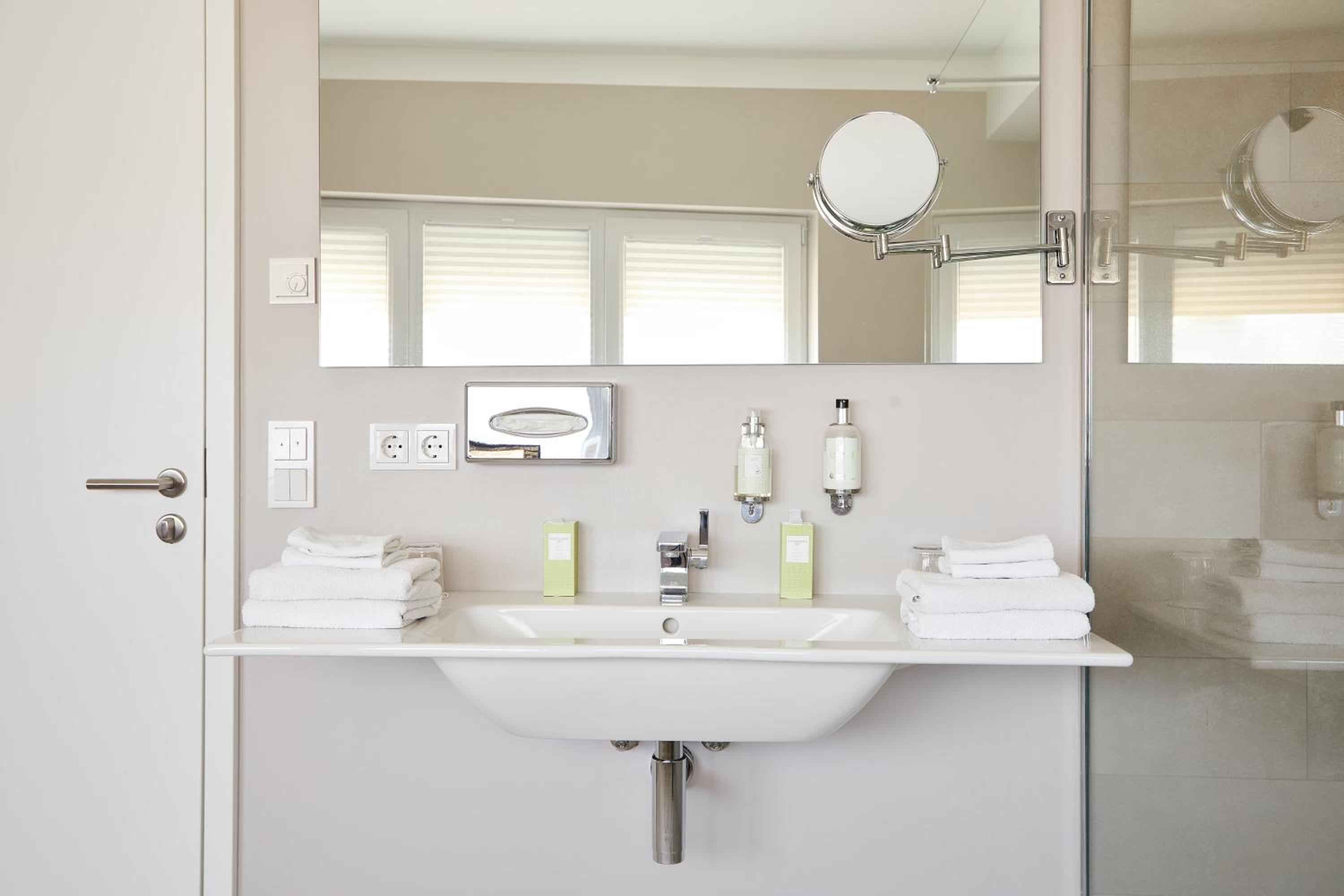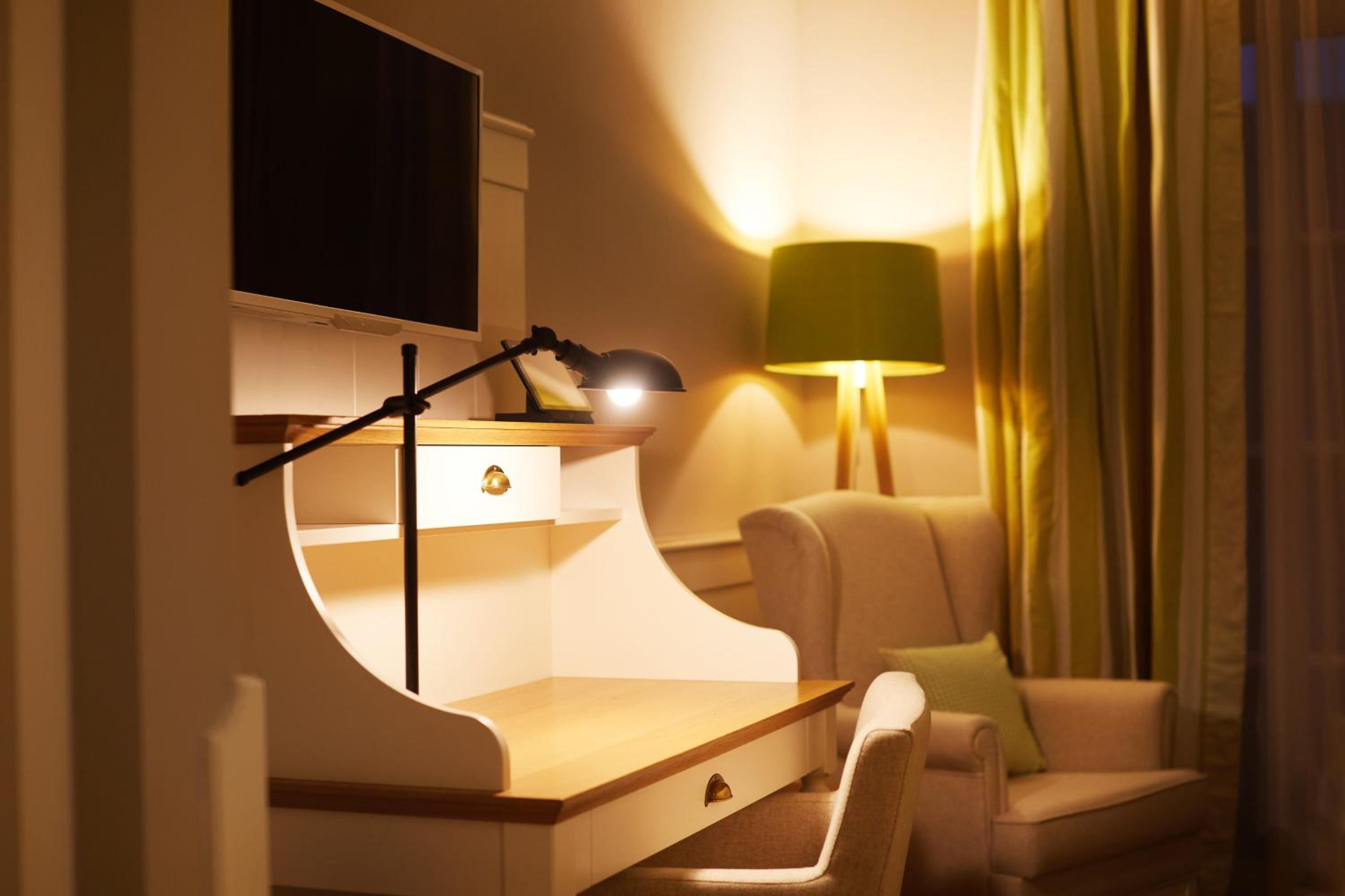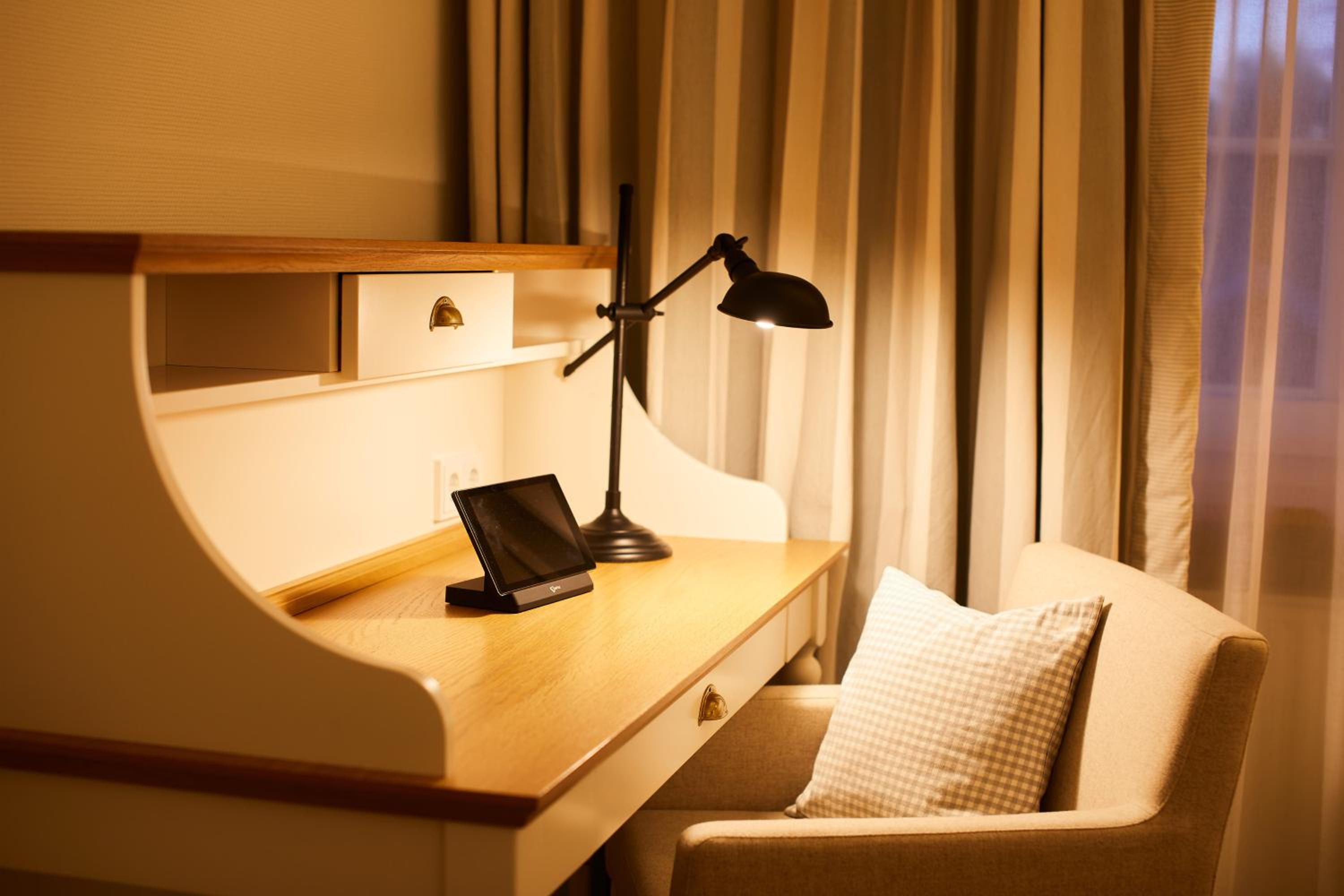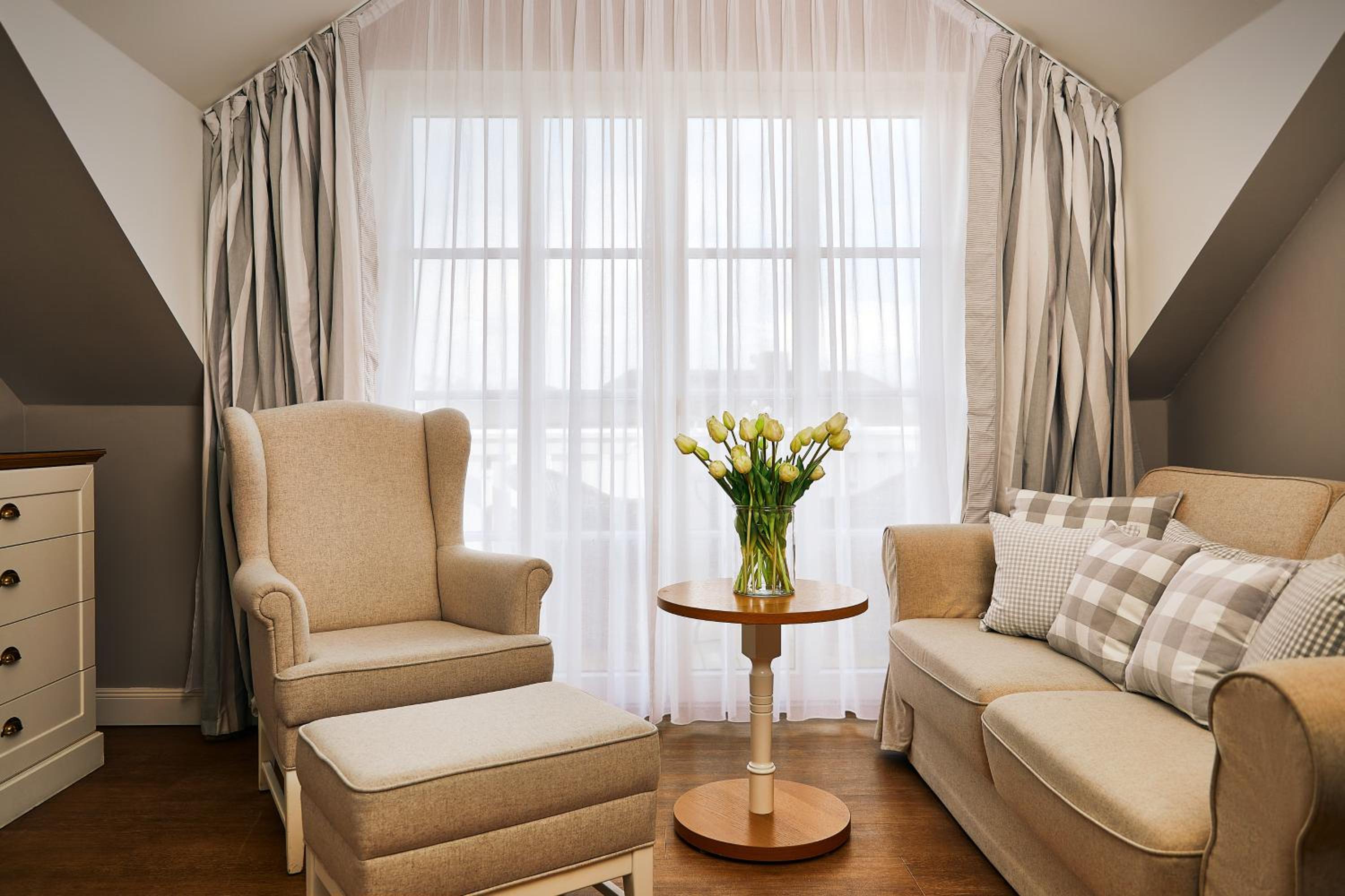 Das Hotel ist sehr gemütlich und geschmackvoll eingerichtet. Kleine Details machen alles sehr gemütlich. Wir waren im Haupthaus und hatten ein kleines Zimmer, was allerdings sehr stimmig eingerichtet war. Betten super bequem und verschiedene Kissen. Kaffeemaschine im Zimmer.
