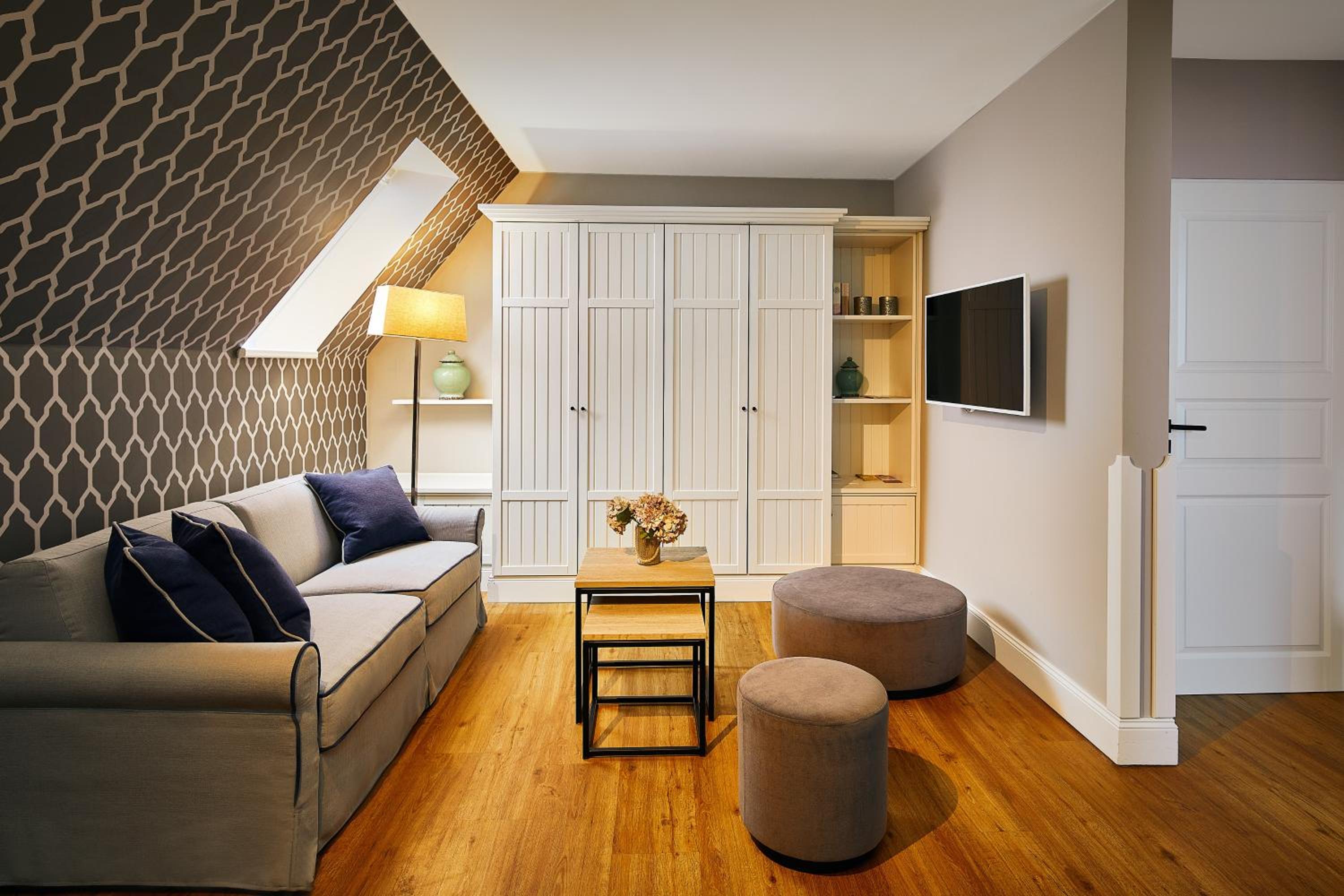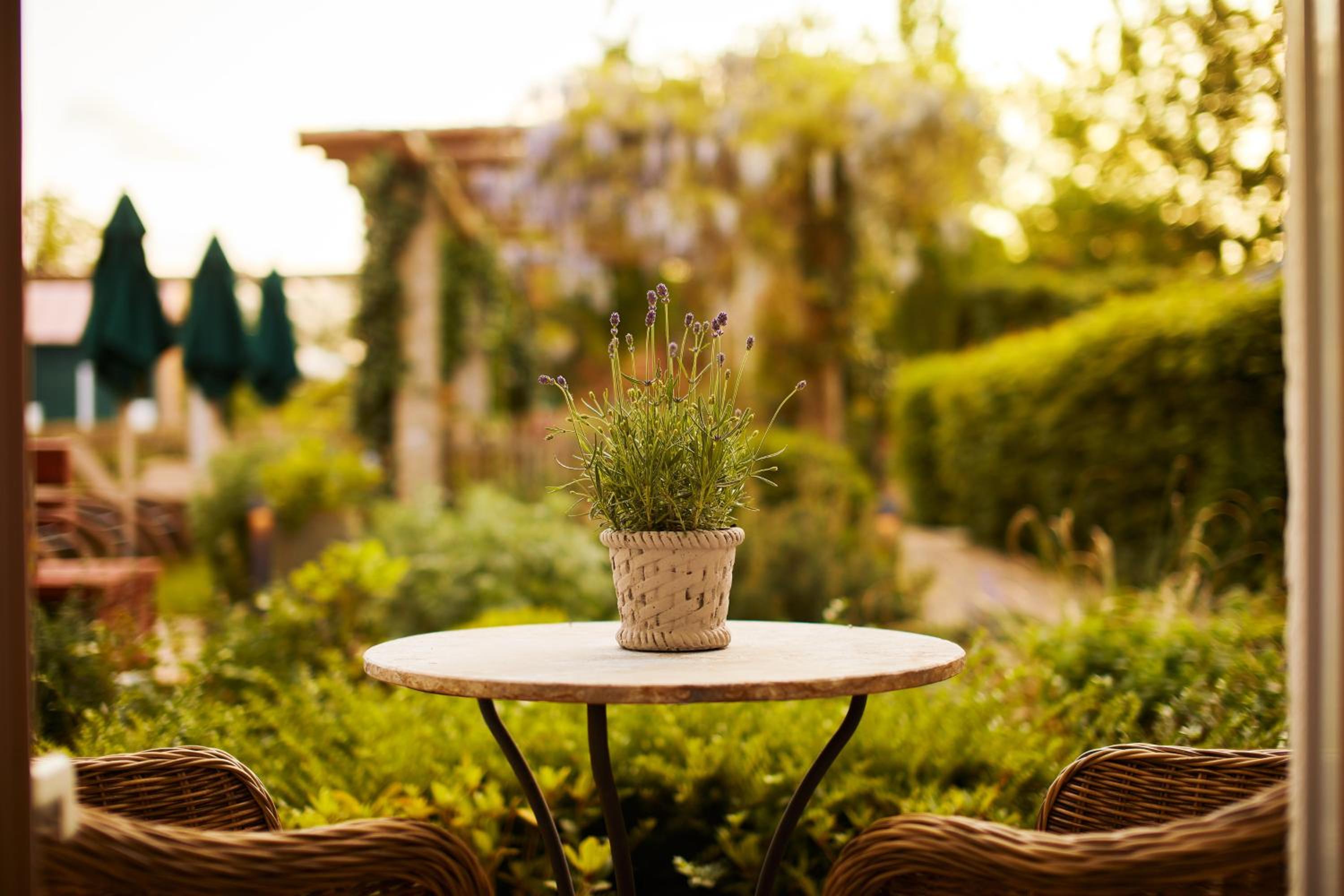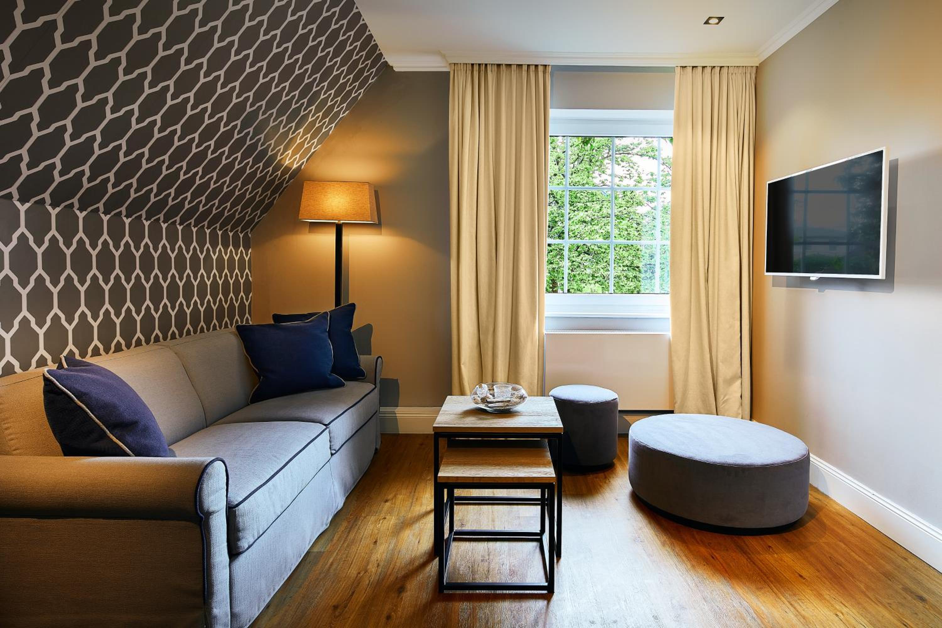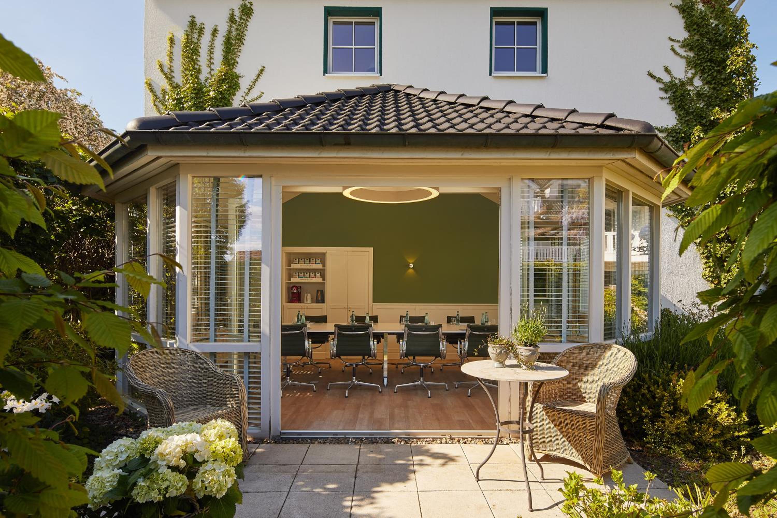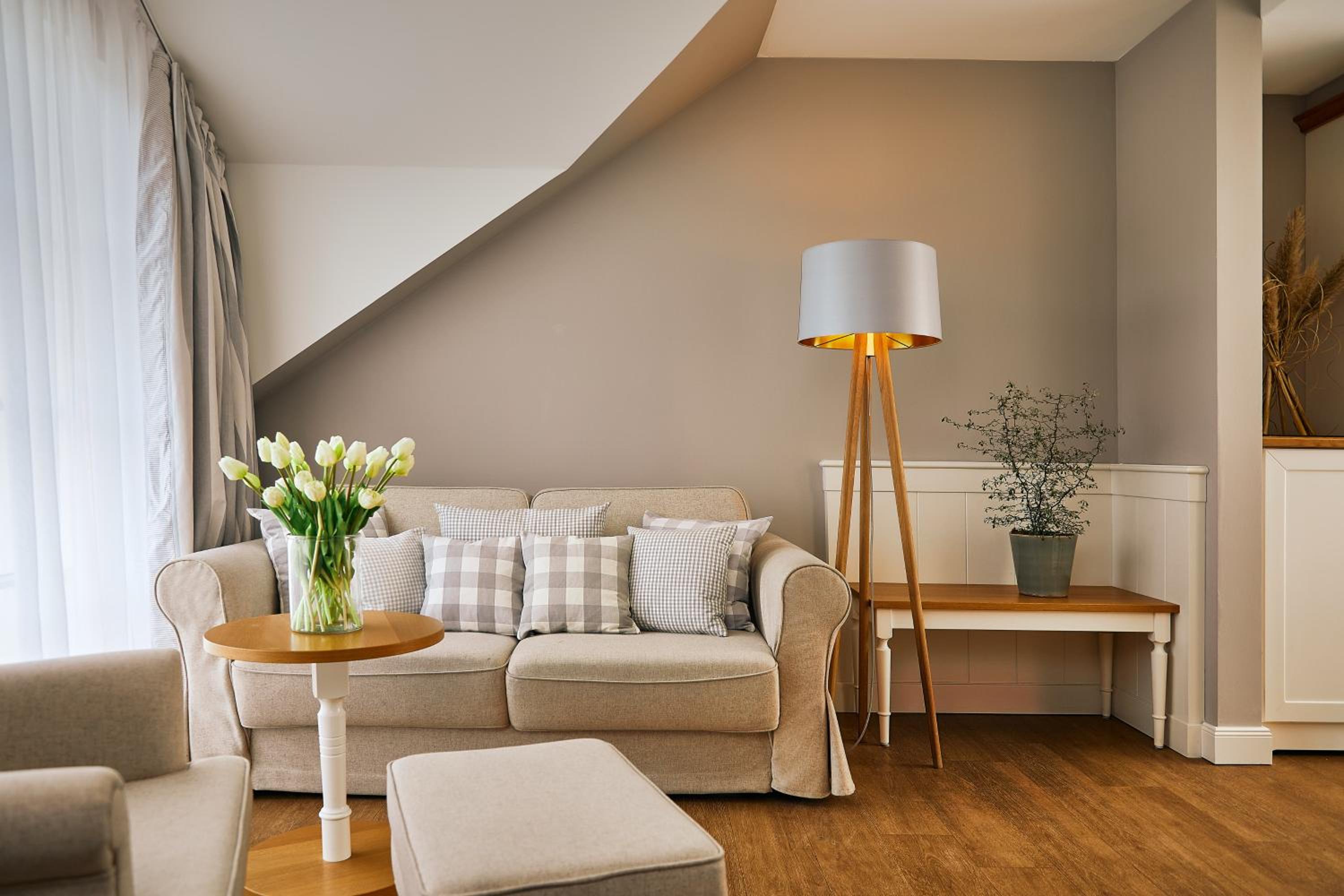 Das Hotel ist sehr gemütlich und geschmackvoll eingerichtet. Kleine Details machen alles sehr gemütlich. Wir waren im Haupthaus und hatten ein kleines Zimmer, was allerdings sehr stimmig eingerichtet war. Betten super bequem und verschiedene Kissen. Kaffeemaschine im Zimmer.