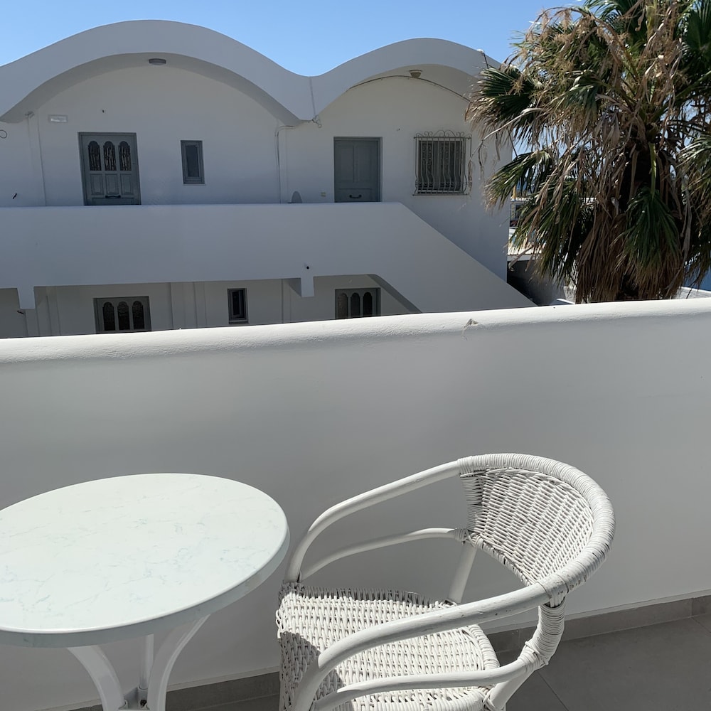 Very nice and helpful stuff . Nice beach and very close to bus stop that takes you to Fira.