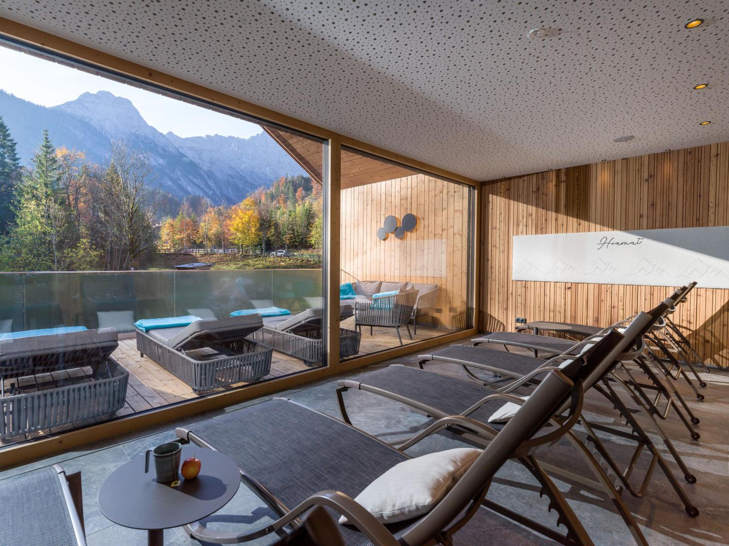 Wellnessbereich: neu, wunderschön eingerichtet, wunderbare Aussicht auf die Bergwelt & die Riss