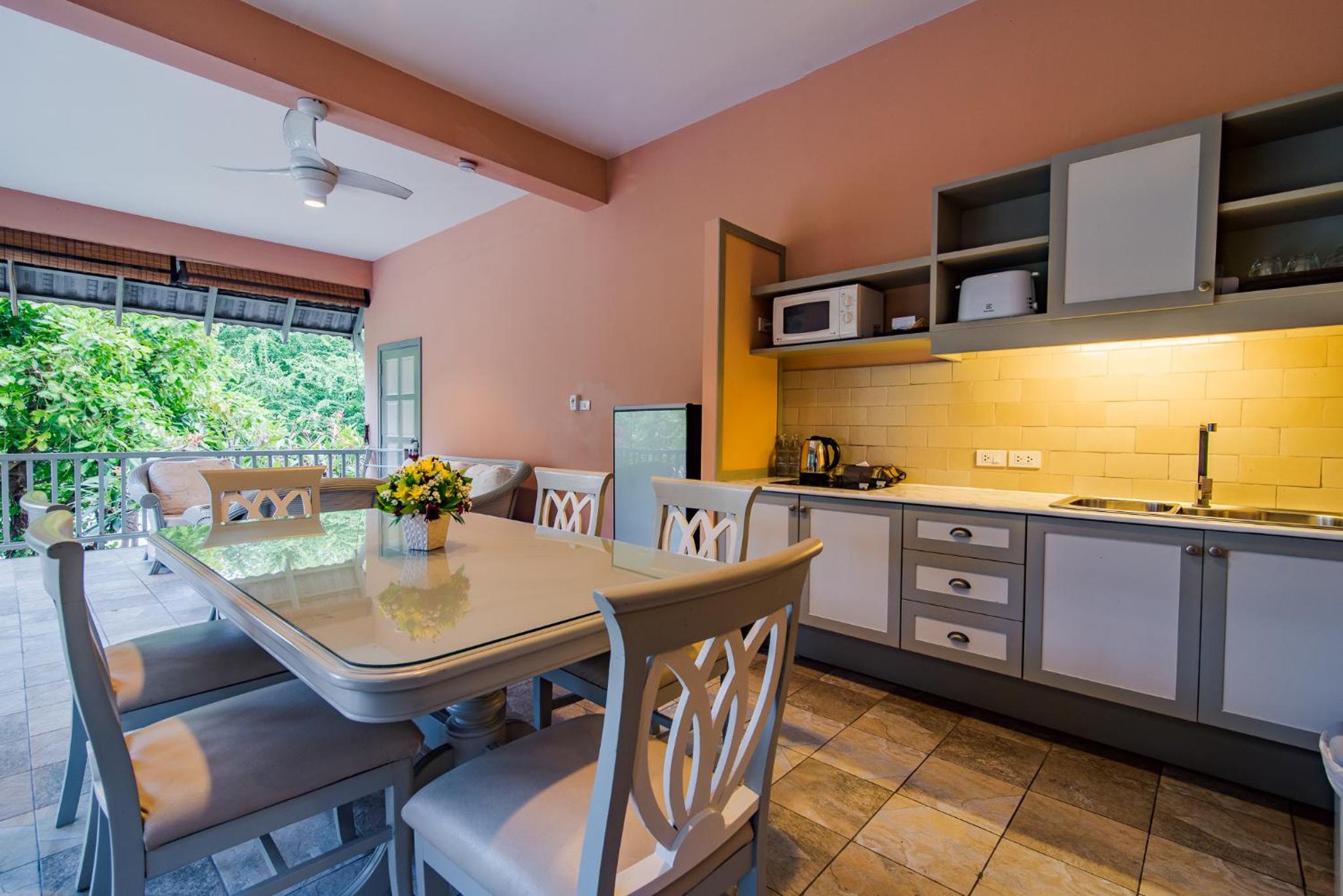 What a lovely resort! The rooms are so clean and comfortable, and the views are incredible! We rented the Sea View and Mountain View penthouses. (The Sea View was not available for our entire stay.) These rooms have enormous decks/patios with multiple areas for relaxing. The pool at this resort is huge and there are free towels for guests. The morning breakfast is the highlight! It is included and is the most amazing buffet with Thai food, western food, all sorts of pastries, an omelet bar as well as a dessert cooked daily, such as churros. Fruits and yogurts and juices. Such a delicious spread!