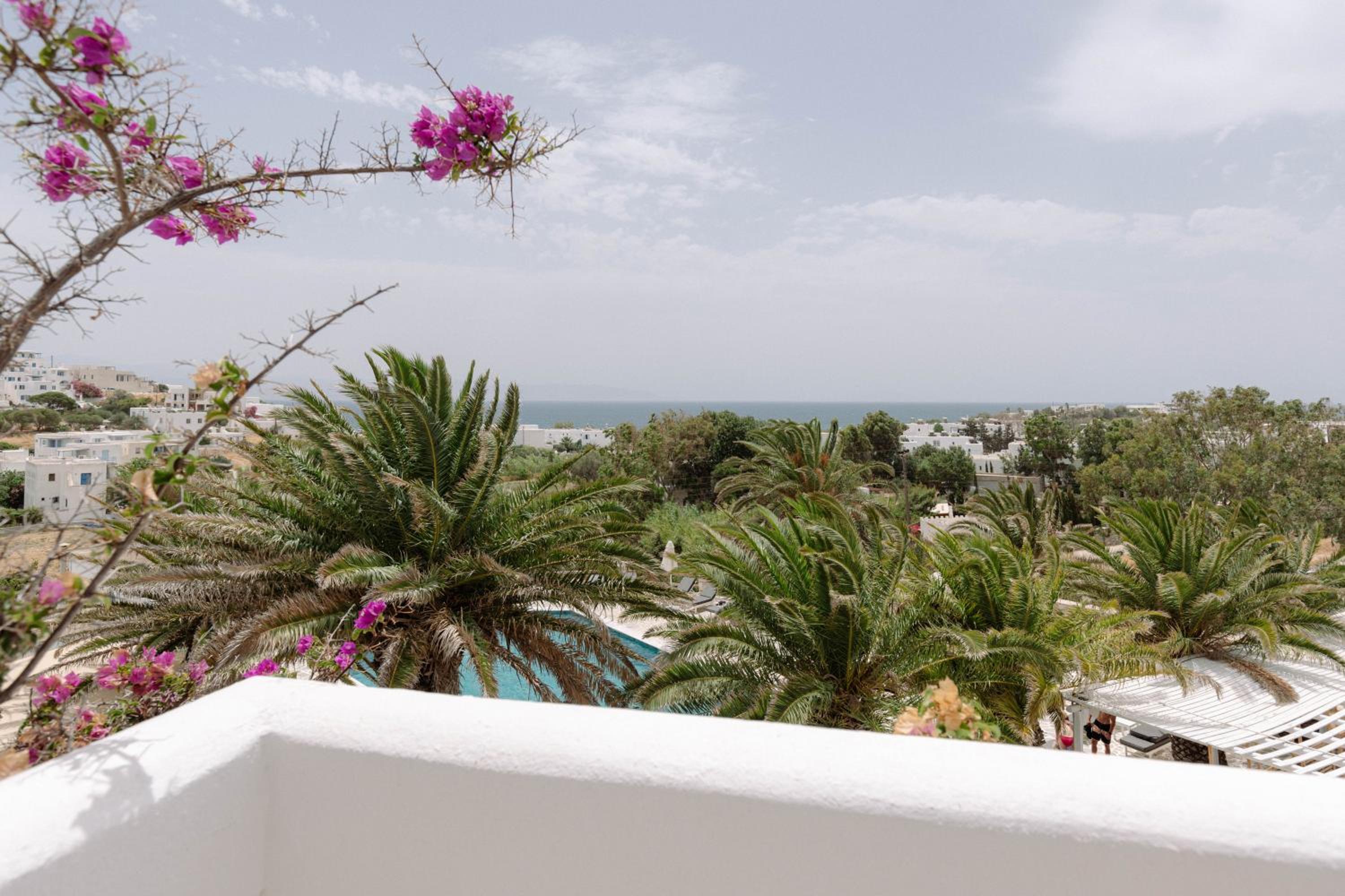 Gevarieerd en verzorgd ontbijt. Prachtig zicht op zee en Naxos aan de overkant. Proper, goed onderhouden en super behulpzaam personeel