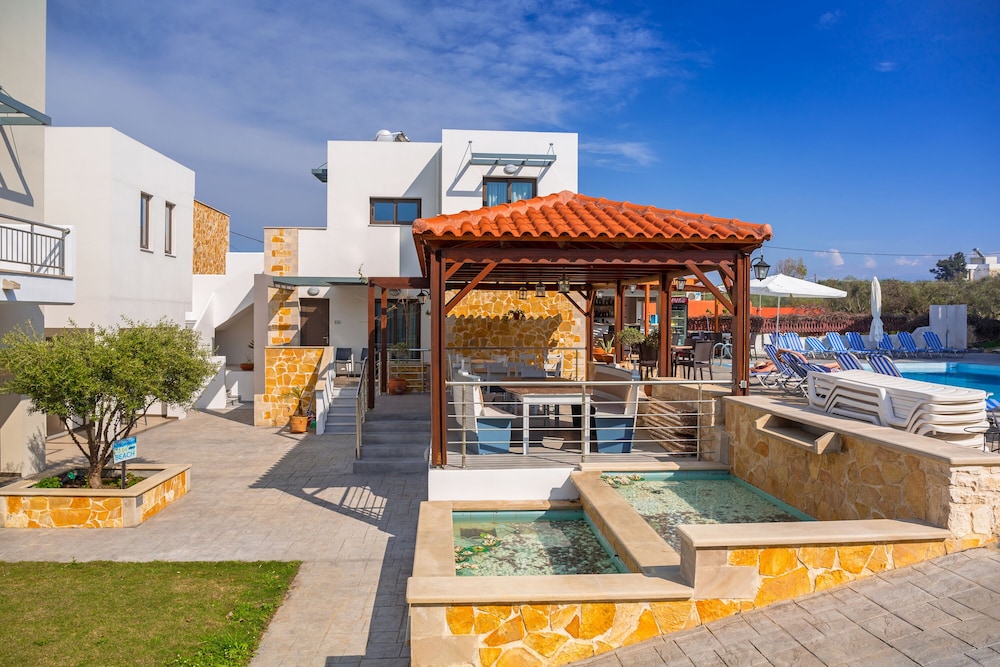 Nice, modern and friendly hotel. God food and a nice pool. Private beach 200 meters from the hotel. Quiet and peaceful, but short distance to Platanias sentrum.