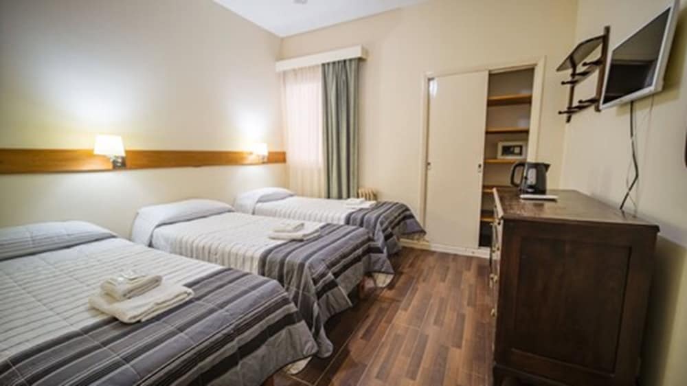We stayed in room 105 - which has no view of anything!. Room was very small, bed comfortable and shower good. Has a safety deposit box at no extra cost. All clean and cleaned every day. Breakfast very basic cereals, medialunas and cafe ´común´.