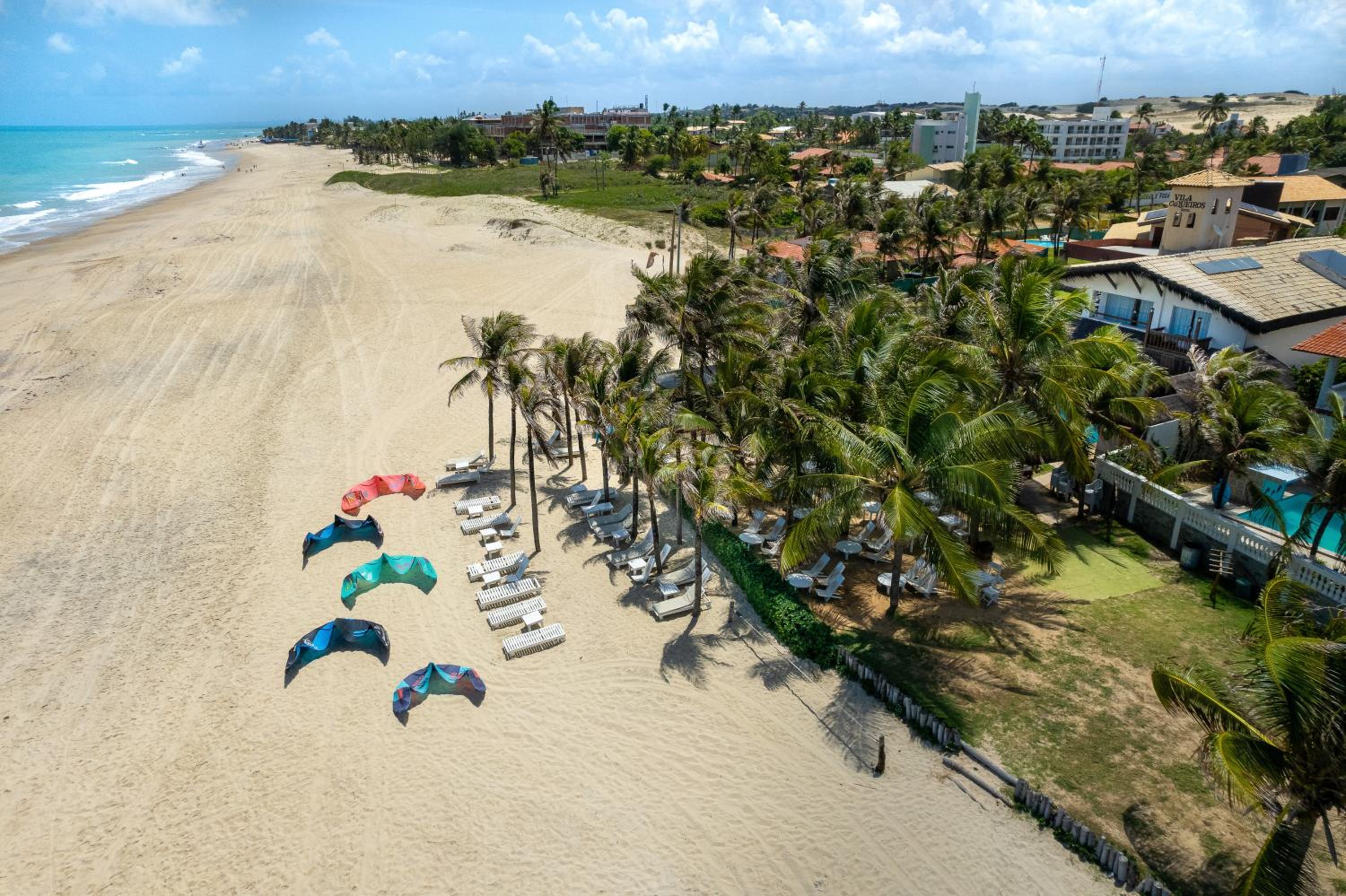 Vila Coqueiros offers a stunning panoramic pool where guests can relax and enjoy the beautiful beach views. For adventure seekers, the hotel provides kite surfing lessons right on Cumbuco Beach, perfect for those looking to try something new or improve their skills.