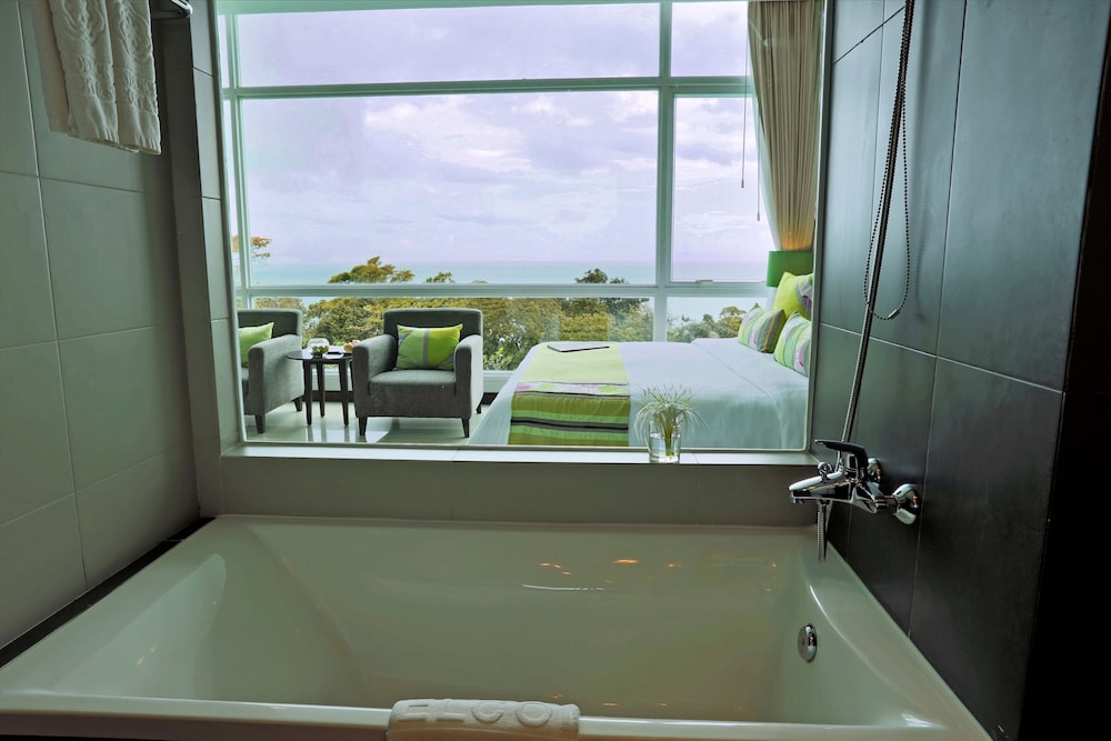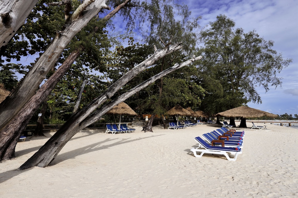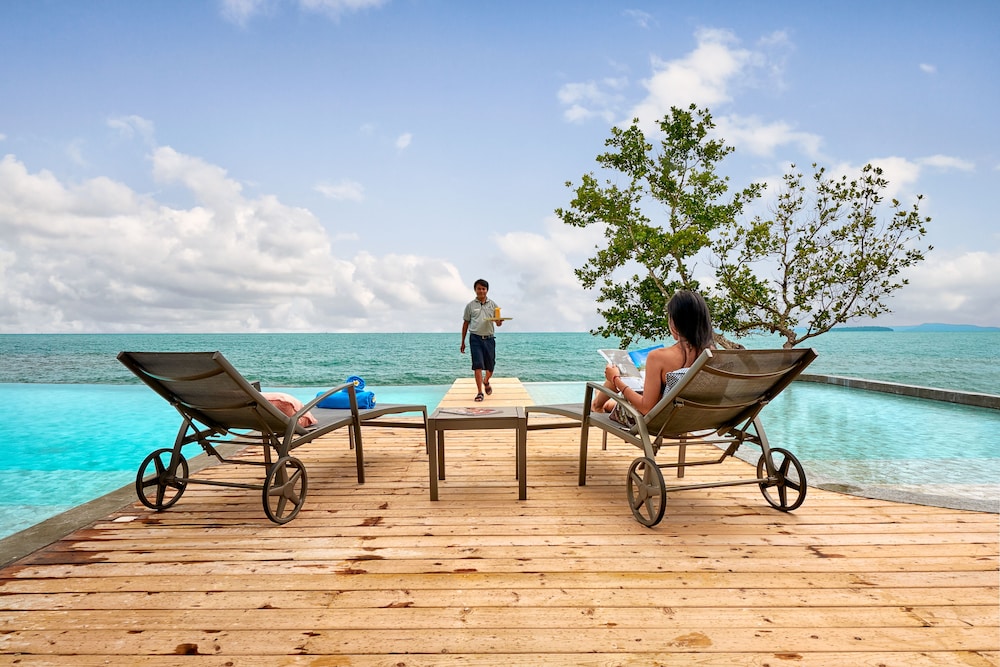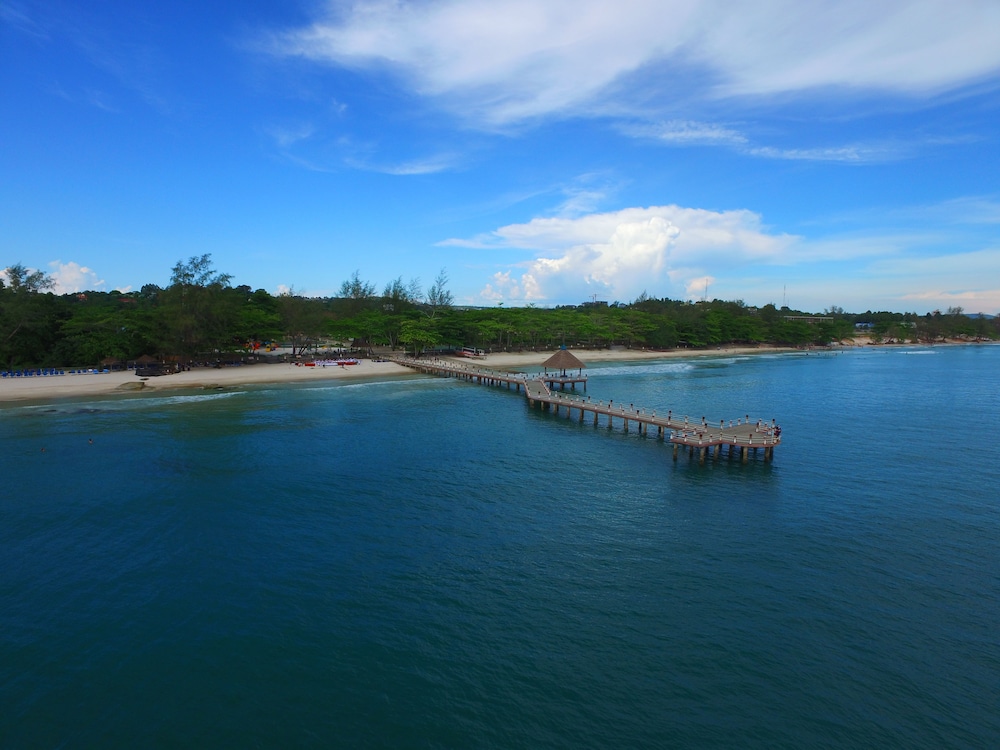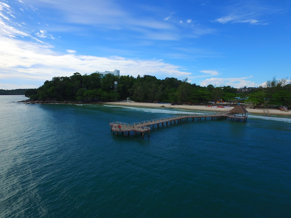 This hotel is like an oasis in the desert. We were disappointed to find that our room allocation was an eco lodge room. Far too small for my 6ft tall partner. We also didn't like how far we were from the pool or the beach (golf caddy being the only way). So we asked to go back to reception to discuss the situation. We were taken care of by one of the hotel assistant managers and he made sure we were allocated to a much nicer room. He was even concerned that our sea view wasn't quite perfect as it was slightly obscured by trees. He had nothing to worry about. The view was great and the room was comfortable . The best bit was the lovely pool. I was able to fully let go here and enjoy the peace. Note though that drinks are more expensive poolside than inside. This hotel is popular with Chinese tourists so breakfast choices felt quite Chinese, so added another twist to our holiday. I wouldn't want to stay in sihanoukville unless I had to. It's not exactly nice. But it's an experience. Best to head over to Koh Rong Samloem as soon as you can.