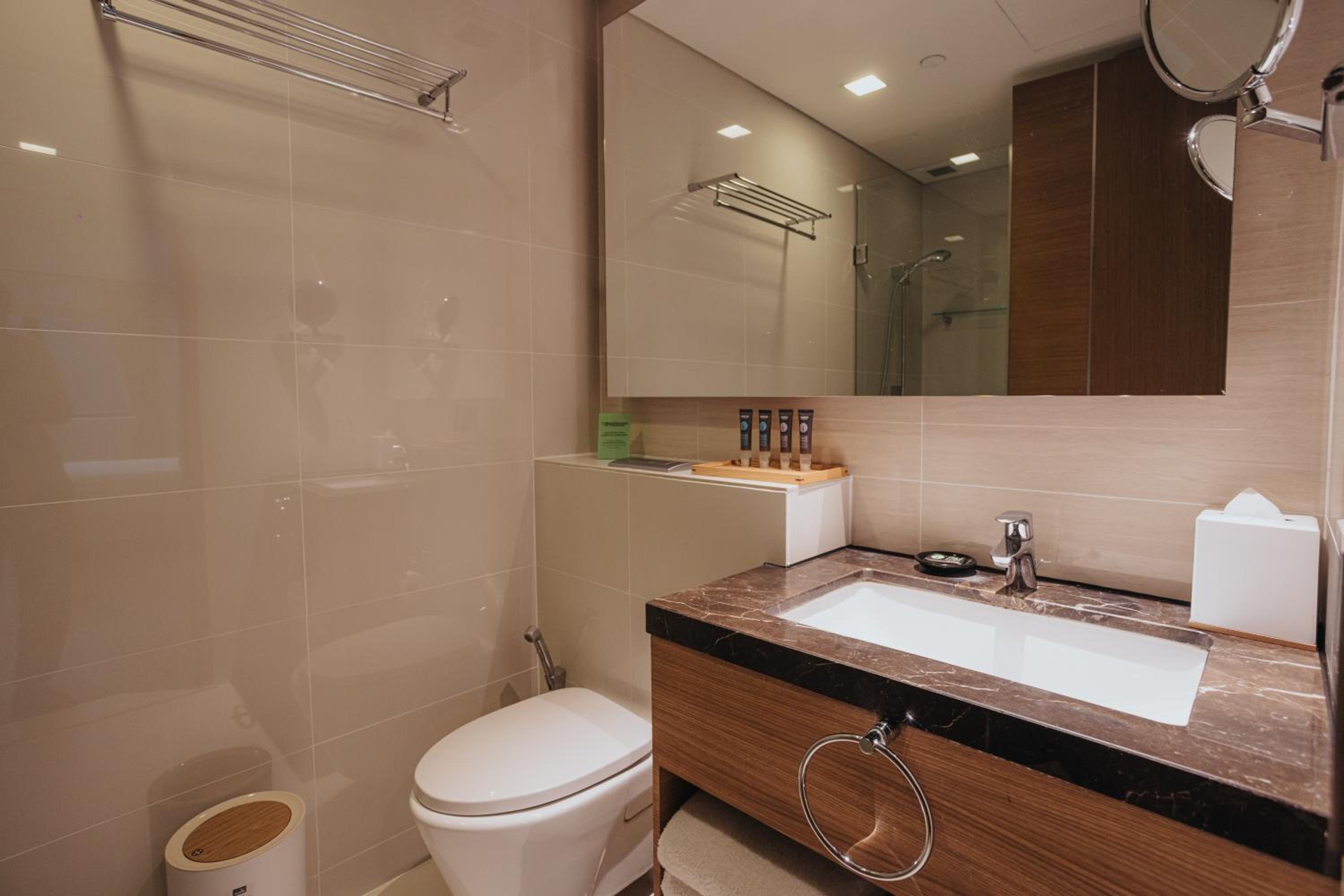 Room had what I needed plus washing machine and kitchen, nice views, netflix, youtube, sports channels. pool is clean next to breakfast area. location very comvenient. halal food. hard to find better option elseehere which fits all that.