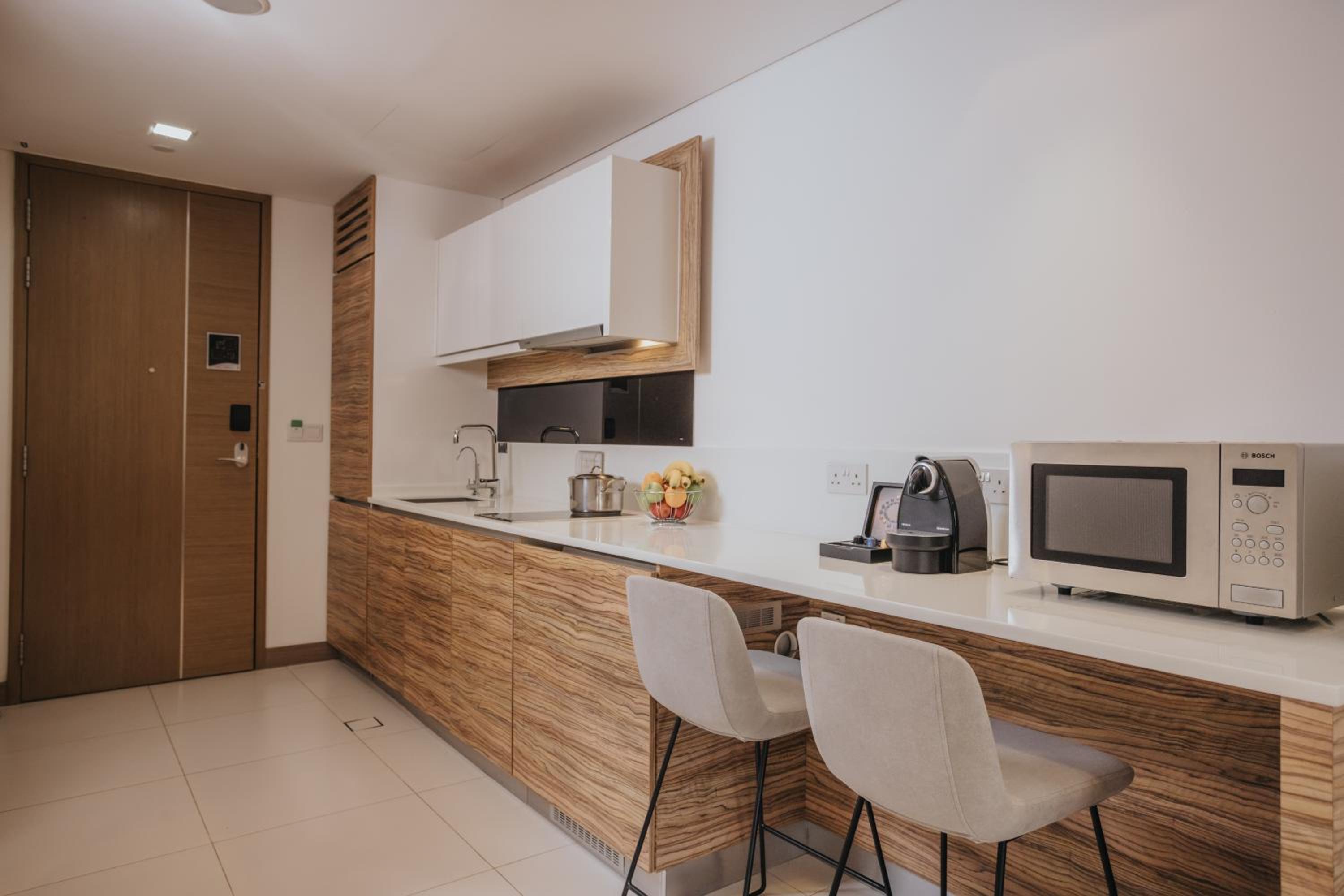 Great location, friendly and obliging housekeeping staff. Sunil and Mas, in particular, was particularly helpful and kind. Apartment was fine. I wanted more space than just a one room hotel room, and the apartment suits me just fine. Wonderful to have a breakfast area that serves free tea, coffee and cuppuccino 24 hours a day!!!