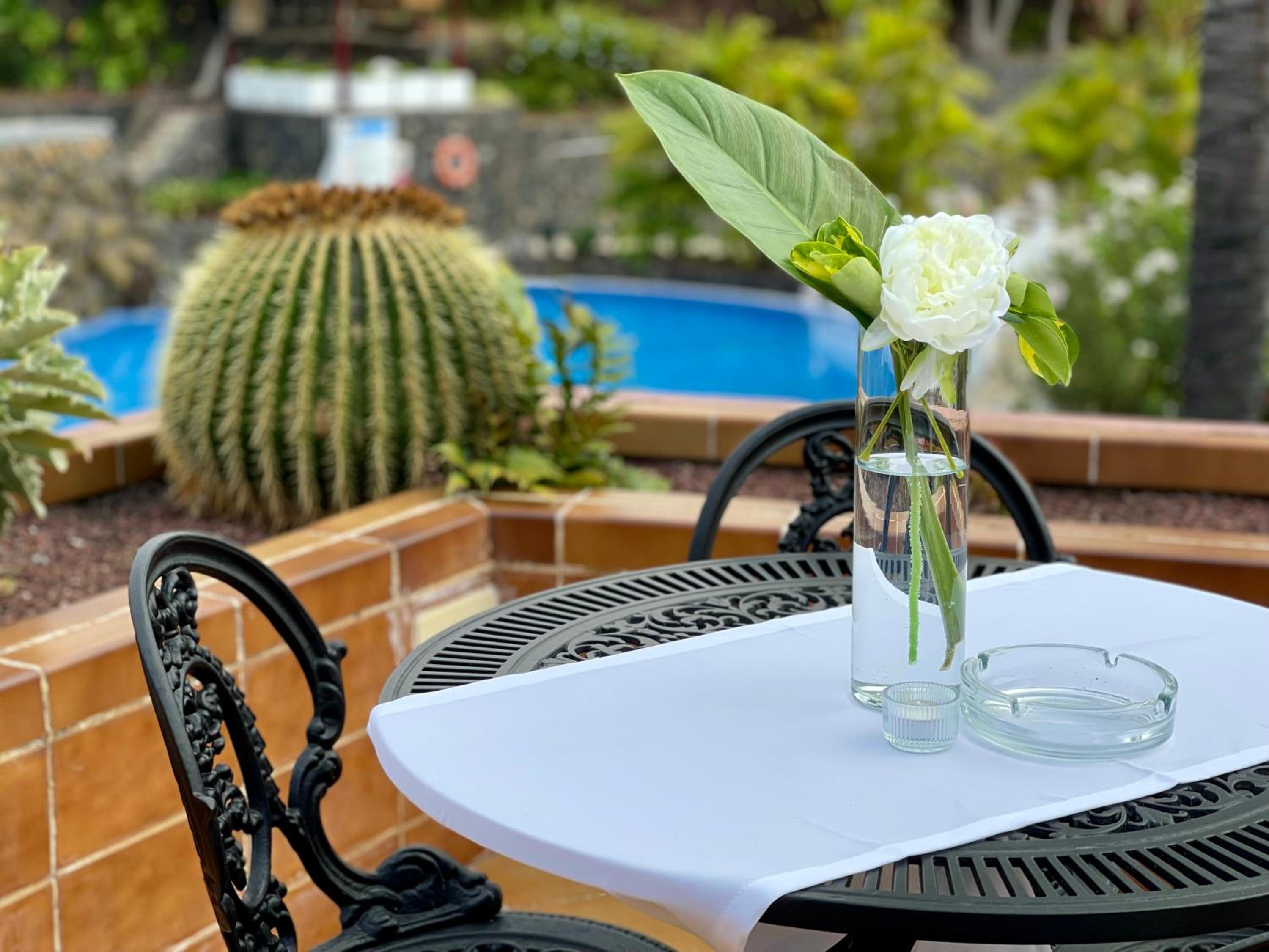 Mooi hotel met fraaie tuin met zwembad en veel ligbedden. Ontspannen sfeer, vriendelijk personeel, ontbijt en buffet goed. We hadden een ruime schone kamer met heerlijk bed en een fijn balkon met uitzicht op zee, goed zicht omdat hotel wat hoger ligt. Parkeren in de directe omgeving van het hotel. Kleine supermarkt in de buurt.
